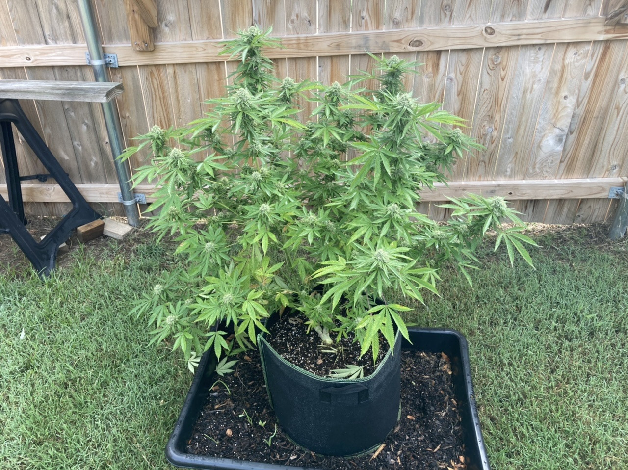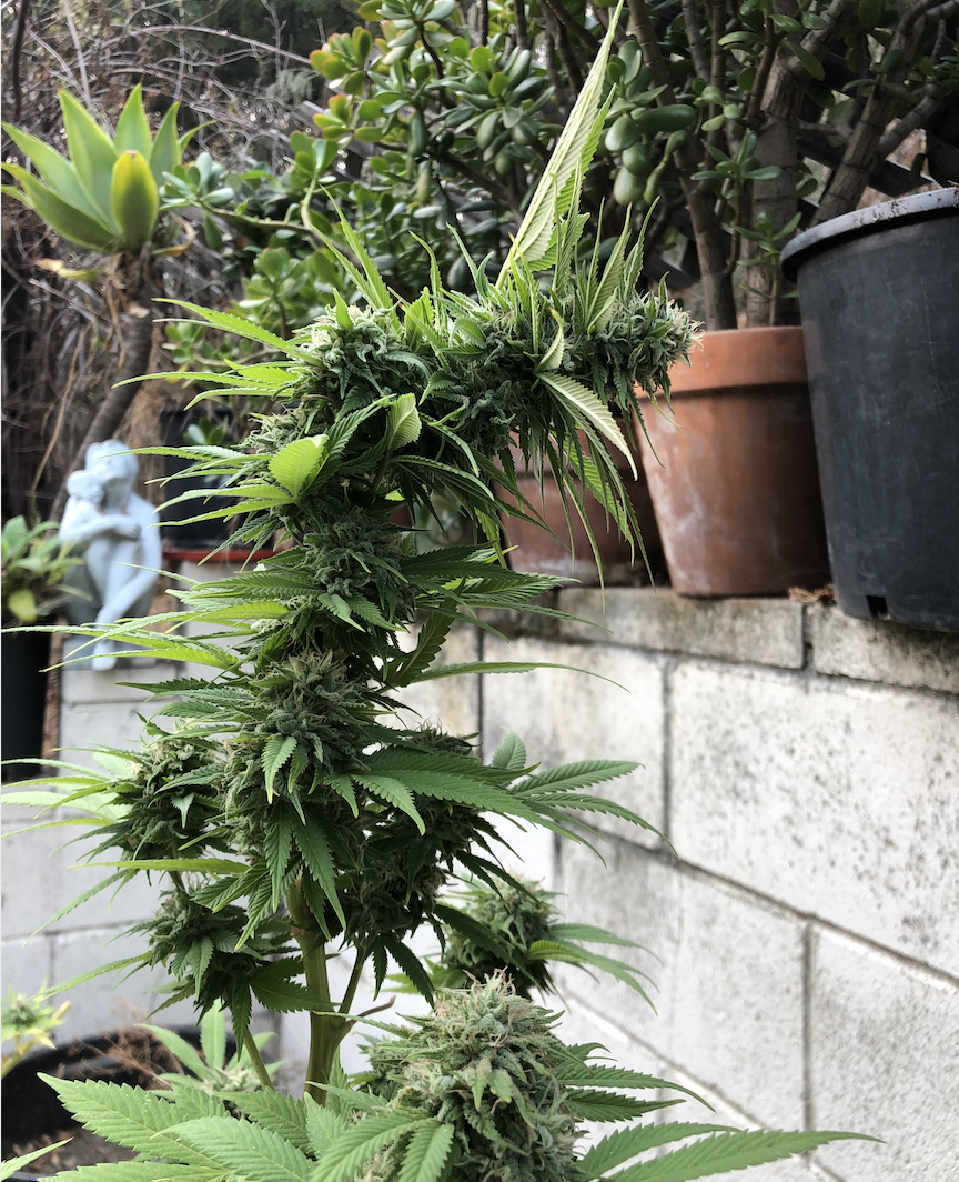 The auto is on the front porch out of the rain but getting her flowers chilled for a few days before pluck.