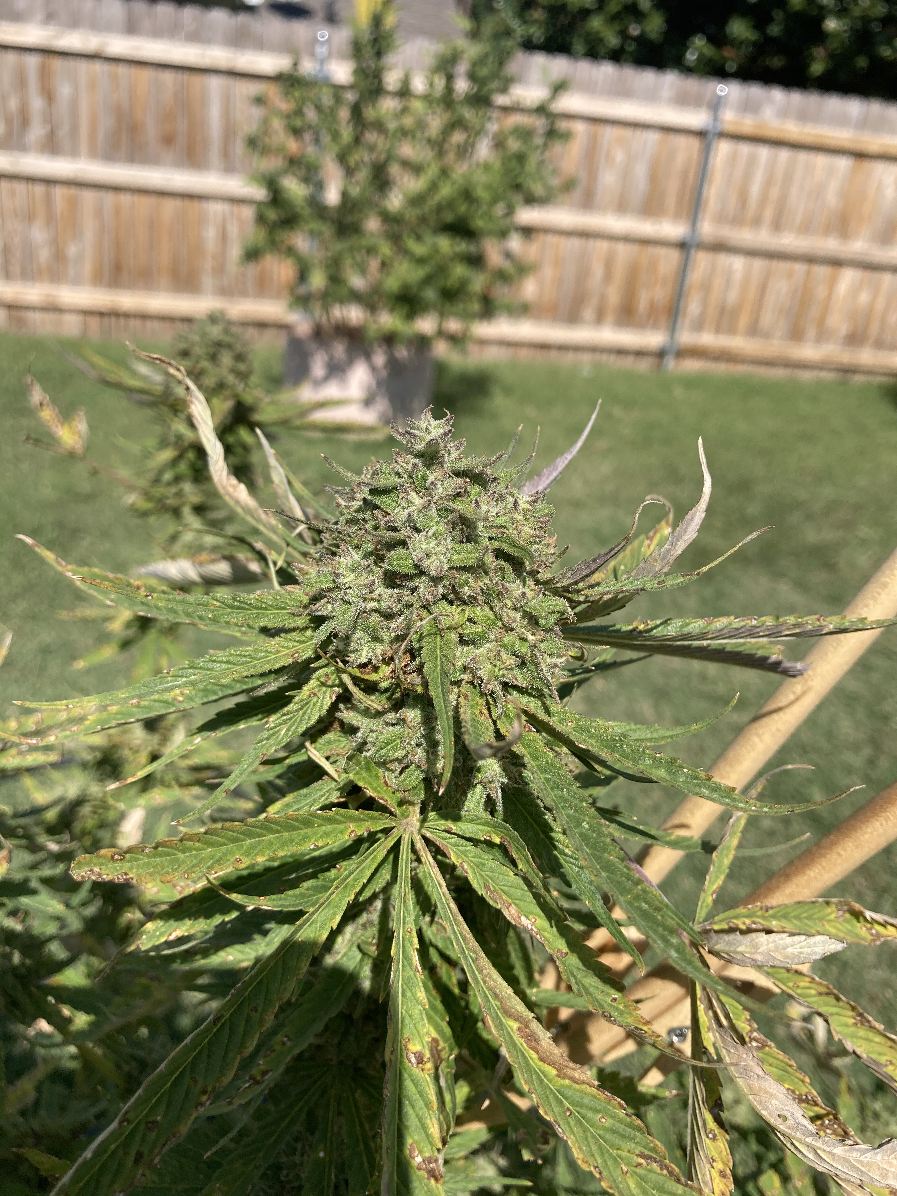 My girls still hanging in there. It got cold last night. I had to break out a damn hoody to go to work this morning at 5. Really beginning to yellow up also. I had one branch of the blue dream get broke off by dogs rasslin.. I dried it and had a smoke this afternoon and I’m high as shit right now.4x4 flower tent