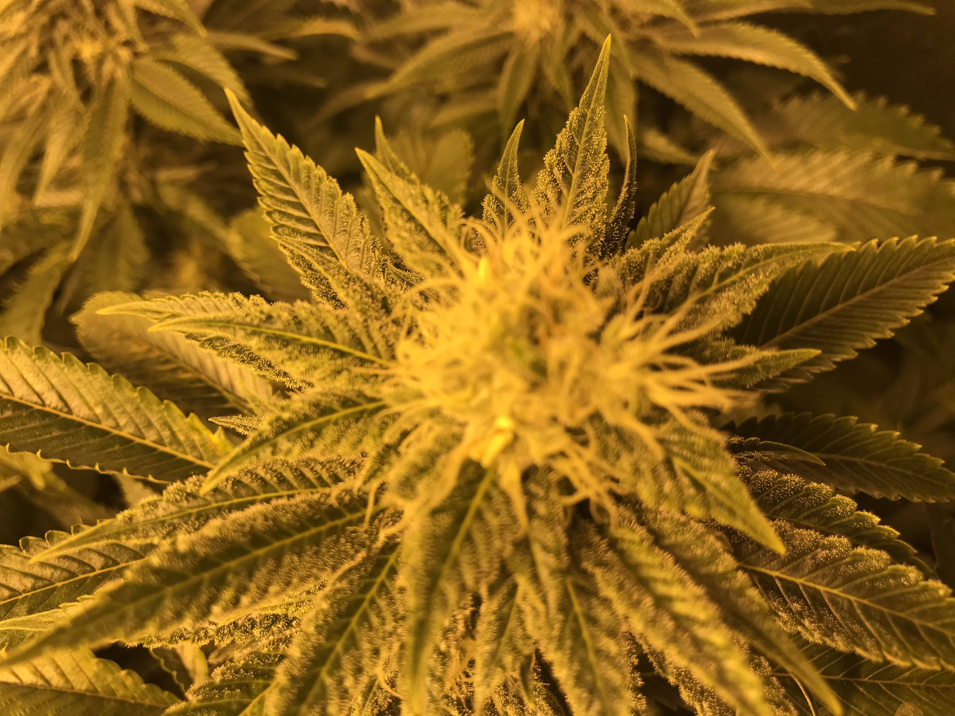 ID:	396438 So I’m at week 6. Harvest is 8-9 weeks. All my plants are grape kush from same mother. All are growing bananas in the buds now. Should I cut my losses and harvest now? I am new to growing (first indoor grow) and had nute lockout due to super low pH. Flushed plants last week until runoff was around 6.5. Now I am noticing these bananas. I’ve been plucking them with tweezers as I noticed the plant that was doing the best even had some tiny seeds. The mother plant was a clone taken late flower just before harvest. Does that have any affect on whether her clones hermie or not? I set my 600w DE hps to 60k-70k lux at a height of about 12-15” above canopy. I have an exhaust fan set on thermostat, so fresh air is constantly drawn through. Used fox farm ocean forest and grow big for veg. In flower I was giving big bloom 1/2 dose and 2 weeks ago started using tiger bloom and sweet and dandy as they were recommended to me. I ended up with the nute lockout because I didn’t pH the water after the nutes were added. Amateur mistake that will never happen again. Another thing to note. At night, temps dropped to about 65 with some drops as low as 60. Operating temp in mid to high 70’s. With all the time and money invested in this, I want to make sure it never happens again. If that means buying non feminized seeds online and ditching the grape kush, I will. I really like the GK though.