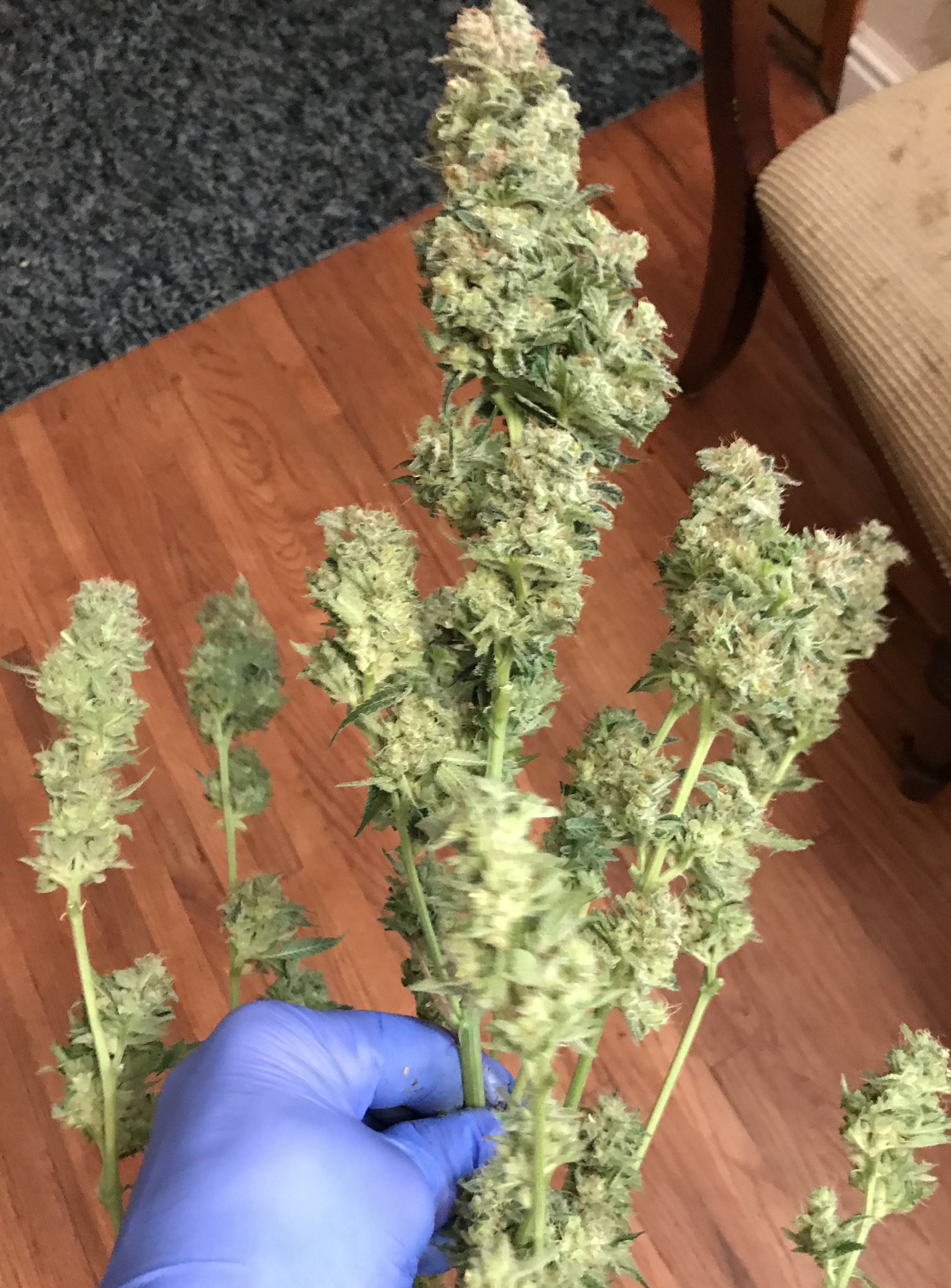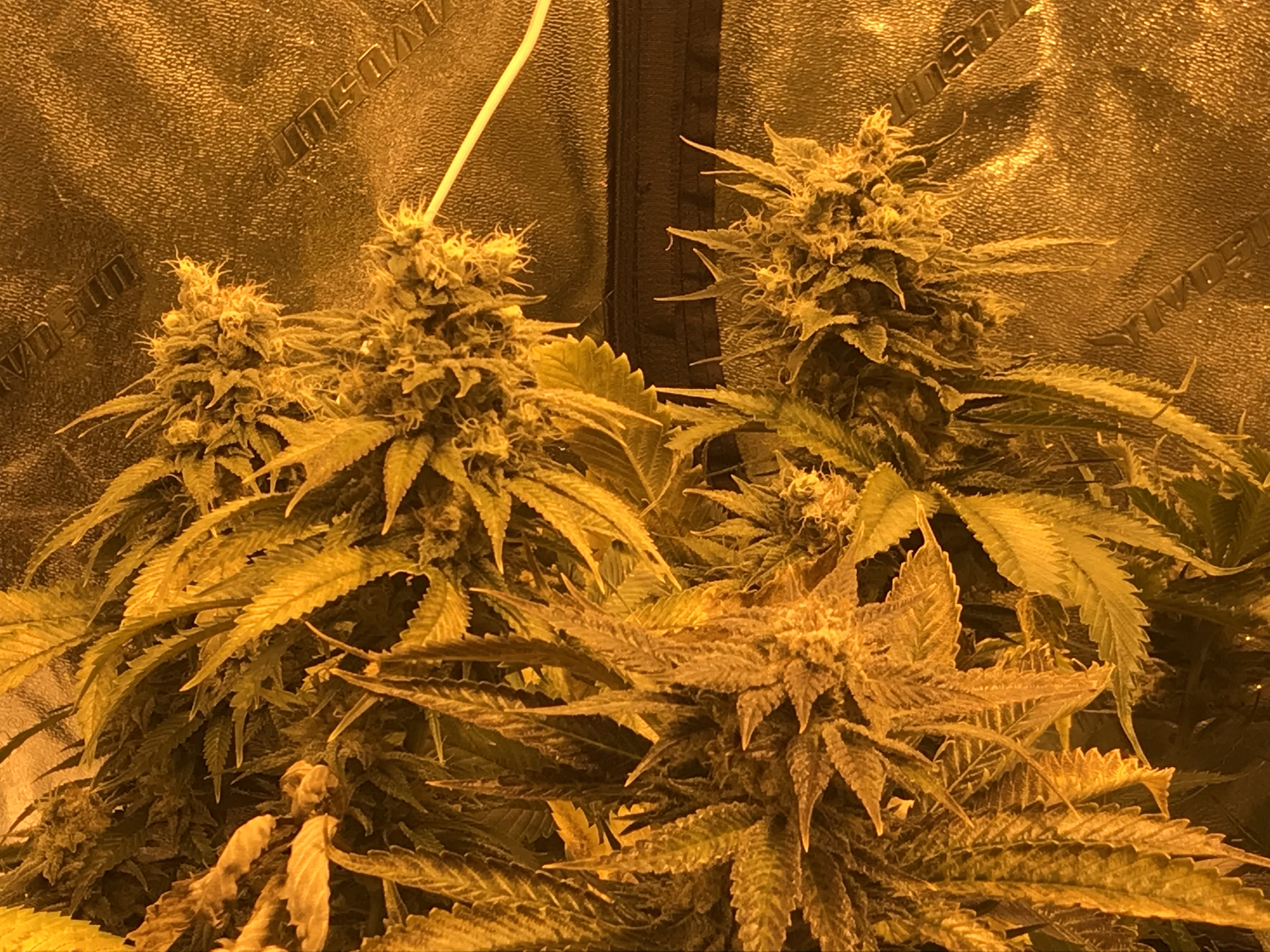 In case anyone is interested, I just finished my dry. I ended up with about 17.5 bagels. Weird stuff was happening so I pulled the plug at 10 weeks. Strain is an 8-9 week flower. Around week 7 it looked like foxtails were growing. I had buds with mostly brown hairs and new growth coming out of them. Found only 2 mature seeds so far, but I cut one in half while trimming. I’ve learned a lot from this grow and I still ended up with good smoke. All the clones I have are now outdoors except for 4, which just started flowering with a cheap LED experiment. I’m starting a new strain, grand daddy purp, for my indoor. Thanks for your feedback everyone!