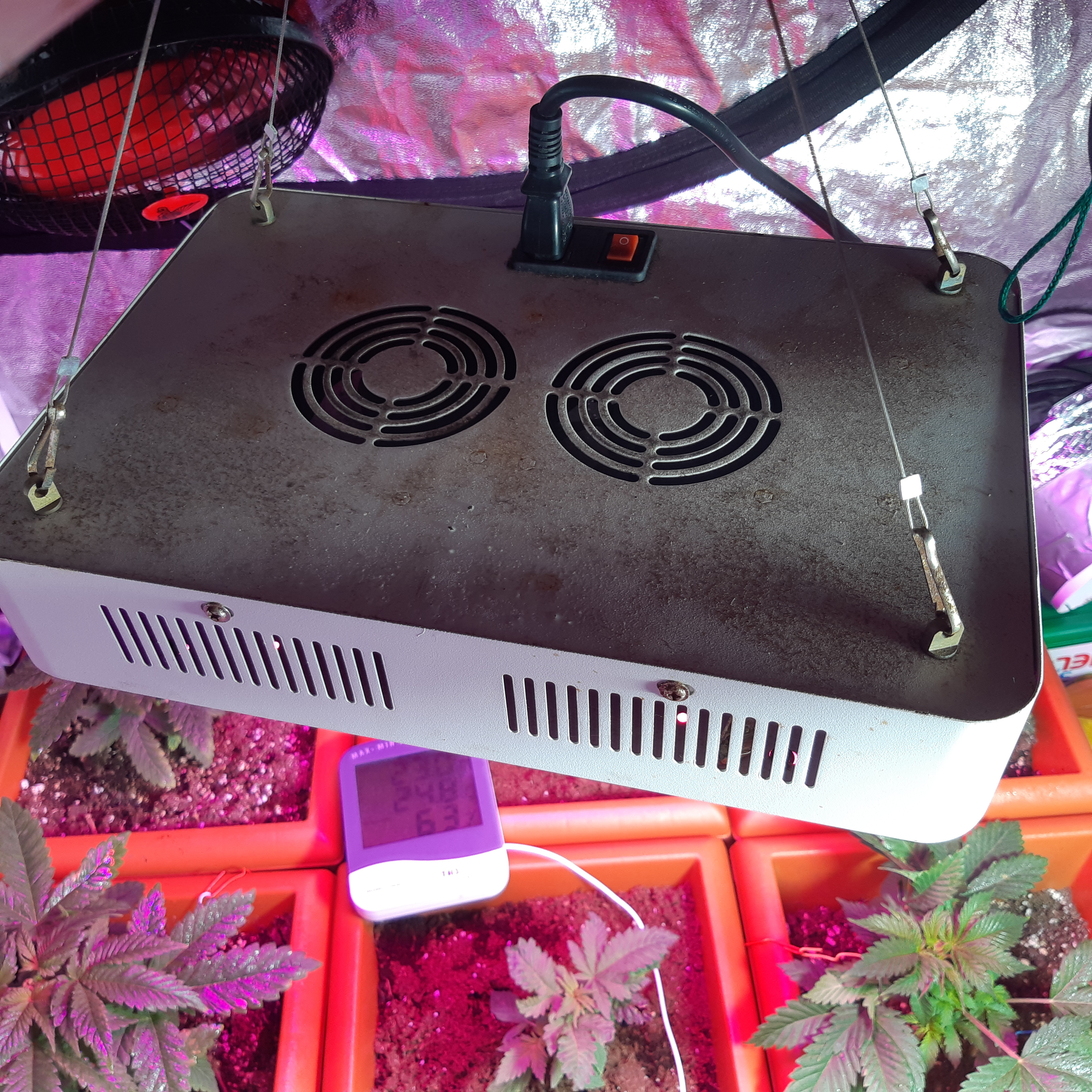 So I was using a 600w hps I bought but the plants were just seedlings and it was getting to hot and to expensive to use the hps. So i got a lend of a 1000w led from a friend,I'm pretty sure it's a cheap chinese lamp but it's got mostly red with blue and a few white bulbs in it, I was afraid it will not do the trick enough as I have not enough experience with led, so i added a 100w white led panel to the tent for extra light, but the white light is significantly brighter than the purple led so the glow in the tent sooms mostly white. Which gets to my question, am I disrupting the purple light with the white one? Or is that even possible? Are the plants going to benefit from both lights or am I just reducing the 1000w lumens in some way? Might be a stupid question but its be wrecking my head