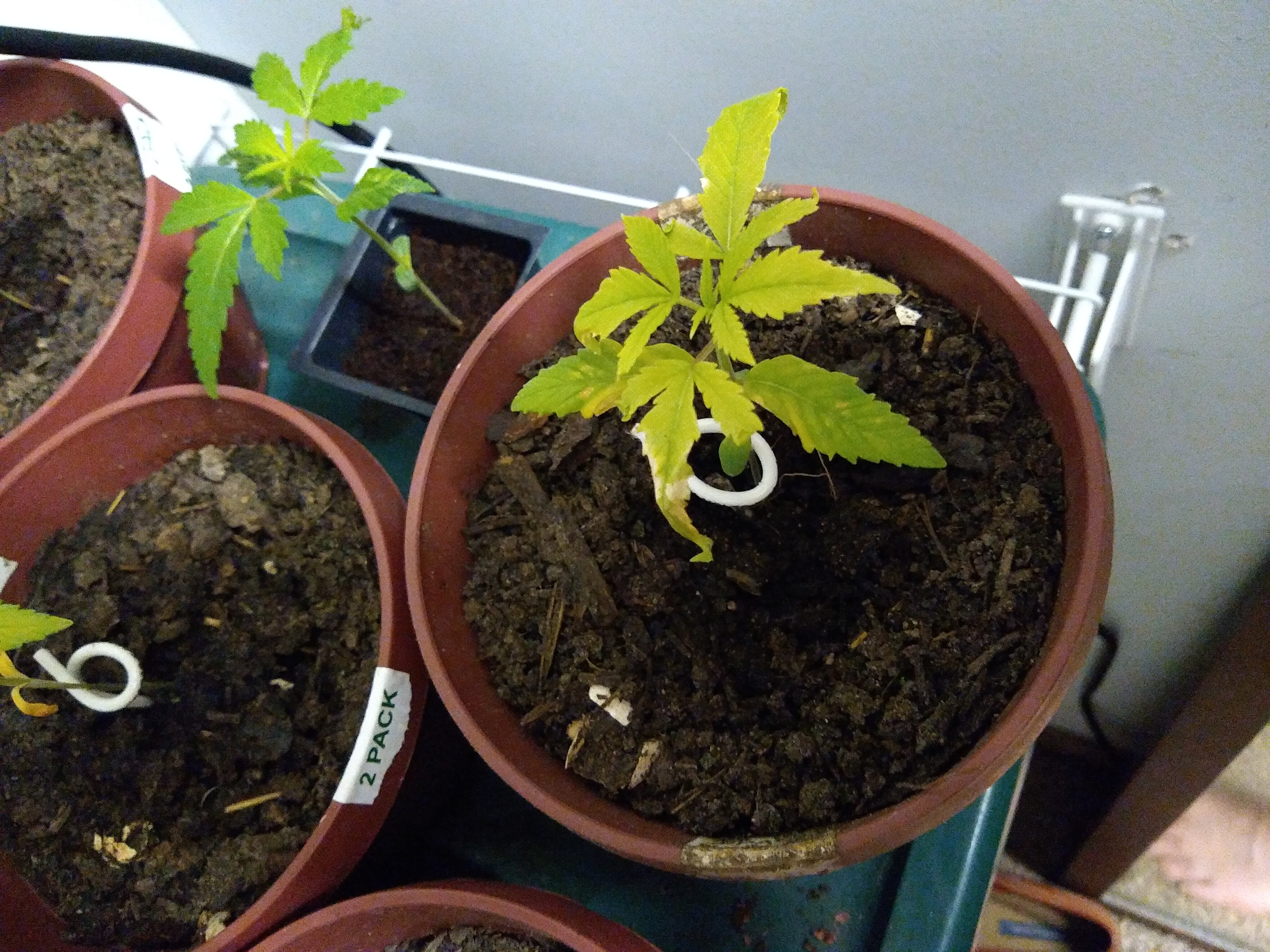 Jrockmfka Hey mofo, looks like the soil might be too thick and roots are in trouble from over-watering and not enough oxygen. You can drown a plant's roots that way.