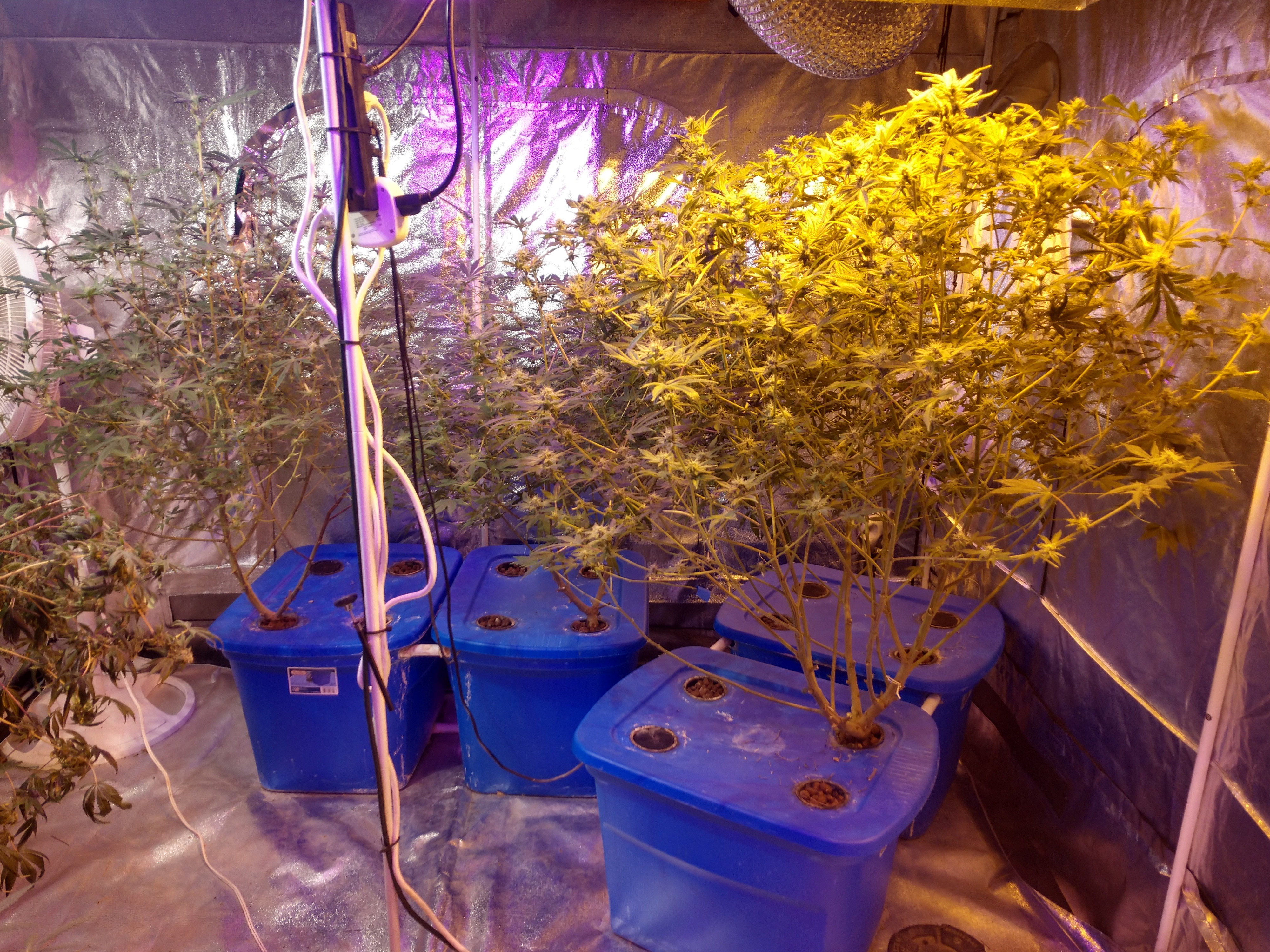 4x4 tent, Platinum LED P4-XML2, four Patio Pickers. Vegging Liberty Haze, Acapulco Gold, Lavender and Sweet Amnesia Haze.