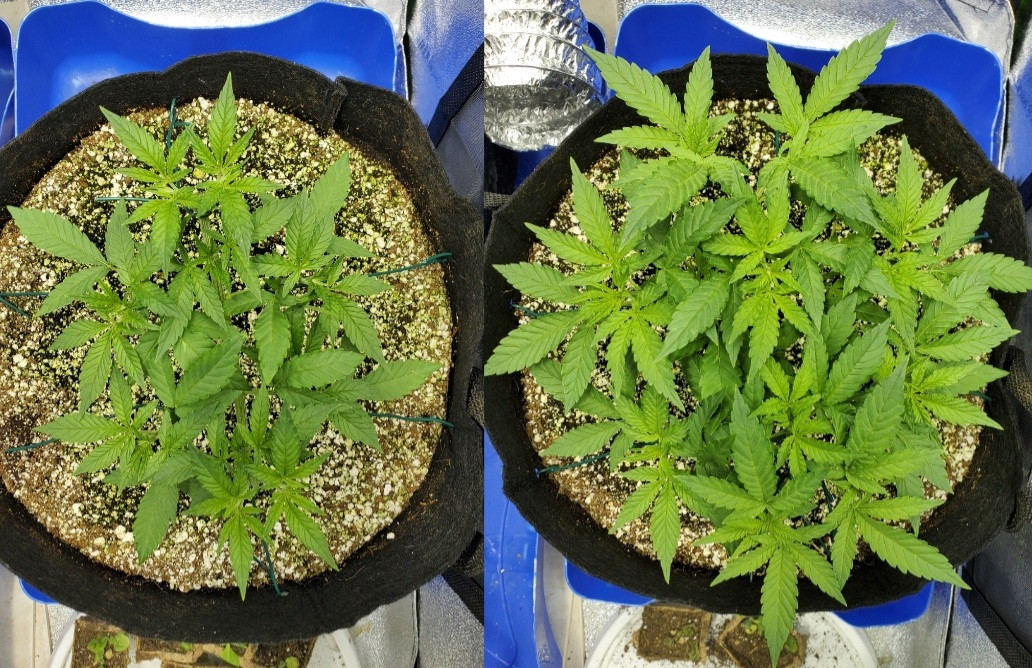 Progress photo, did some LST last night, then took a pic this morning 12 hrs later showing the difference. These plants are remarkable.