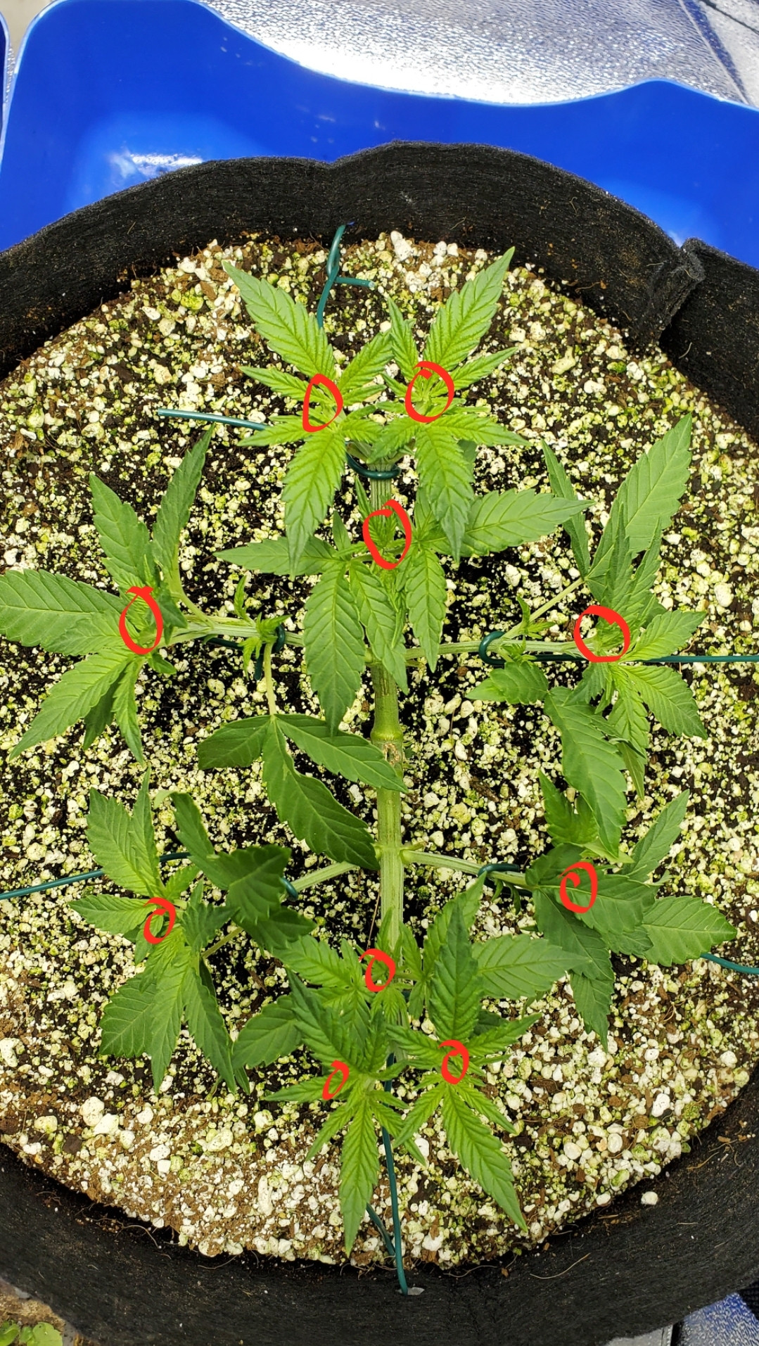 So, last night after work I took a look at the plants and felt like it was time for some LST, the first node on each side of the manifold was getting relatively long.