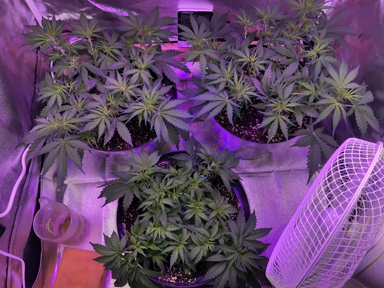 Did a little bit more defoliating today to help the extra light get to work. Tent is starting to fill nicely at the back, going to let them stretch a bit now. 😁 Click image for larger version