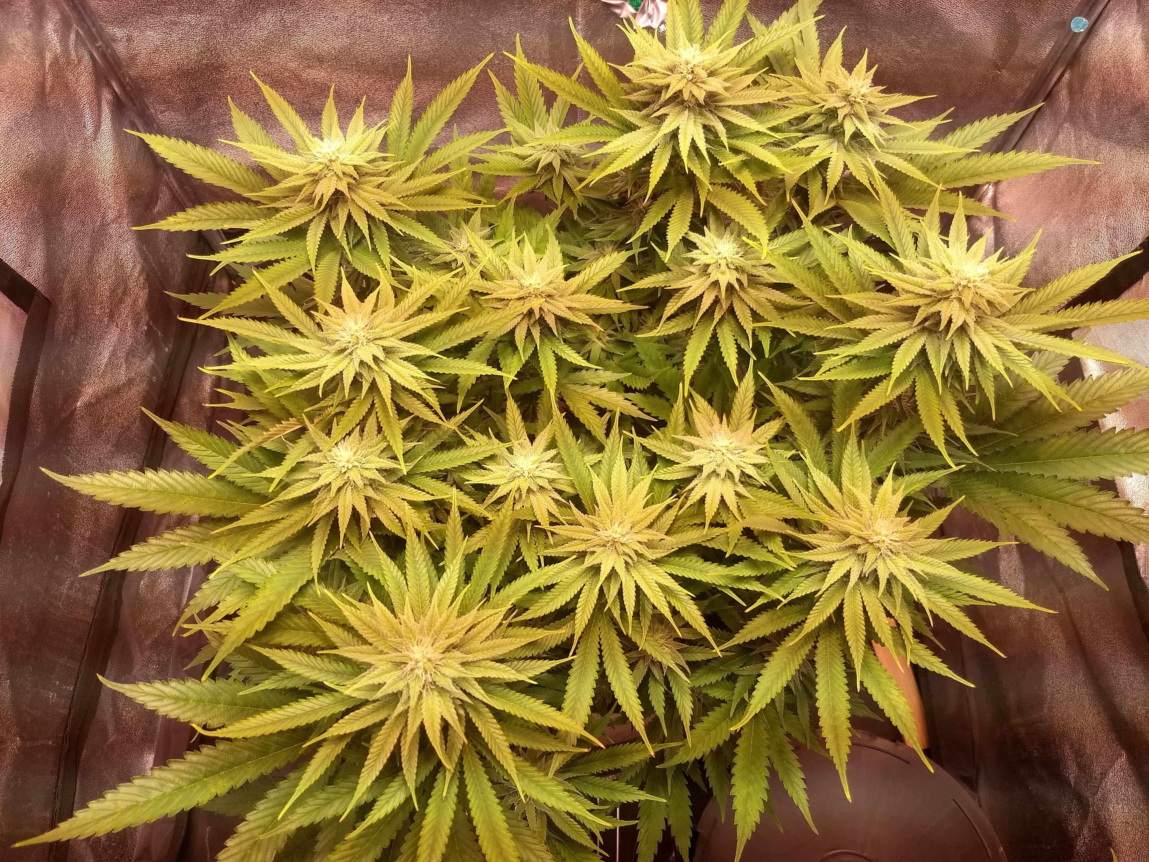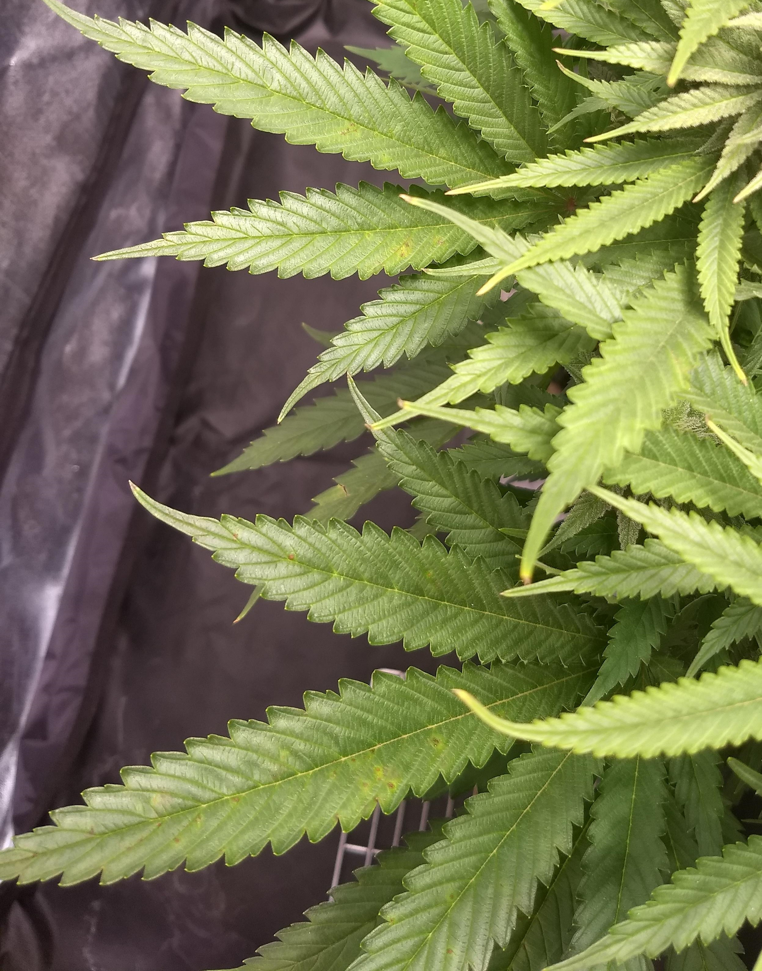 Day 32 of flower, in organic soil, 5 gallon fabric pot, 315w CMH 18-19" away from canopy, 3x3 tent, Day temps 75-80/ 40% RH, Night temps 65-68/ 45-50% RH. Have been feeding BioCanna line every other watering (Bioflores, BioRhizotonic, Bioboost) according to their grow guide - although, I have been using Ph up because it ph's at ~4.7 when I mix their products.