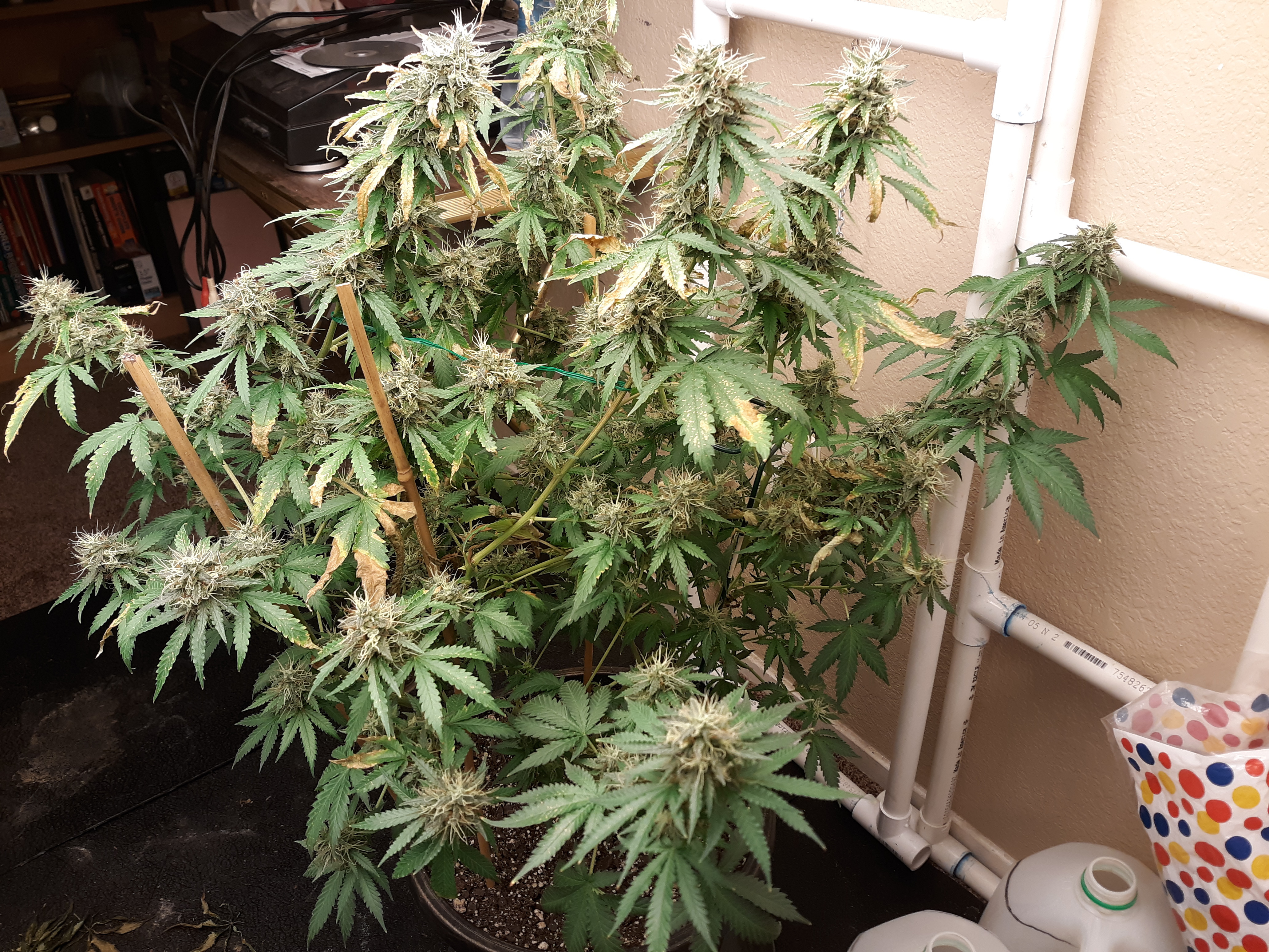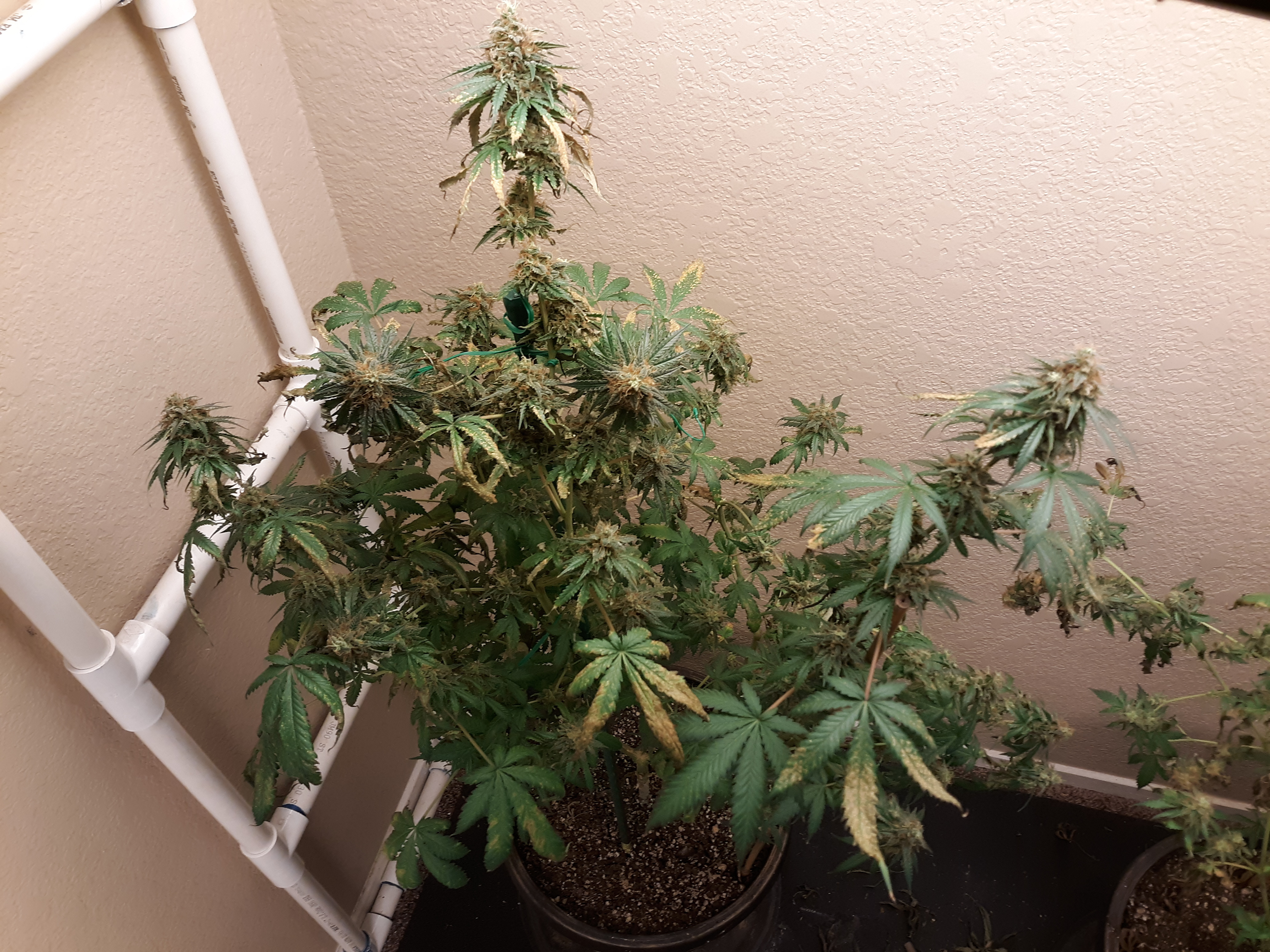 ***UPDATE*** as of 08/11/2020 (this past Tuesday) these ladies are at Week 18/ Week 9 of flower. Has anybody grown a self defoliator??? I cut this one down this morning and not much clean-up to do to it.These other three I am letting go til this coming Tuesday 9they will be 10 weeks into flower and I usually cut down by the end of week 10. 1 is skunky smelling, one is fruity smelling and my half breed is???