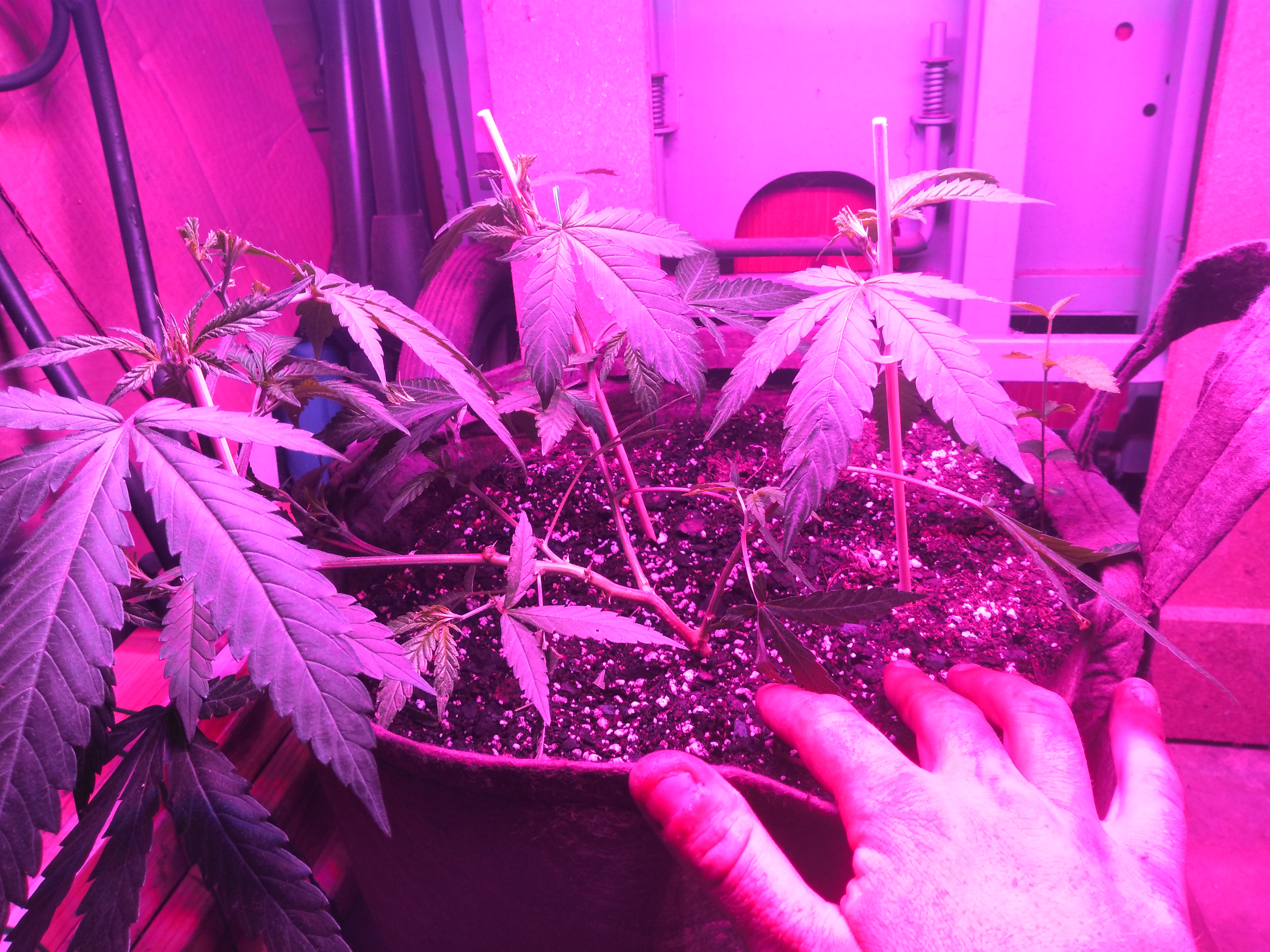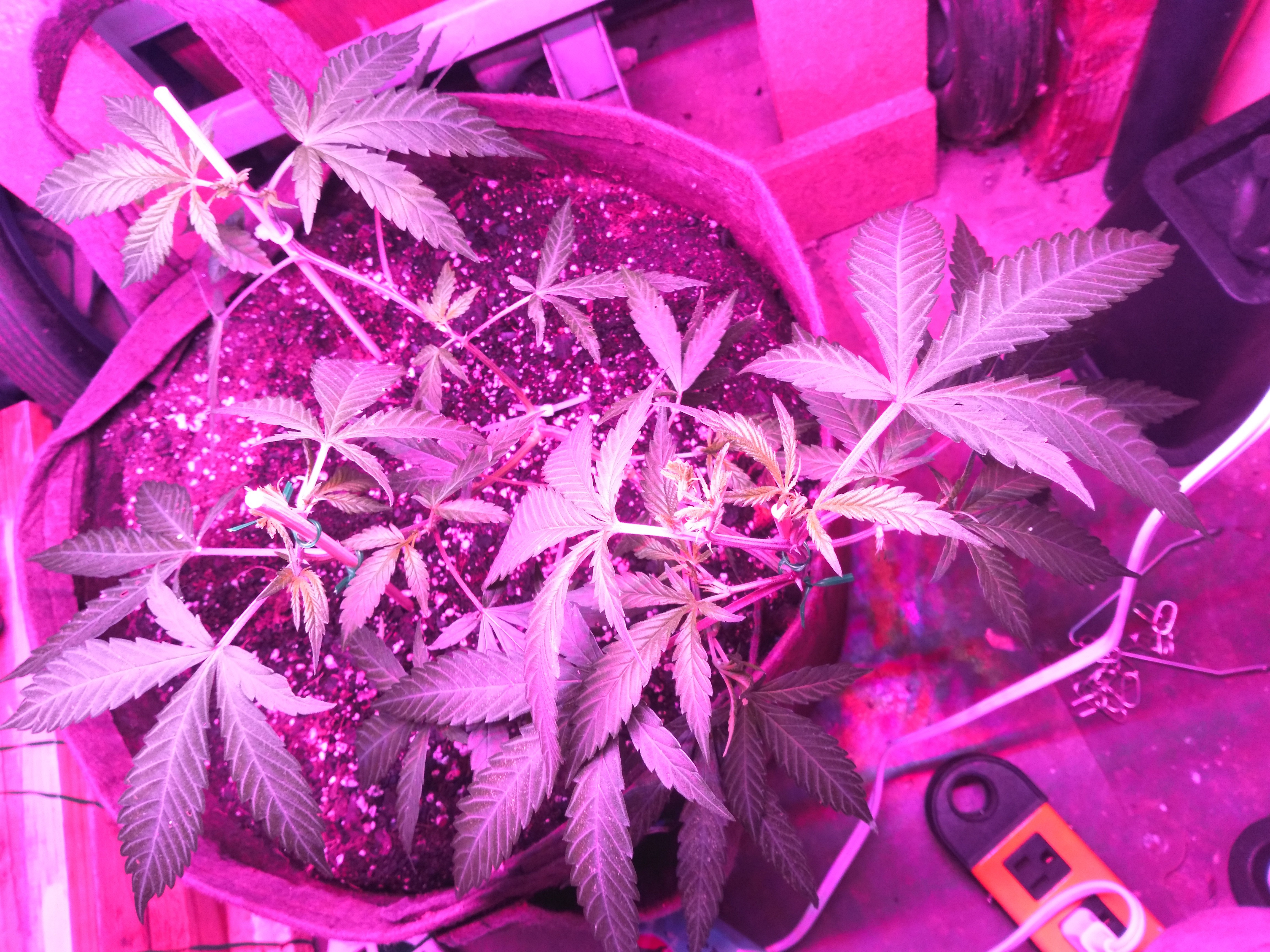 First plant training ever I would ha have topped her and done a little LST but like with my only other vegging plant I knew it wouldn't work great cause she has alternating nodes pretty bad so instead of topping I tied down the main stem and 2 aux branches tied them all to around the same level and I did some defol and F.I.M on the main stem top growth to the left in the side And the same to the top growth on both "aux" branches so depending on what grows from the fim I should have atleast 3 main colas maybe please give me your feed back if it looks like I did decent like I said it was my first time .