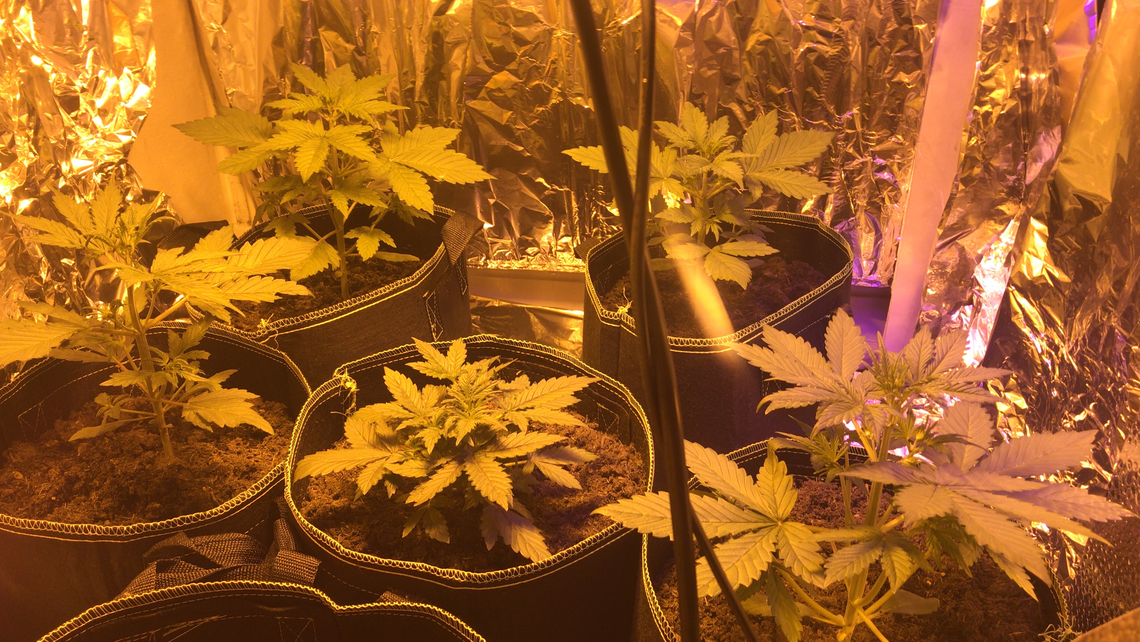 Hello everyone! I have got my first grow on the go 4 midnight express and one purple kush I think from a friend. Make shift tent I made haha with tin foil etc. Light is a hps with digital ballast that has been on 400w but up to 600 now and plant aaround 24inch from light. I have 230v fan with carbon filter but not directly at plantsz. I did not want to use nutes as I wanted a natural no chemical grow and all that bla bla. started germinating on the 27th April. All autos. The picture are from this morning so the boys have only been awake about an hour. I had one slightly yellow leaf that may have been from being to close to the light about 8days but it doesn’t seem to have spread. I water about .5l a day atm but depends on how heavy my pot is and how dry etc But any thoughts / reccomendations is appreciated me know. Peace.