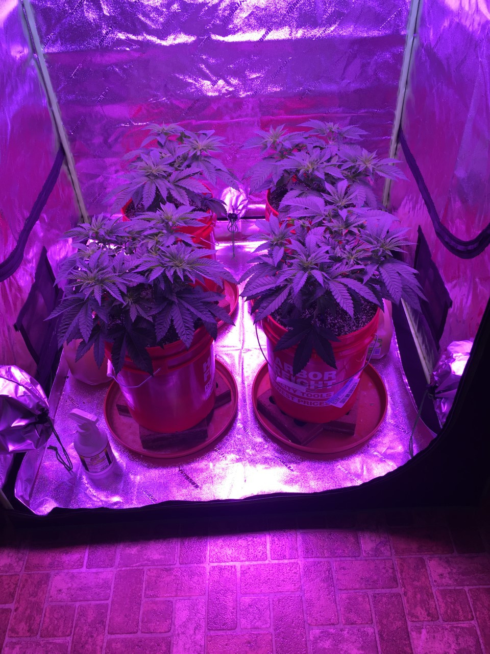 Thank you all for the guidance so far in my first grow (four WW feminized photos). I think so far so good (images attached of tent and one plant outside the tent) at 6 weeks in vegetative stage though feel like I have made a few non fatal mistakes but that is part of learning I suppose. I think I am going to flip to 12/12 lighting in a week or two and my question relates to supplemental lighting for the Viparspectra V1200 during the flowering/bloom stage. I have a 4x4x8 tent, and most everything I have read suggests that the V1200 may be lacking in light power for the flowering stage for my set up and that it does not have enough of the red spectrum in general. I am considering adding eight 23 watt (actual), 2700K CFLs OR four 90 watt (13 watt actual), 3000K LED flood lights in the corners of the tent, keeps my cost to ~$30, have all the wiring and sockets. Has anyone used supplemental CFL lights or LED flood lights during the flowering stage for similar LED lighting that I have. Below is a snippet from an article from Dan from The Green Sunshine Company about using LED flood lights for supplemental lighting and a link to the full article is attached. Thank you in advance for sharing your thoughts and experiences.