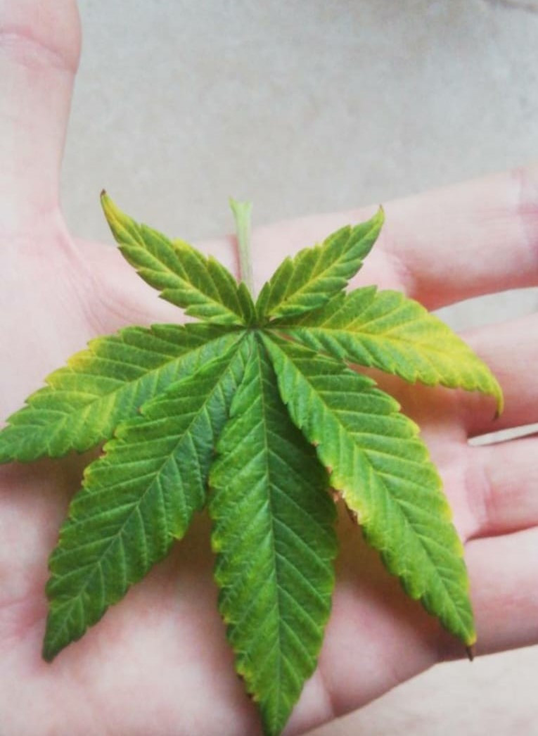 Hello, I beg for some quick help. So the thing is I have 2 bubble gum plants at the time in 12 litre (3 gallon) pots. I am using soil and they are now 4 months old, 5 week of flower. I have been feeding Advanced nutrients BLOOM, and CalMag at the indicated dosage according to the bottles. I am using tap water dechlorinated for 24 hours and pH at 6.5. I water my plants every 4 days or so, depending on how dry the soil is. Mostly, the bottom leaves are turning yellow on the veins annd then dying not so long after. It all starts on the veins, and the some thick sports occur and the leave is gone in 2 days time. Please I need help urgently.