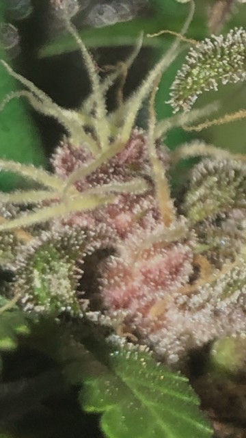 Your trichomes look nice in those shots. No clear, milky, or amber I can tell because the pictures aren't real zoomed in. What I see are a bunch of hairs sticking straight out. No short and curleys. FunkyButtLovin 's two weeks. Maybe more. What does your seed company's web site have to say about flowering time?C'mon, mule!