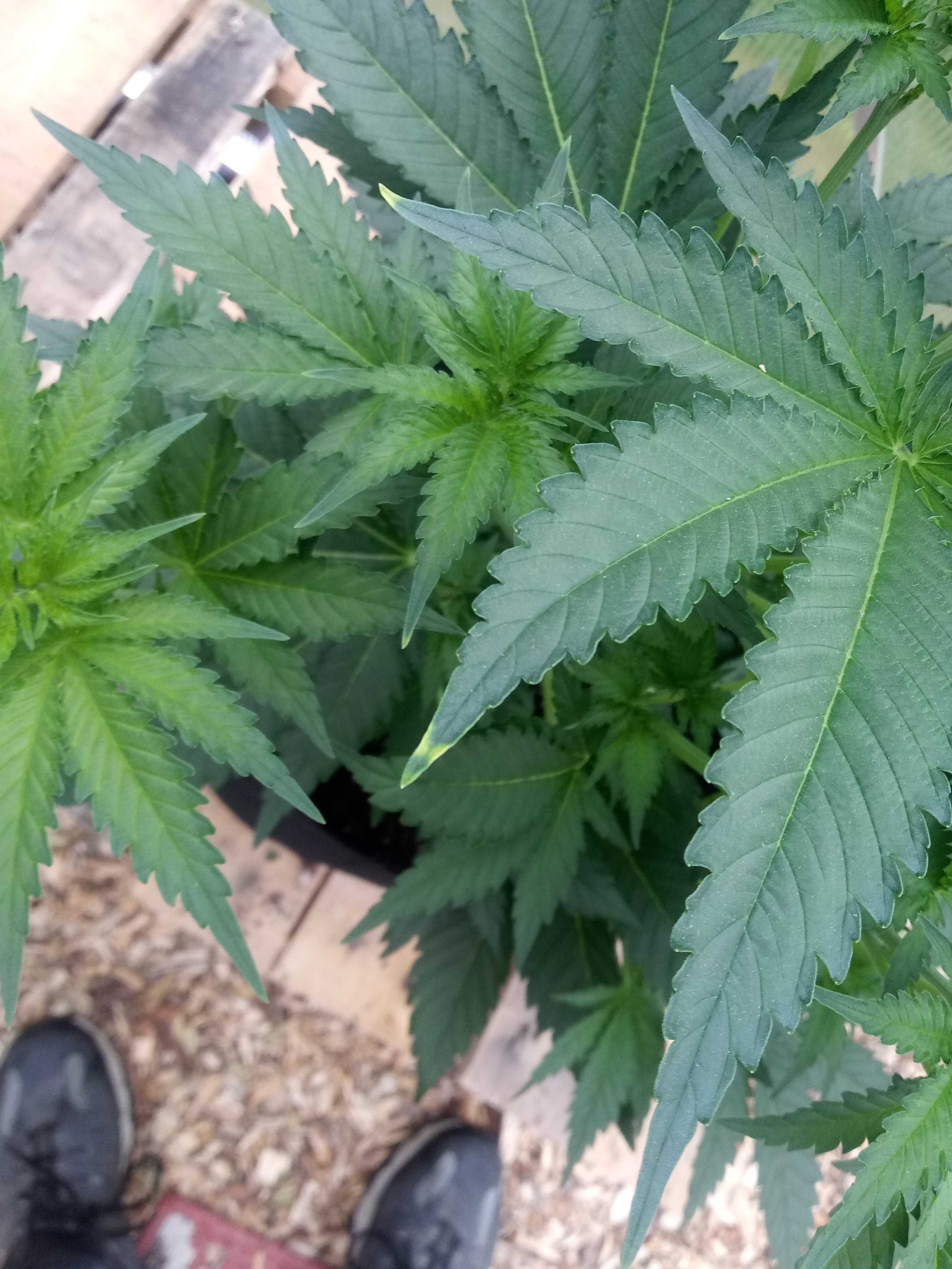 Hello all. Moved my plants from the grow tent to the greenhouse a week ago and everything has been great so far. One of my O.G. Kush plants has shown a couple things I'm wondering about. Four or five of the leaves near the top of the plant have some yellowing on the leaf tips. And there's a lower set of leaves that have some spots on them and the stem they attach to has some darker color. I'm pretty sure this set of leaves isn't getting much light due to it being low on the plant so I'm hoping it's normal and not a sign of a bigger problem. Been using the fox farm trio and ocean forest soil. Any advice is appreciated. Thanks.