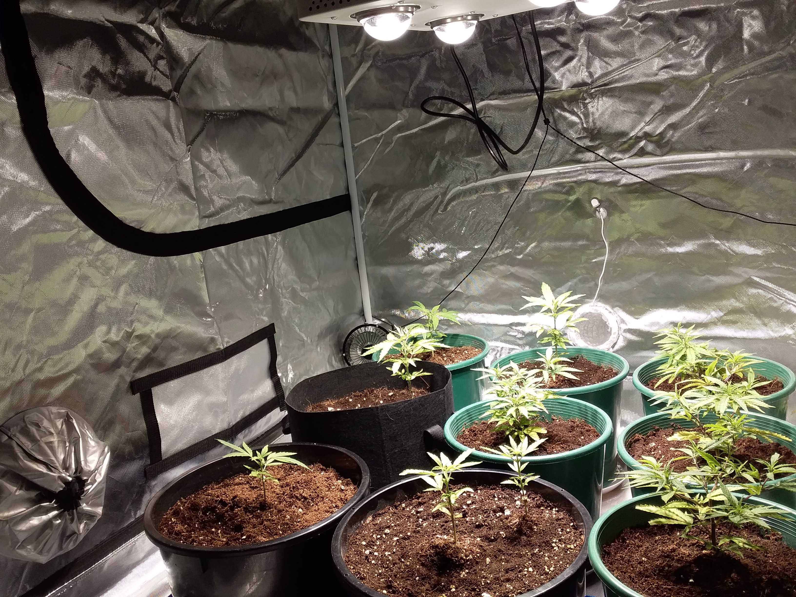 4x4x6.5 tent, (2) 18"x46" LED Strip Fixtures 440w?? 🙃 (2) Solacure UVB T8s, Infinity T6 fan, (4) 5gal DWC res.