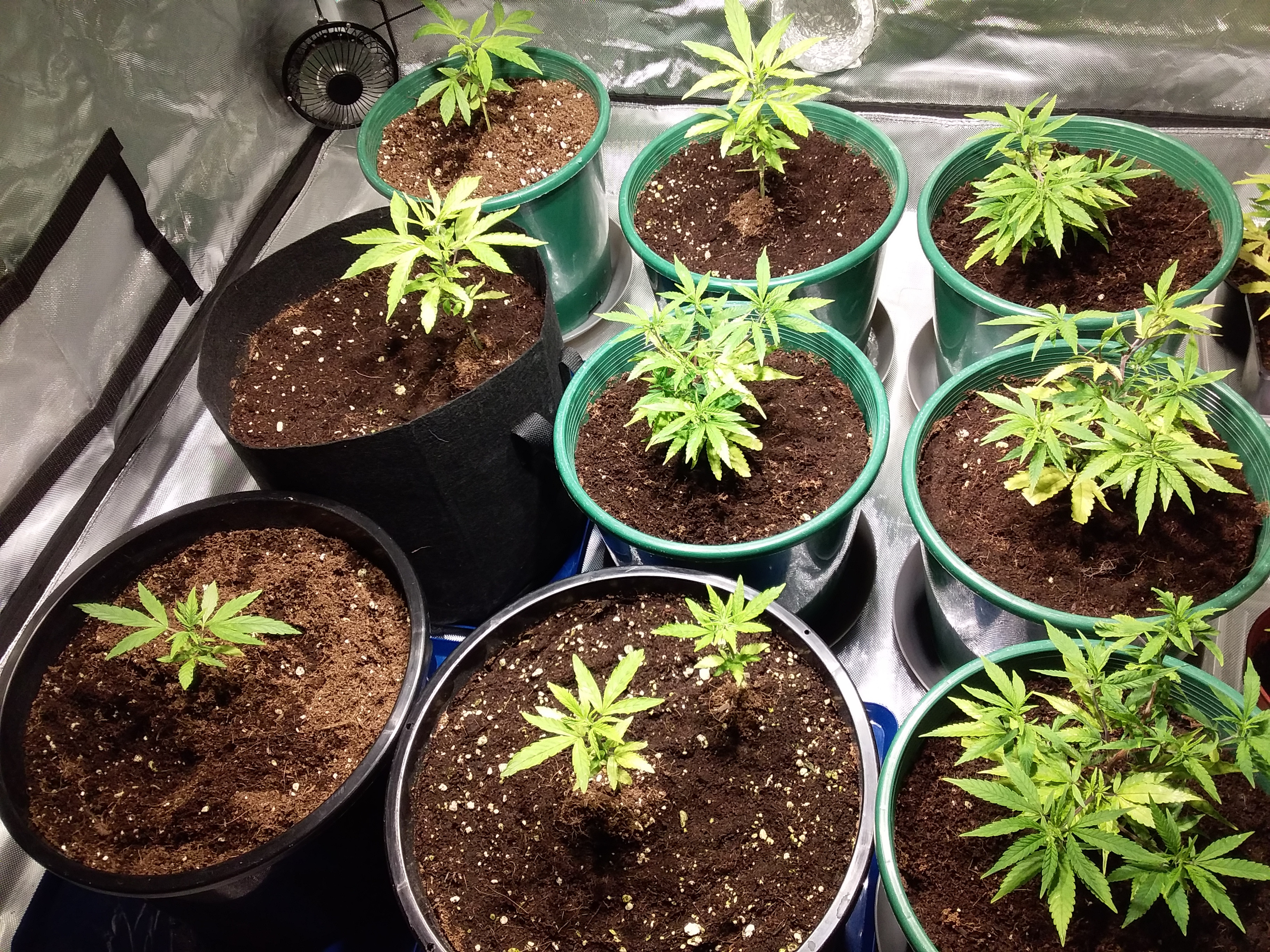 Nice setup! I could be wrong but am I counting 20 plants? I had 9 plants in my 4x4 tent last grow and that was a squeeze! I have 7 in there now but that wasn't supposed to happen lol. Also I see two pots that have 2 seedlings in them? Your outdoor grow looked phenomenal so I'm sure you'll have good luck indoors