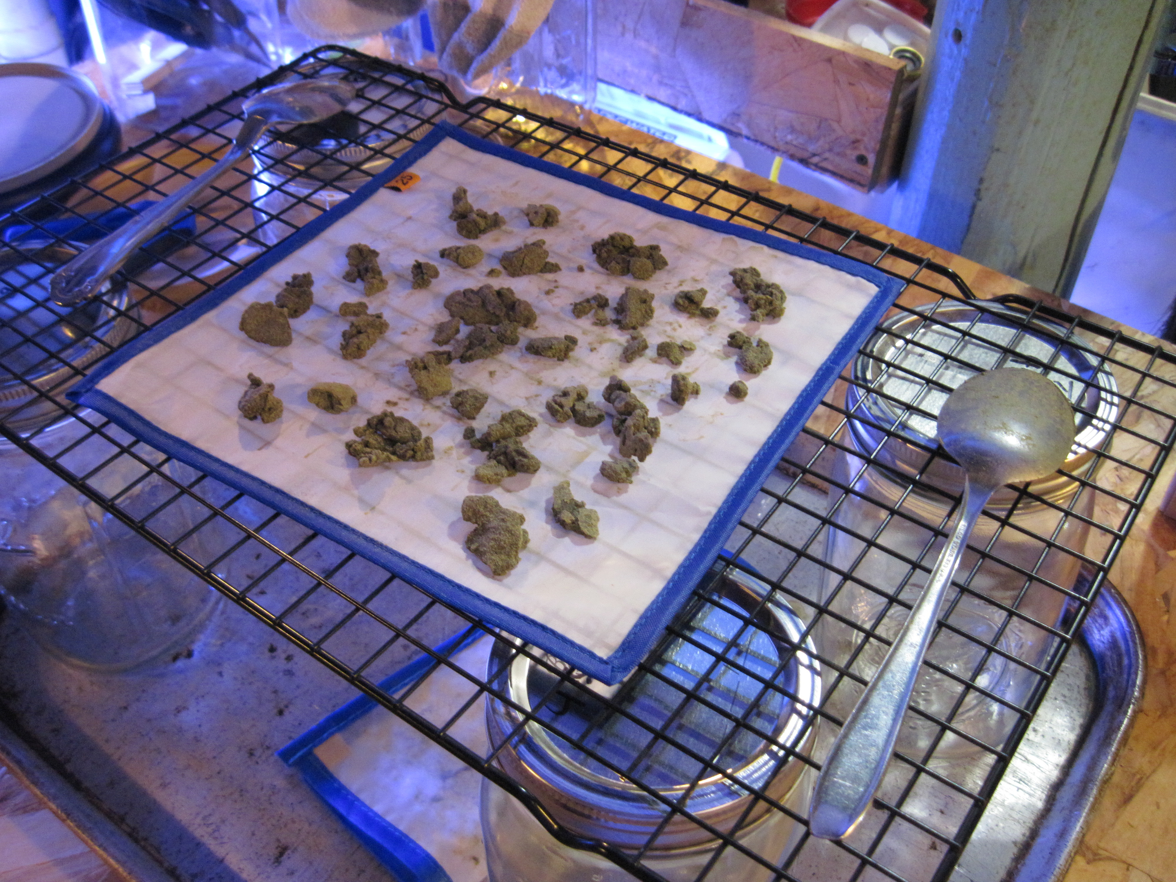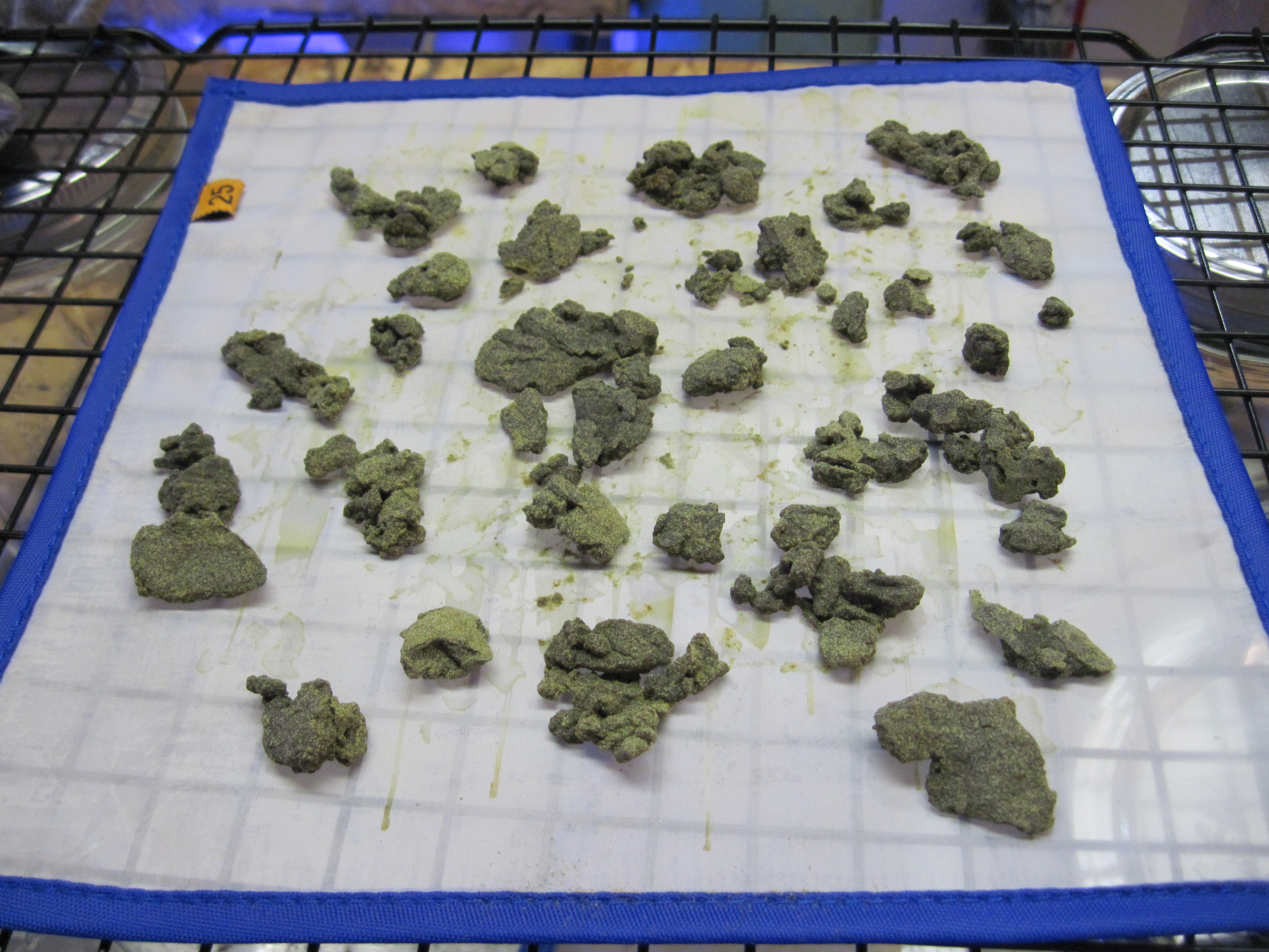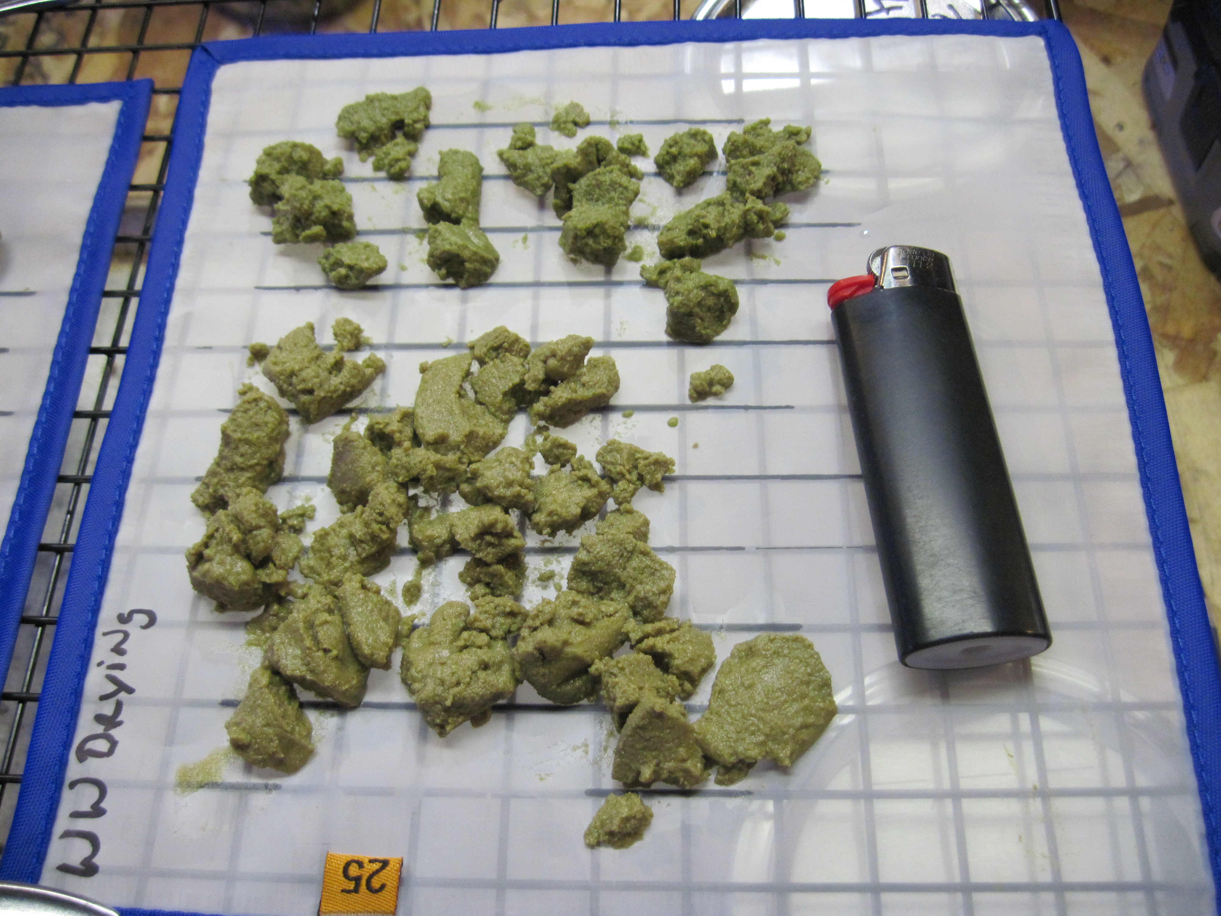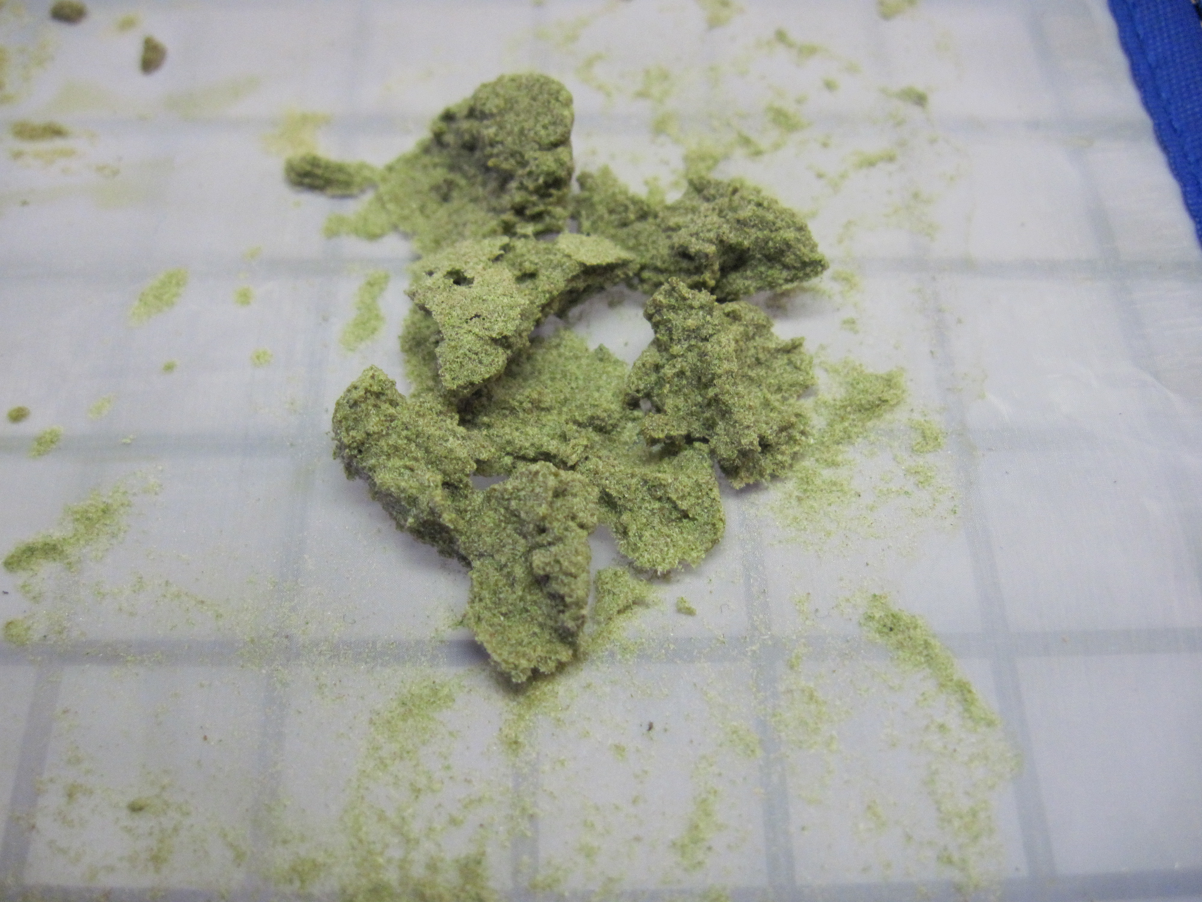 ID:	425520 I made the White Widow hash last Friday from the little over 3 ounces of trim I got 16.4 grams hash once dried. Tried it last night was very tasty and had a pleasurable affect. Now for a couple of things I have learned only do the mix drain and collection 2 times per batch in 1st picture the green is what comes from 3 collection mostly plant matter and not worth the time it takes to get. I also found it is best to use 2 of the drying / press mats the 1st you put harvest on when first removing from bag. The second is to move what you have collected onto once it firms up this will leave material on the first screen that can be seen in the 2nd picture . Leave that on the first mat and let dry for ease of removing from drying mat THROW IT OUT once dried it will be full of the chemicals from the water and will taste like it yes I tried it.