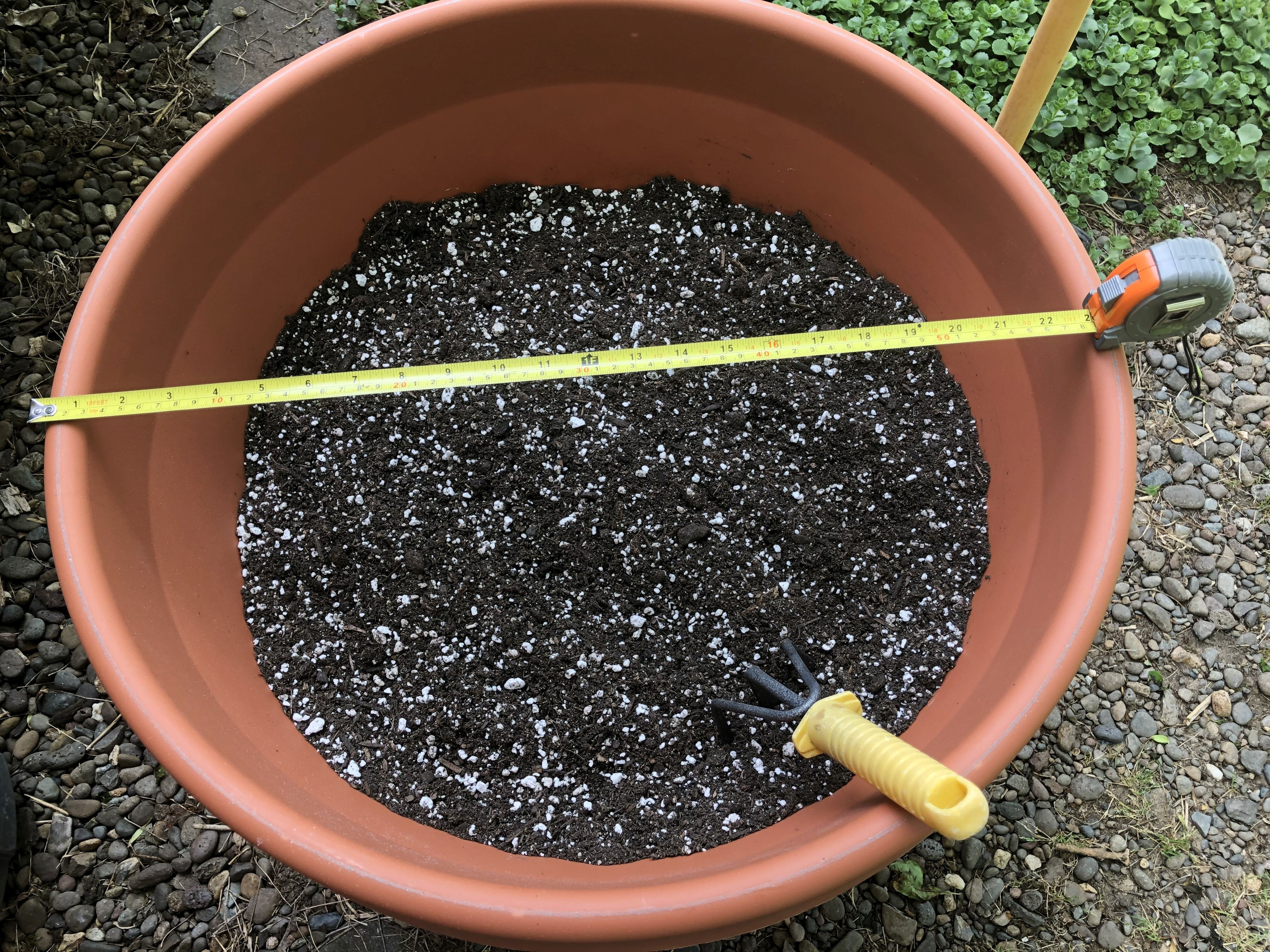 Got the soil in the pot and wonder if I need more? Right now it's about 18" deep and the pot is 22" across. Another question is if I can use water from the faucet or should I use distilled water and anything else I need to do?
