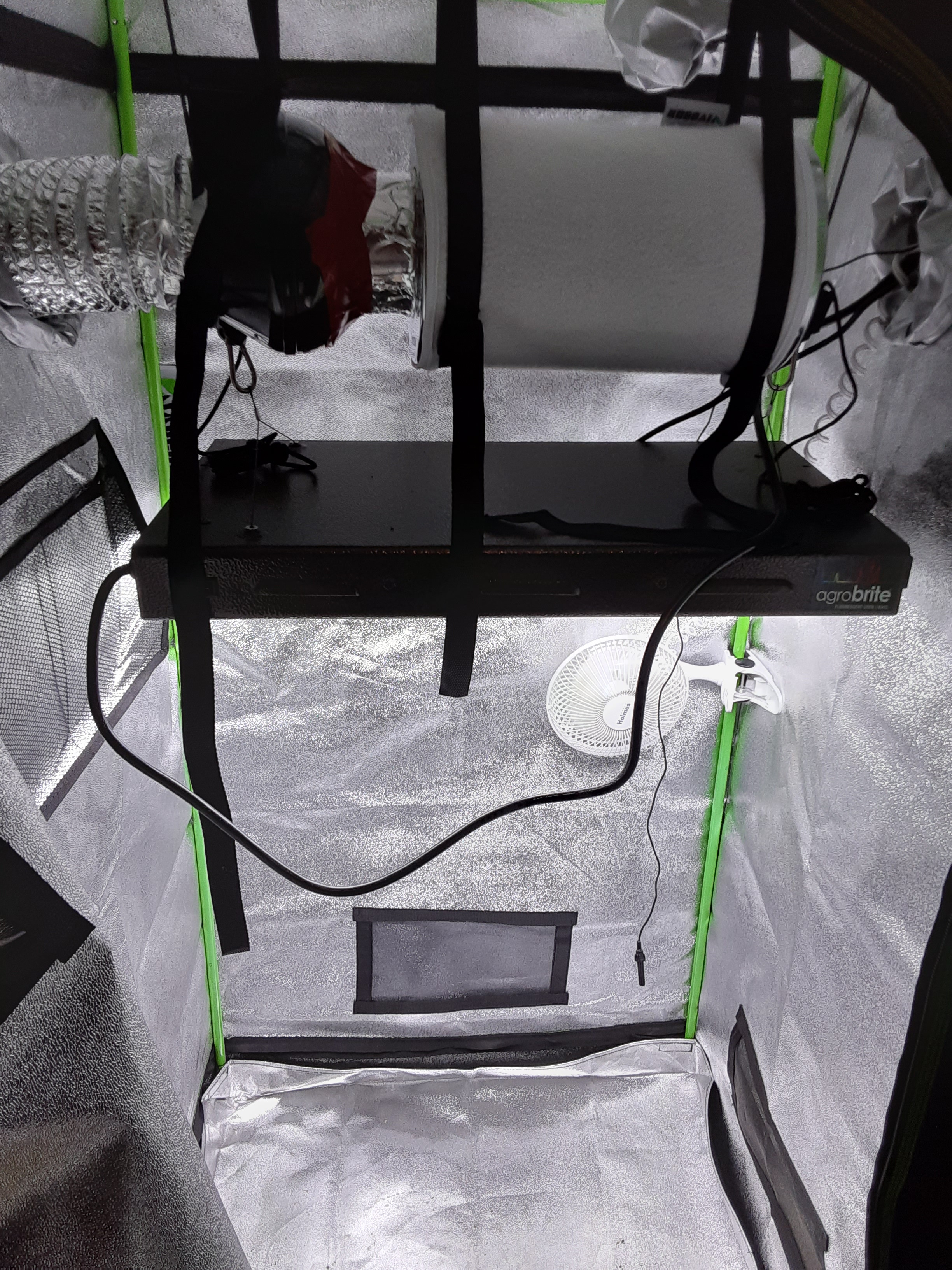 It's equipped with a 4 inch inline fan and carbon filter and in my last grow the funkies didn't escape my tent. I just have a clip fan and will upgrade to a osculating clip fan in August.The probe in the picture is my hygrometer so I can see temps and humidity without opening my tent.