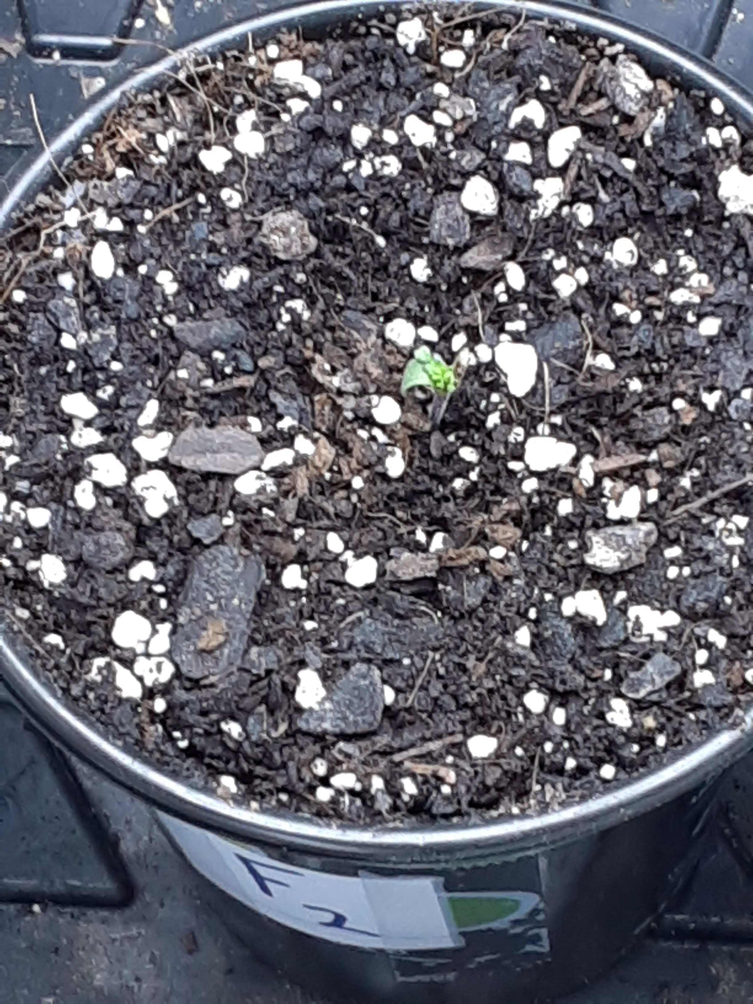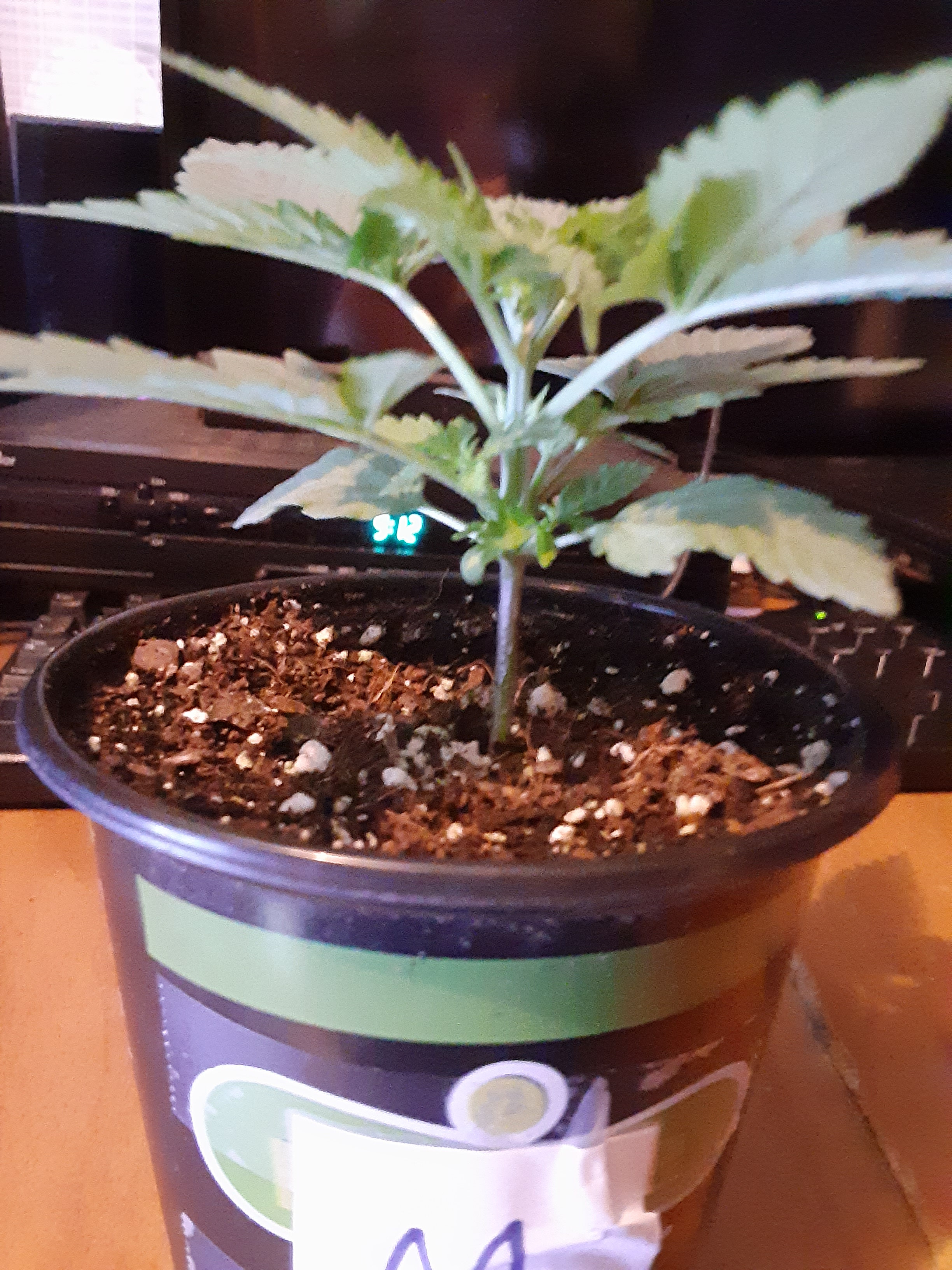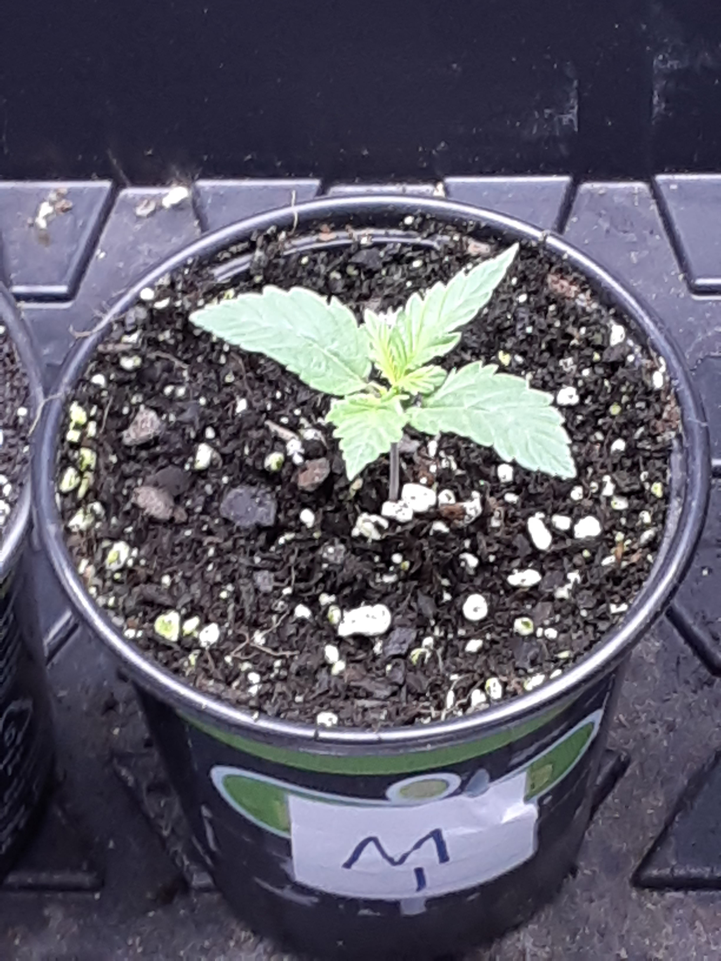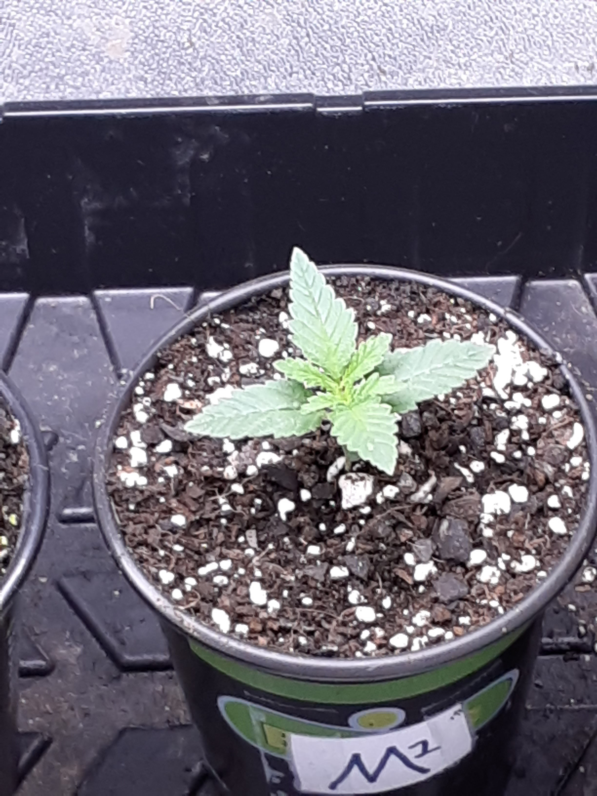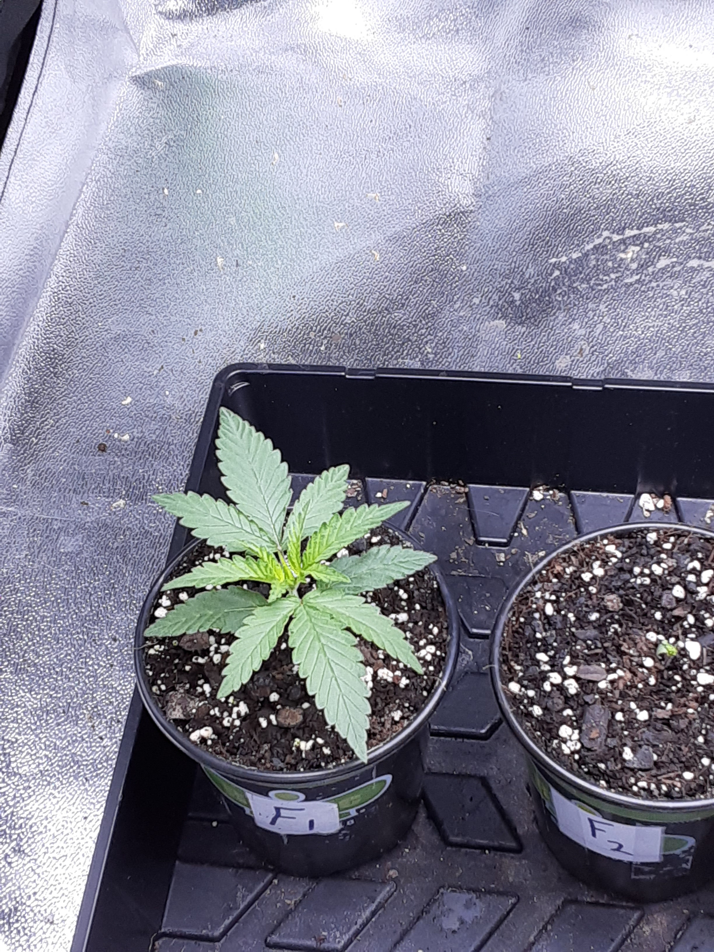 ID:	428518 This is the side view of week old F2 and is lagging way behind in growth and development than the others. I think just an unlucky seed but out of curiosity I'll think I'll hold on to it until the 4th week just to see what it looks like then.