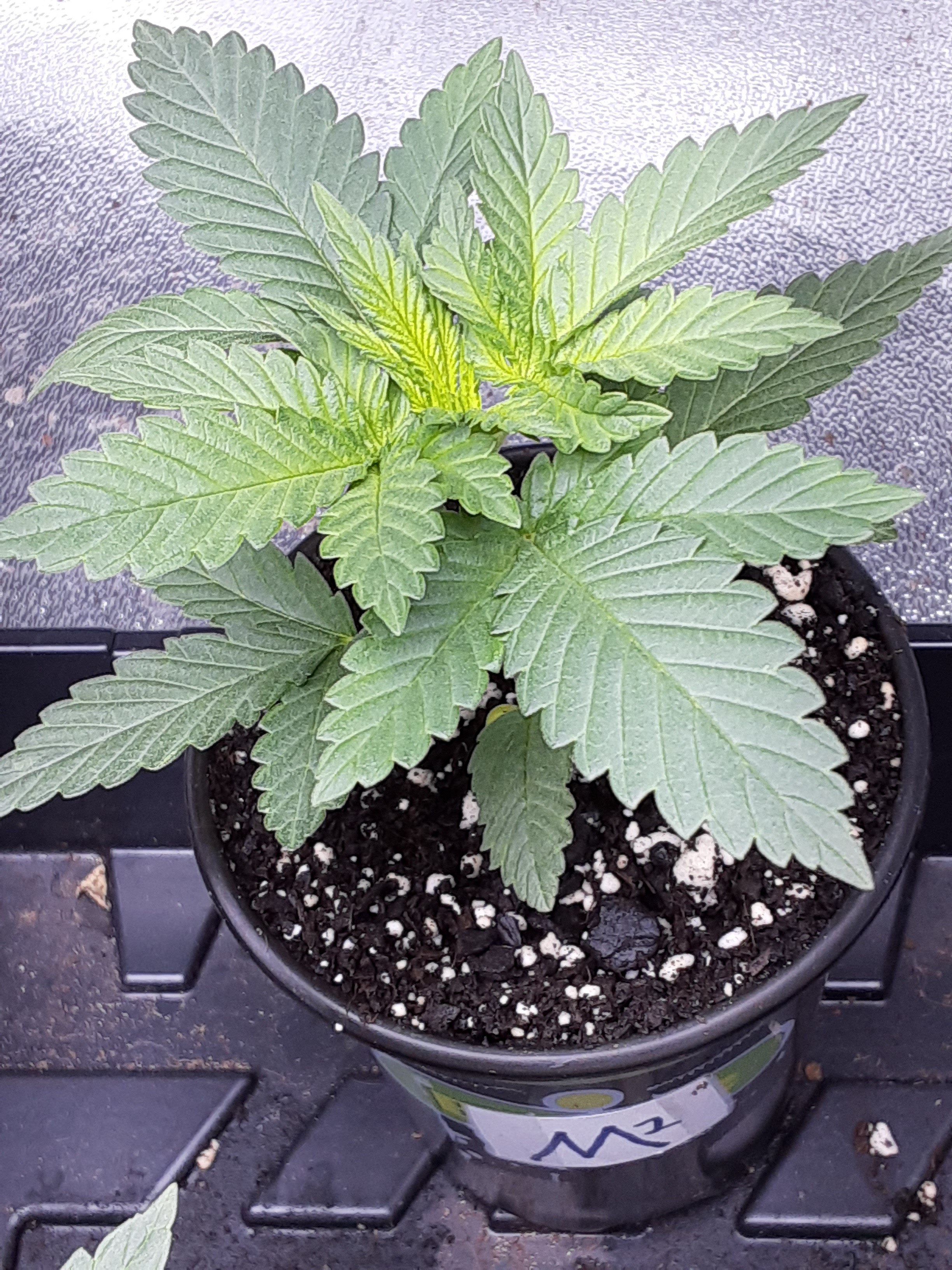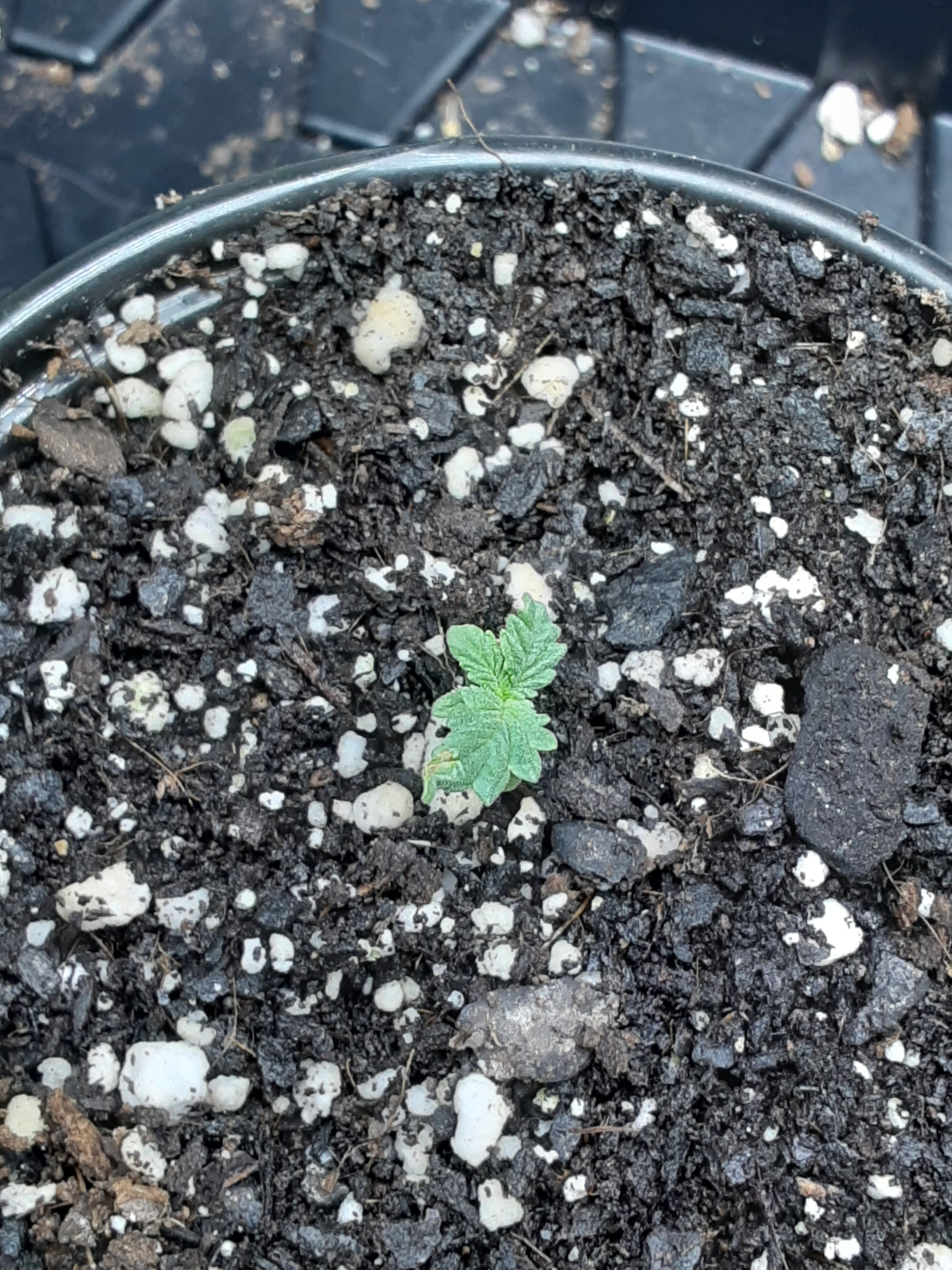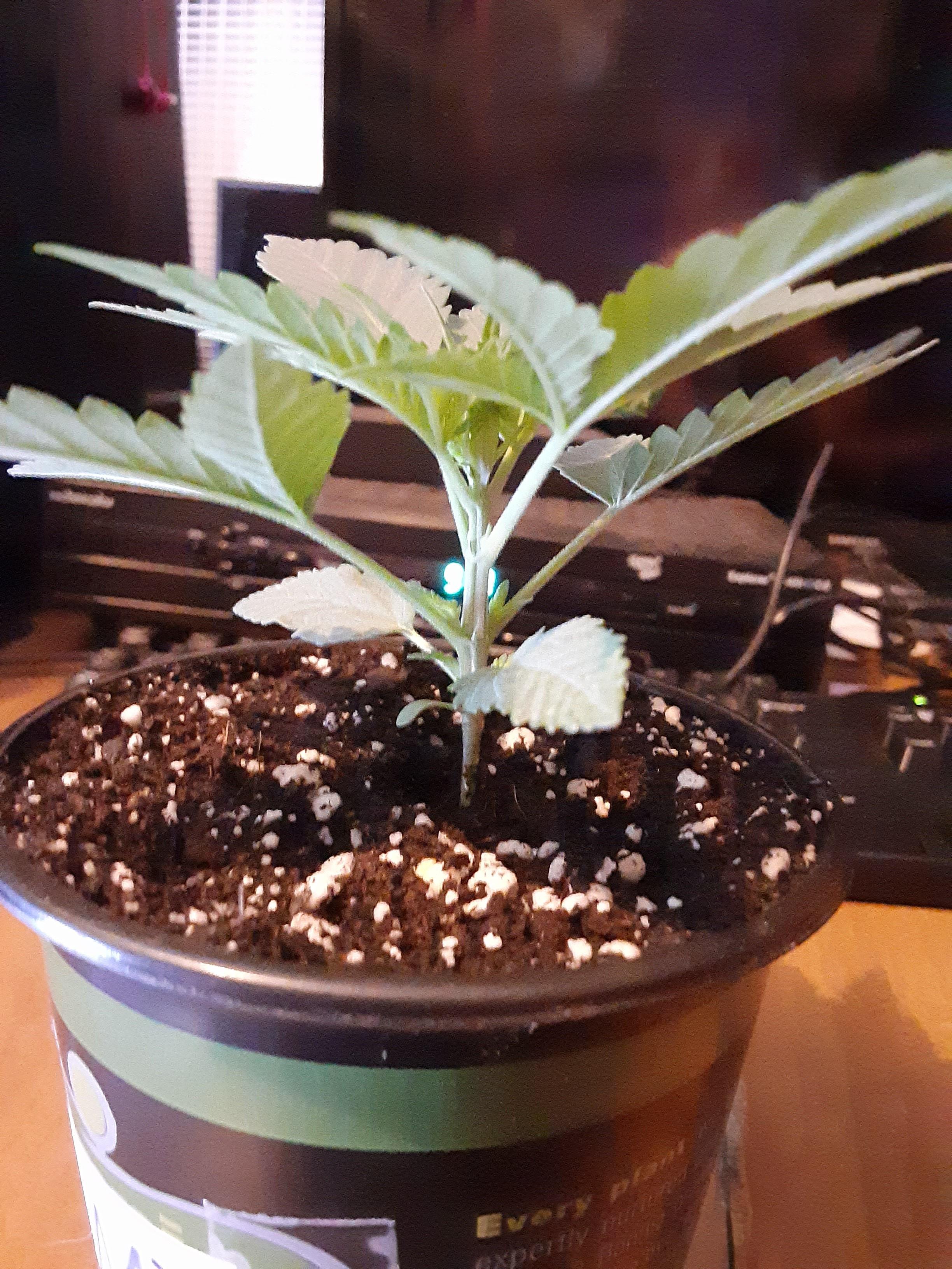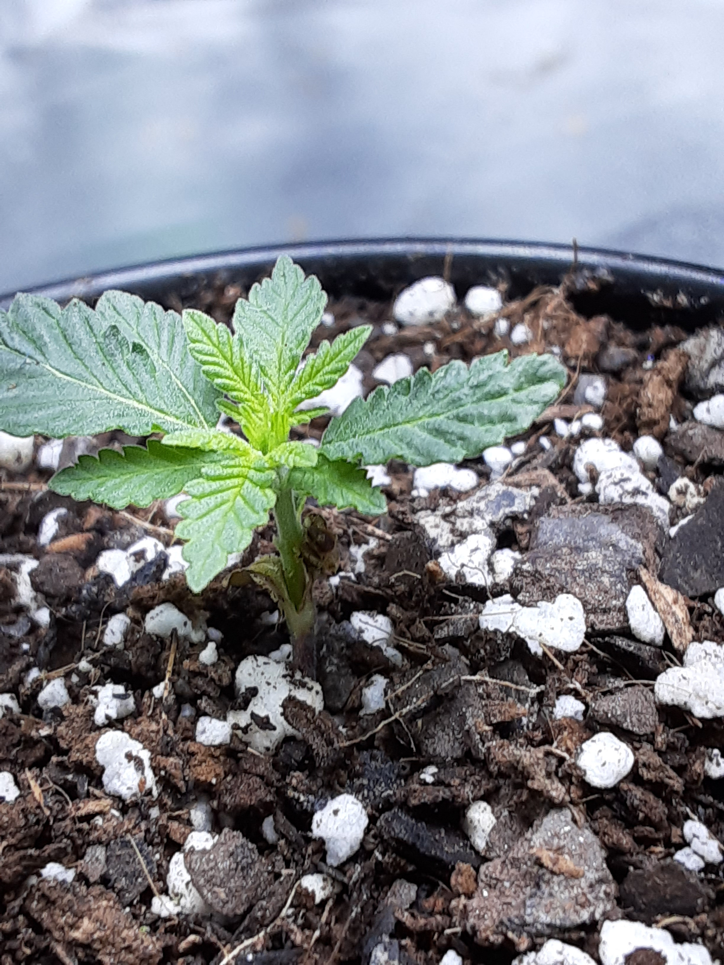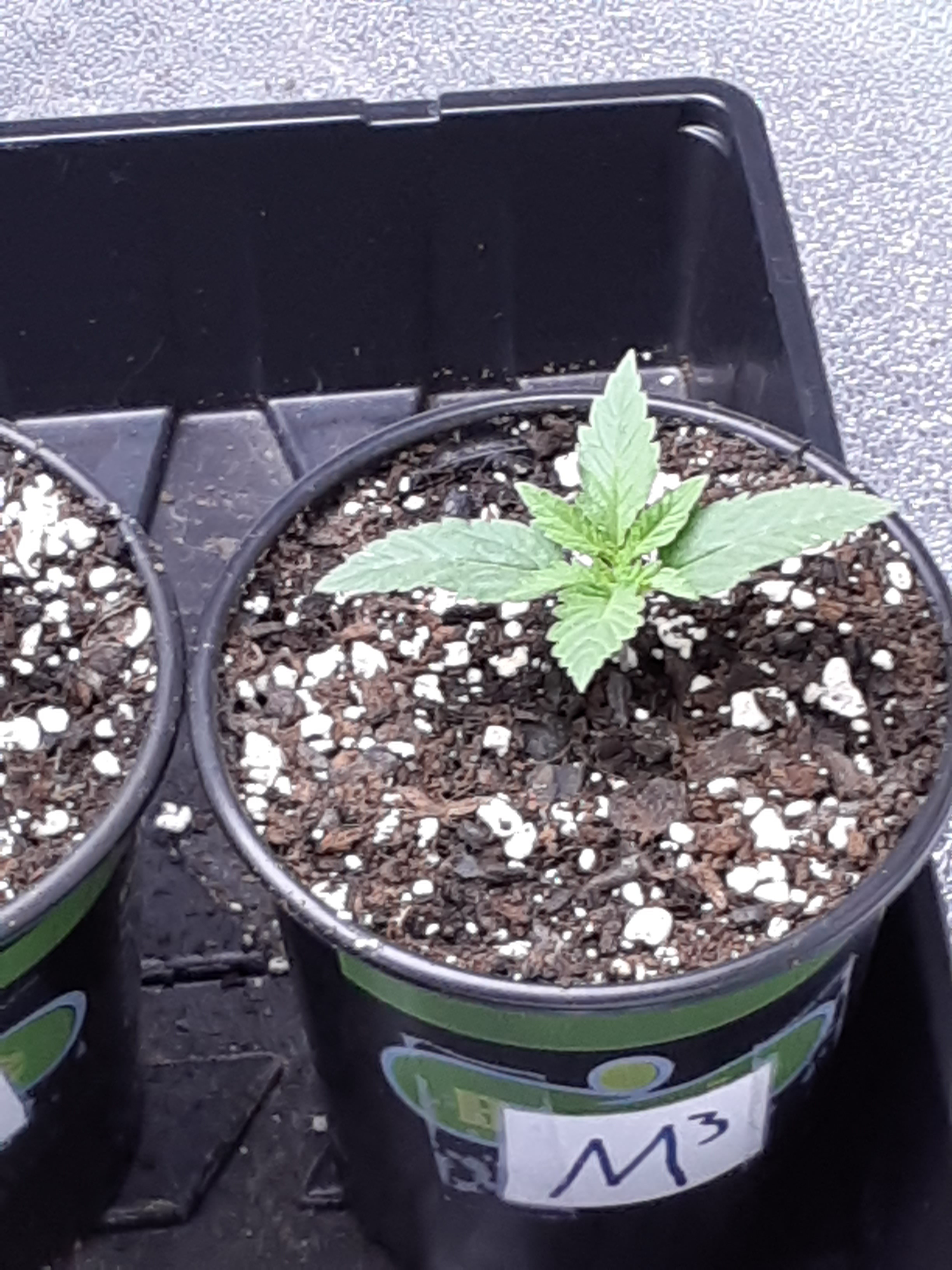 ID:	428518 This is the side view of week old F2 and is lagging way behind in growth and development than the others. I think just an unlucky seed but out of curiosity I'll think I'll hold on to it until the 4th week just to see what it looks like then.