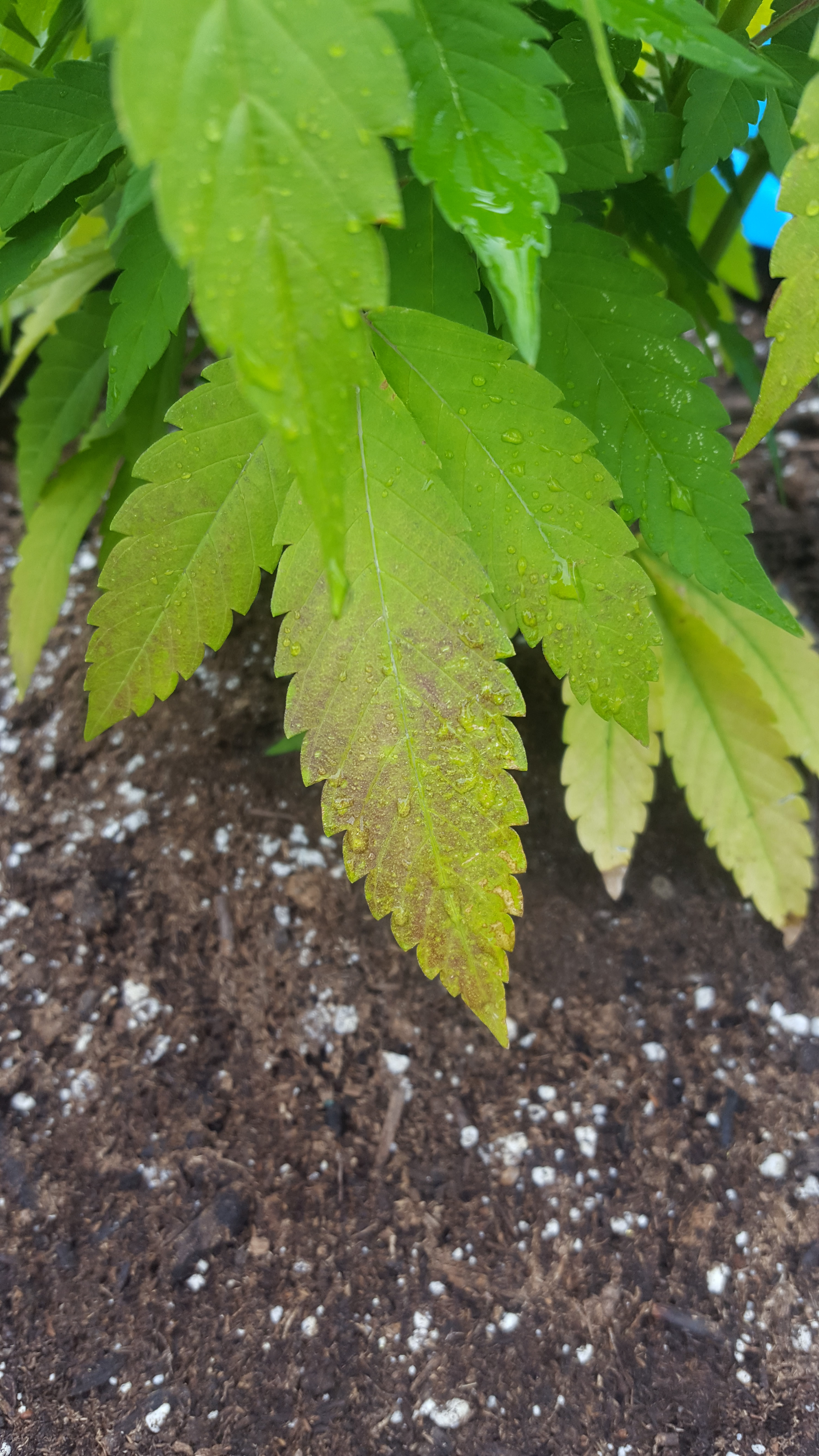 Hey I am a novice grower. Some of the leaves on my bubble gum kush clone are starting to turn brown. I noticed that it got worse after I transplanted it a few days ago. Any ideas from some experienced growers?