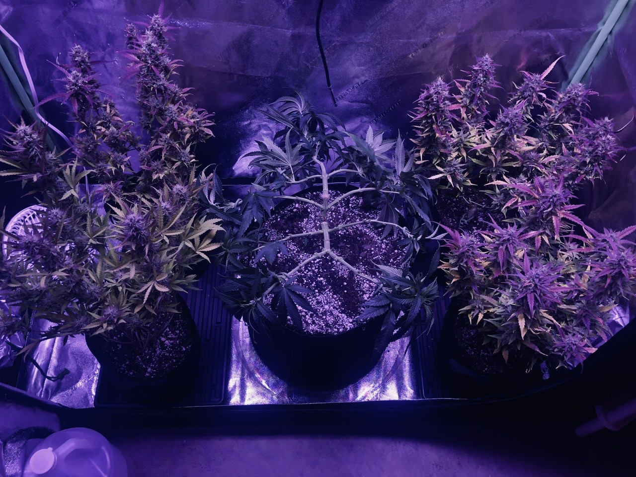 4x4 tent, Platinum LED P4-XML2, four Patio Pickers. Vegging Liberty Haze, Acapulco Gold, Lavender and Sweet Amnesia Haze.