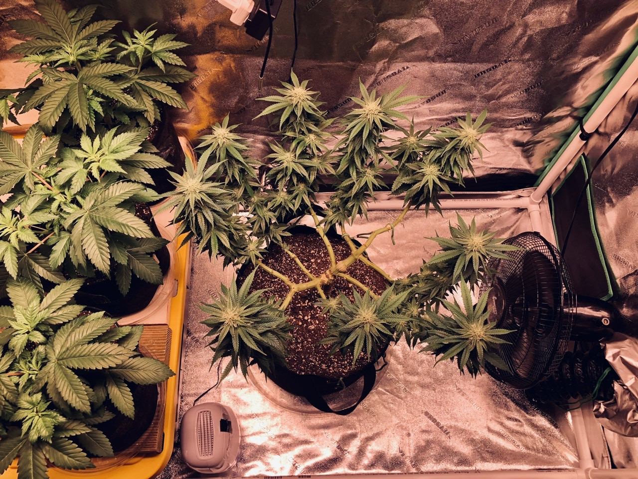 Forgot about this thread. Took the one pic last night after defoliating the little ones. The other one is from July 23rd to show how much they’ve grown in a month. First time I’ve ever done a SOG type grow and I only did it to fill up some space in the tent. May have discovered a new method though! Kinda like growing autos only I suspect the bud will be better.
