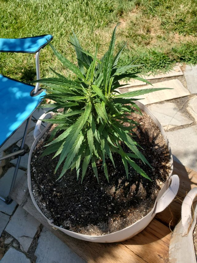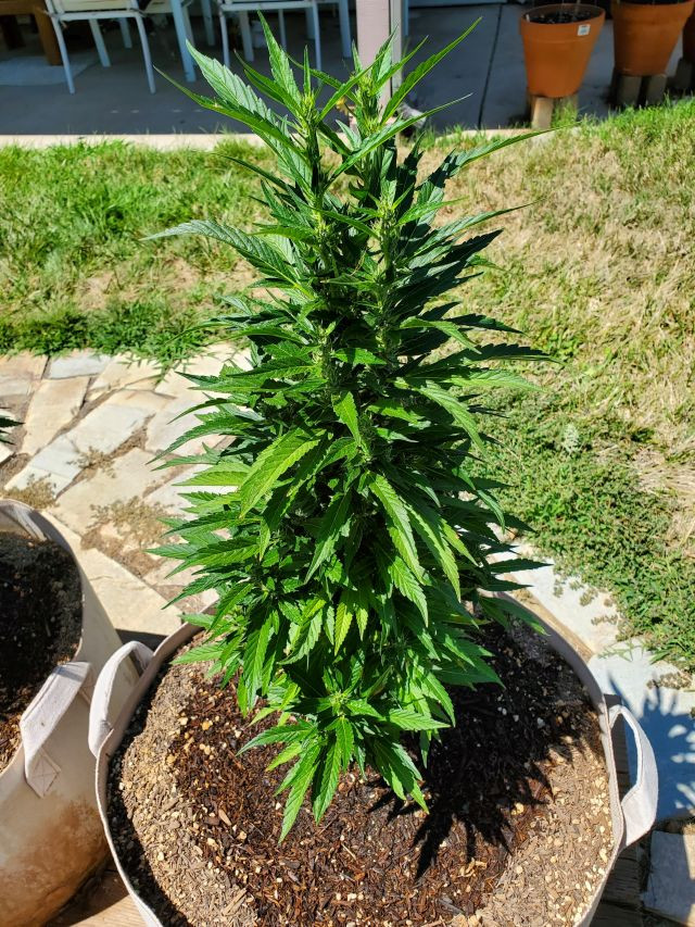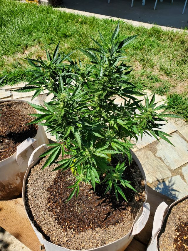 FYI I checked out the website Korn suggested and found a straight forward article on using distilled white vinegar, https://mattgadient.com/my-attempts-...d-citric-acid/. So I did some testing with my water jug and found that when I put 1 tablespoon of distilled white vinegar in the 2 gal watering jug, mix it thoroughly I get a measured PH in the upper high 5 range. So, I am watering Mon, Wed & Fri, 1/2 gal each, with that and Fox Farms trio also added at the same time per their directions. On Sundays I flush each plant with 1 gal of PH'd water only to keep the nutrients from building up to much. I have attached some pictures of the results which clearly shows improvement (#1 is the plant in my original post and #3 & 4 are the same plants posted by me on 7-16-20, 6:27 PM. All are beginning to flower now and I think it's time to thin out the fan leaves etc... So, Thanks again to Korn for his suggested website and everyone else for all their helpful feedback and keeping me pointed in the right direction. Stay healthy and safe...