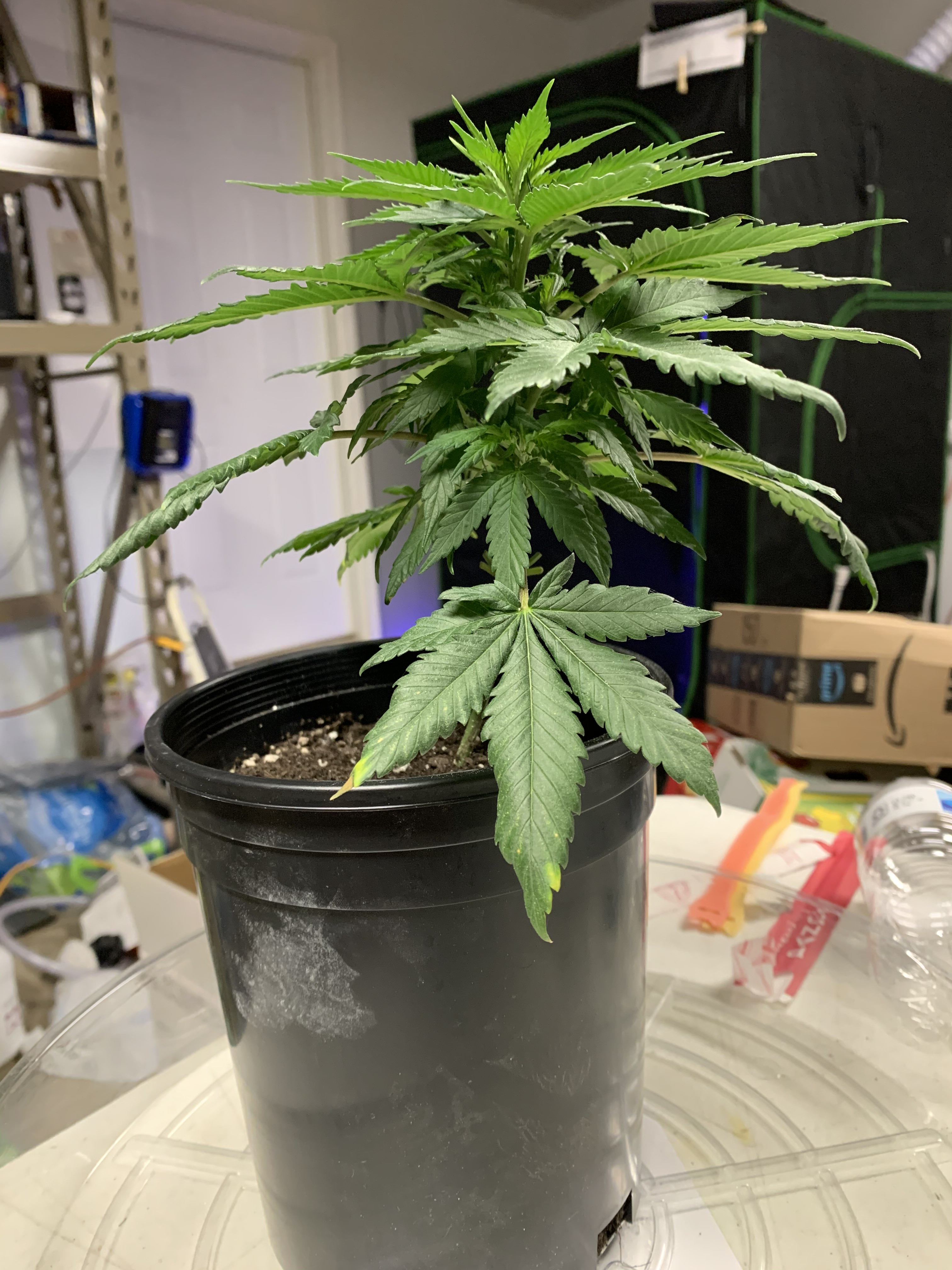 Also, we transplanted them from solo cups to the current 3-gallon pots on 6/28. Could this be a sign that we need to transplant them to their final 5 gallon home, or should we wait? My plan was to transplant them on 7/25 (and then feed them right afterwards) and then switch them to Bloom on 8/6 as they'll be 60 days old then.