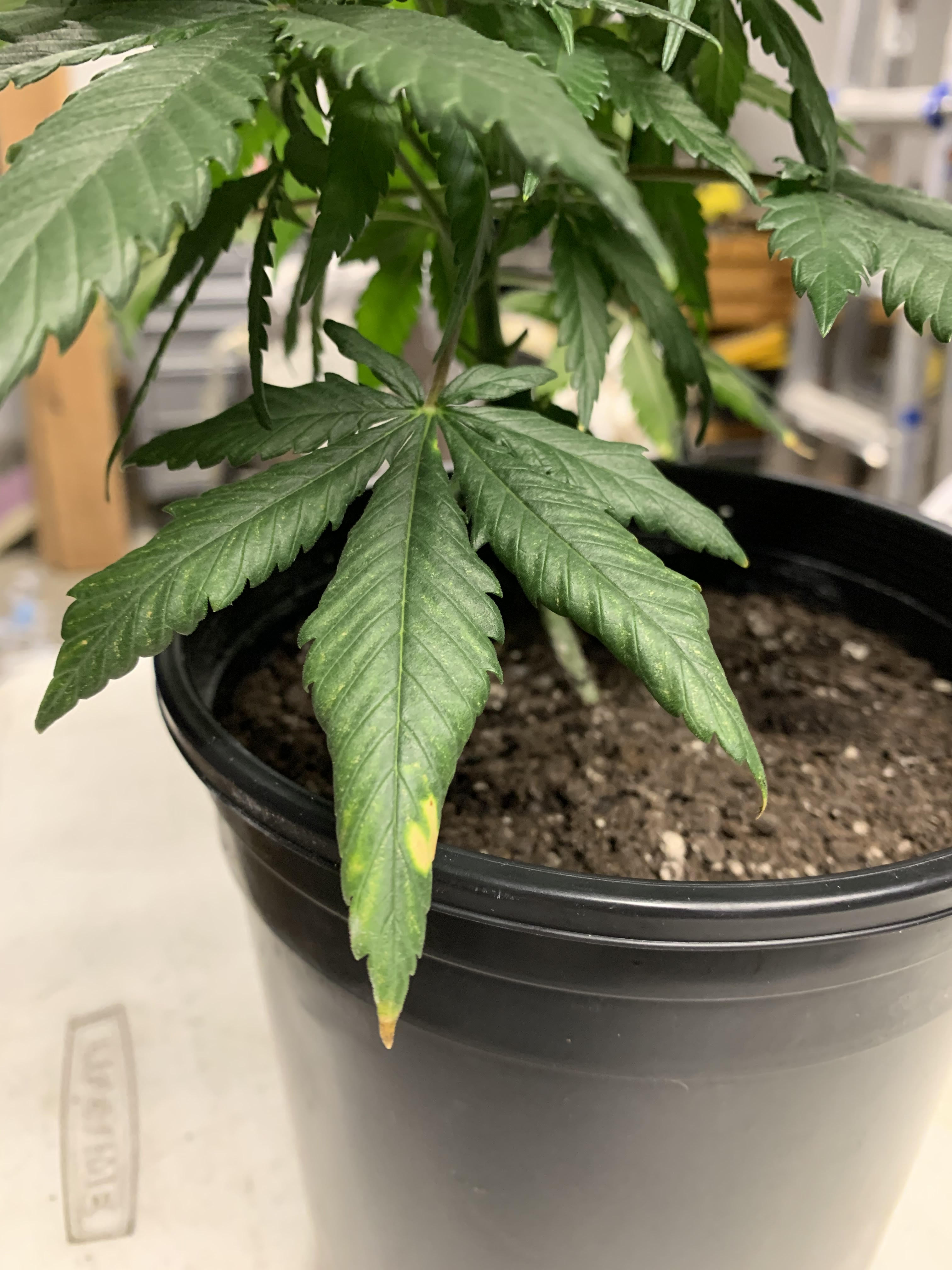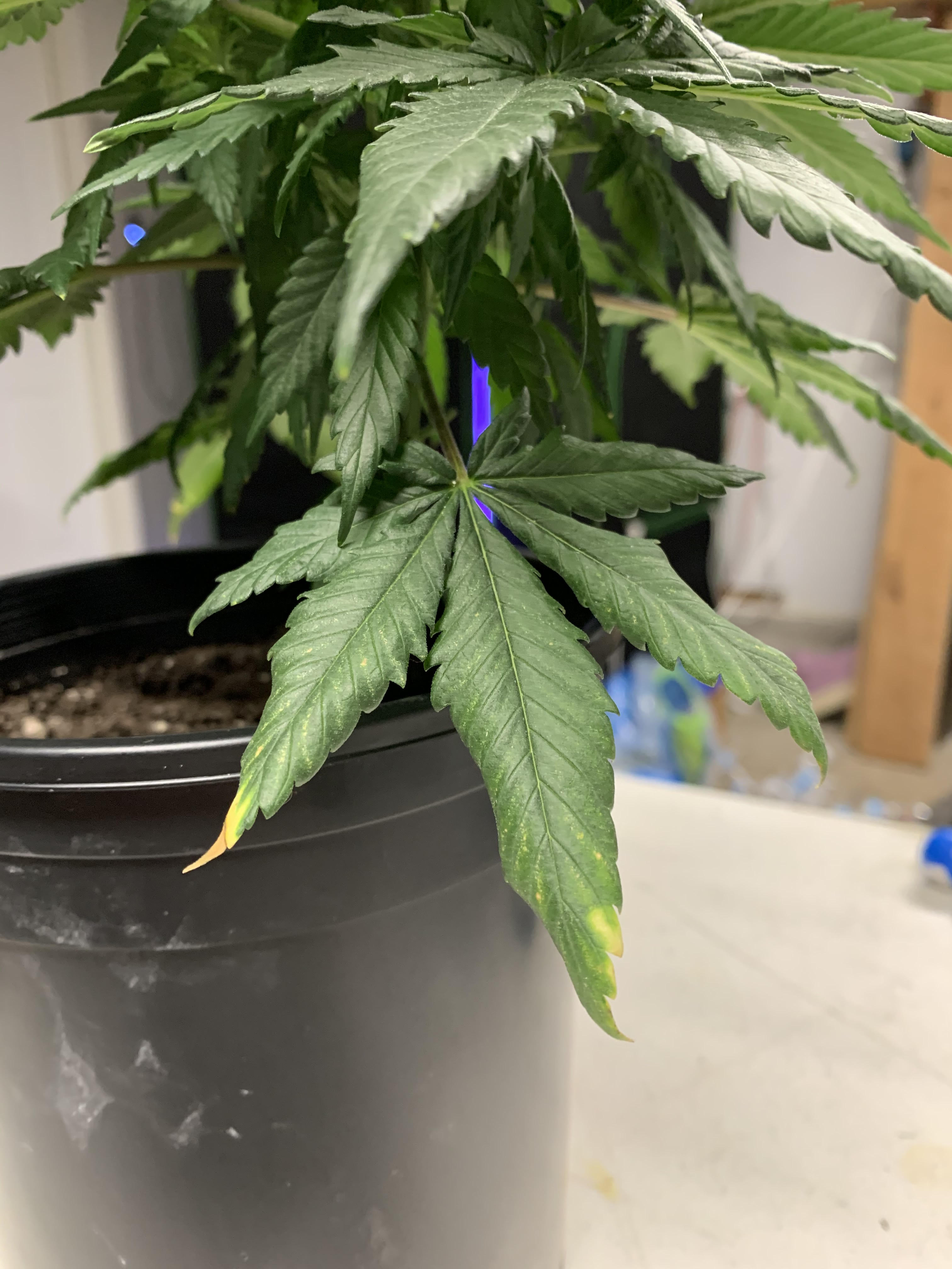 Around 7/17 the plants were needing water again but I didn't want to risk overwatering as I wanted to feed them again. This is when I also began to notice some yellowing and browning on the edges of a couple of leaves. The very pointed tips had also started to curl/point downward as well.