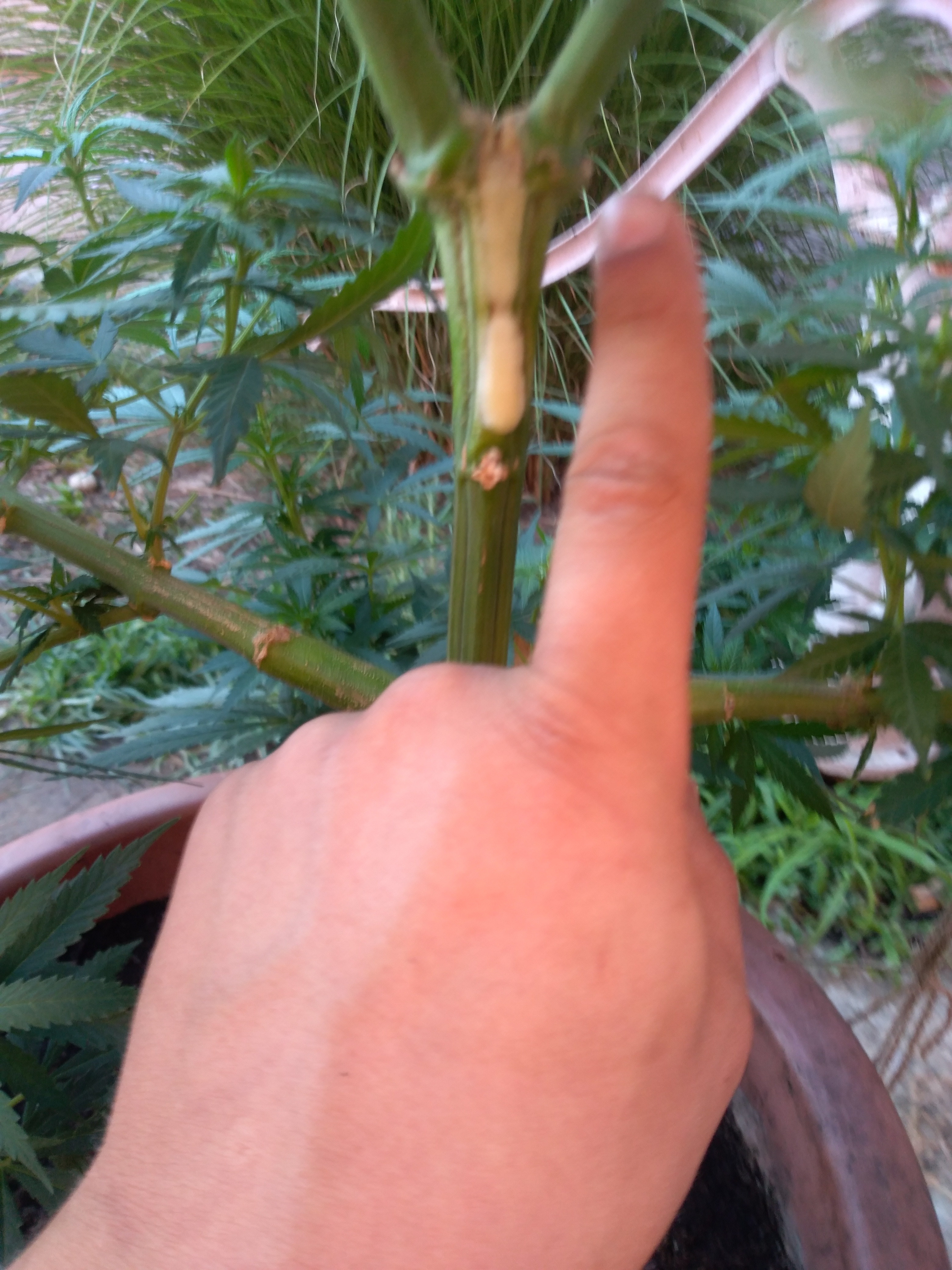 Great picture. I've got duct tape holding my outdoor plant together. She's about 6'0" tall and as big around as a whisky barrel. She's planted in the ground and heavy winds pushed her over on her side. I broke a branch trying to get her set back up, hence the duct tape. Was able to stake the plant and make it somewhat stable. That was over a week ago and she is thriving.Growing Autos and Photos, Gorilla Grow tents, AC Infinity fans, exhaust, filter, humidifier, and controller, HLG Lamps, 50/50 Coco/Perlite, Autopot system, BlueLab PH Controller, CX Horticulture nutrients