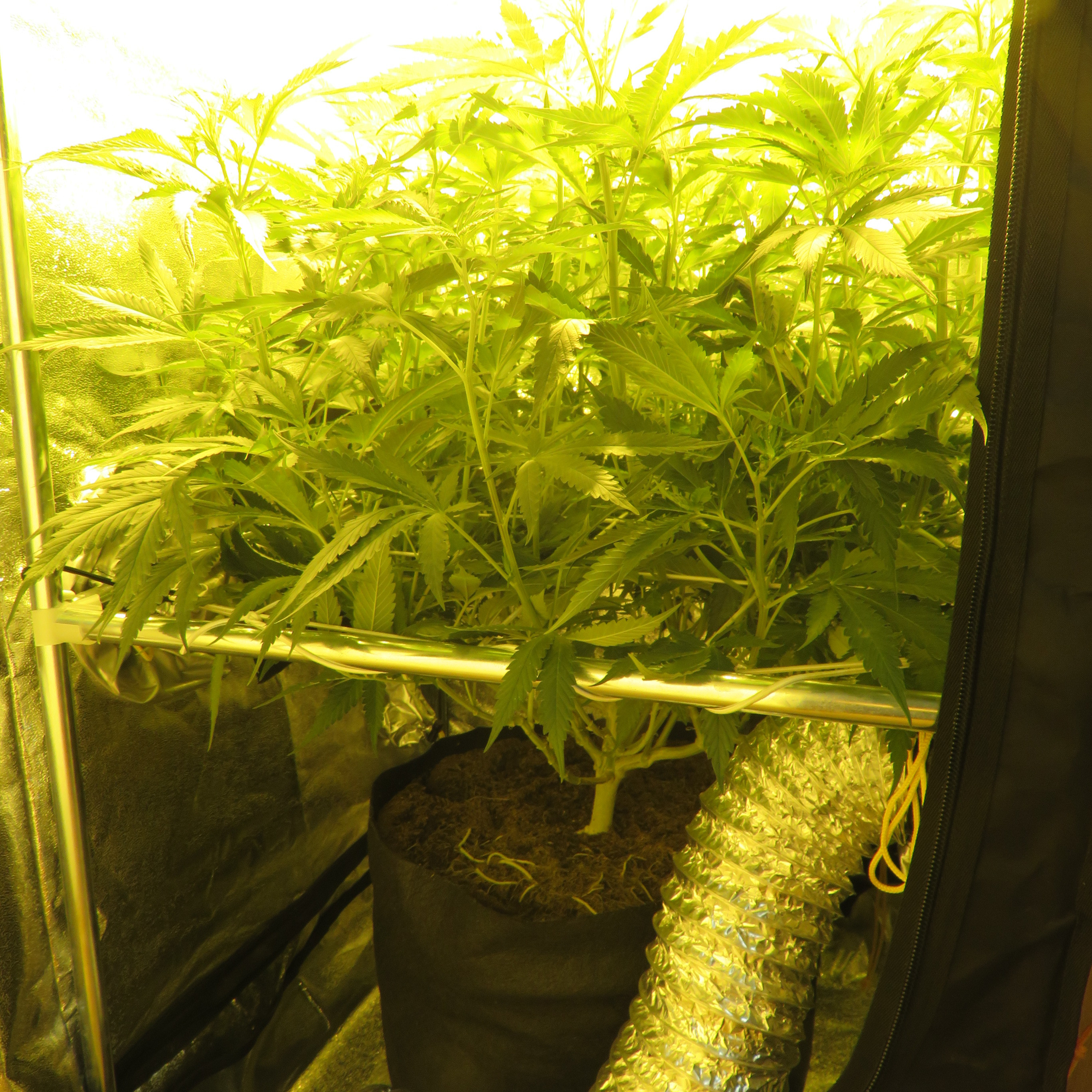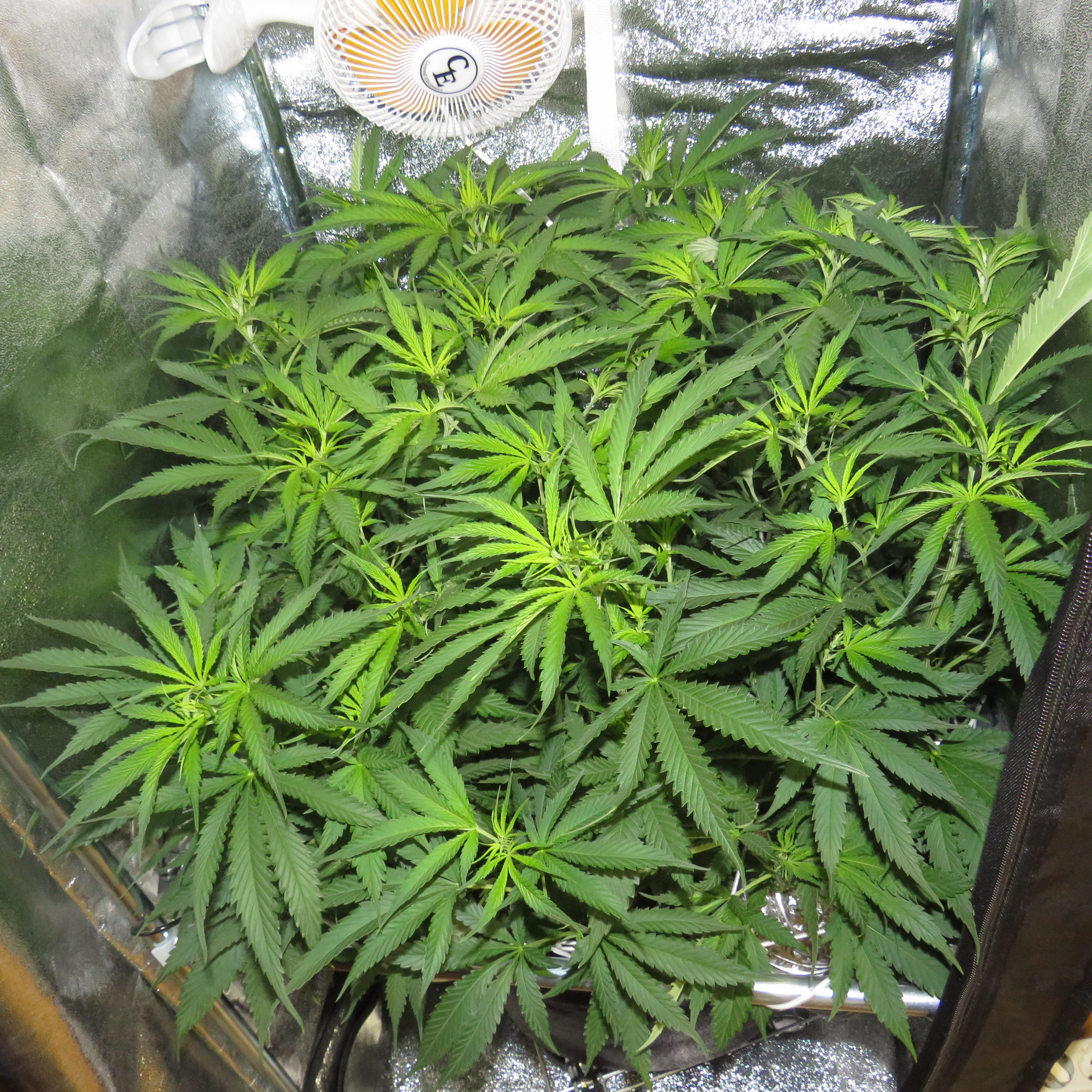 She's been through major defoliation 3 times already. Last one was to get rid of everything below the scrog net. Since I switched it to flowering she stretches like a mofo. I plan to defoliate next week as well. I also have an old ac. The idea is to fix it and keep it on for the last 3 weeks. Thanks for the info once again man. cheers