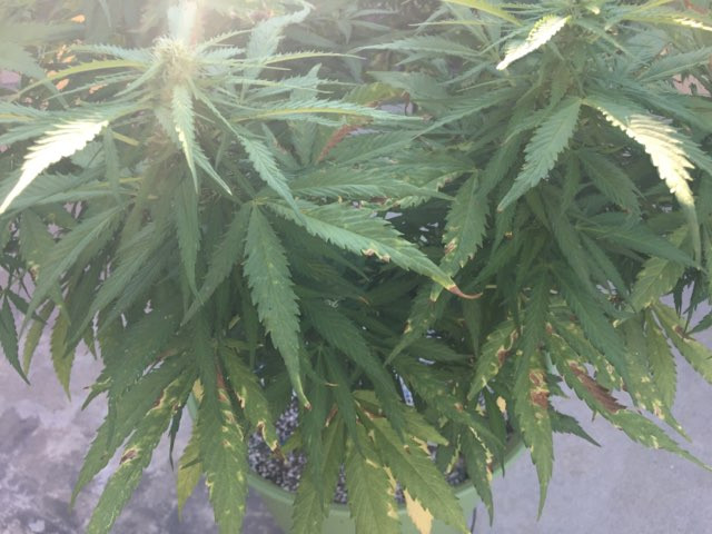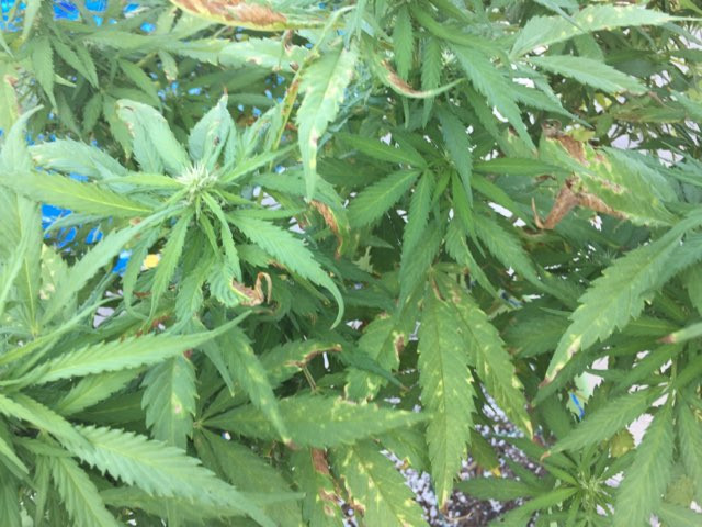 Hello My Friends, I am growing two plants outdoors, one I let grow naturally, and the other I main-line into 16 tops, it looks really bitch! But then I noticed some bugs were eating leaves, so I sprayed them with an organic pesticide I had. I gave them a good soaking after the sun went down, and the next day, when I got home from work, the leaves were all burnt to hell. then I realized I mixed the pesticide wrong. it should habe been 1-1/2 teaspoons per gallon, and I mixed 1-1/2 tablespoons per gallon. so then I gave them a good soaking with plain ph'd water. but leaves are dying off. any advise on my next course of action, to try and save these lovely ladies?