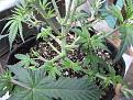 Before topping i was encouraging the first 3 sets of branches to begin growing away from the main stem - using electrical wire holding them down in the soil.