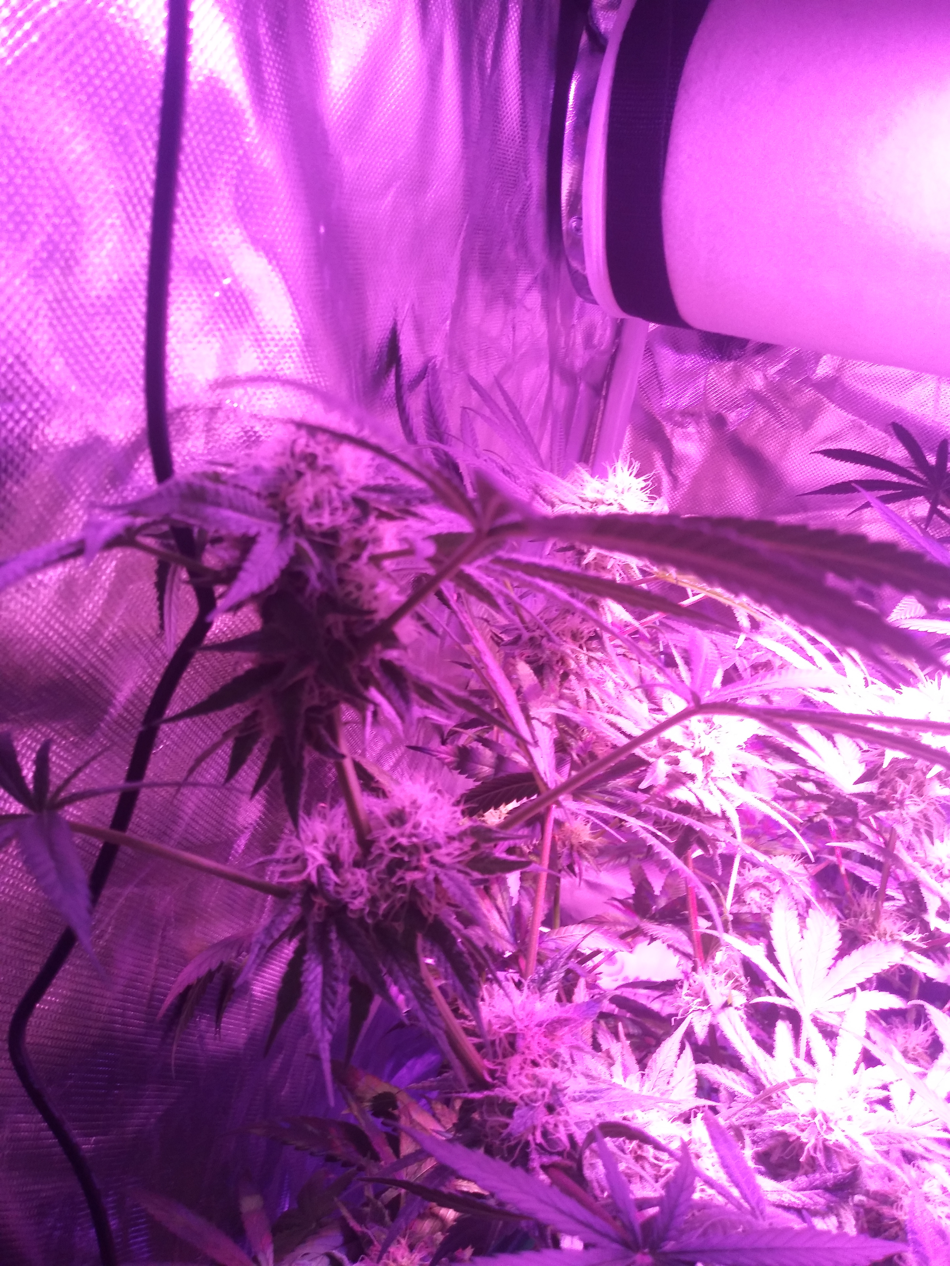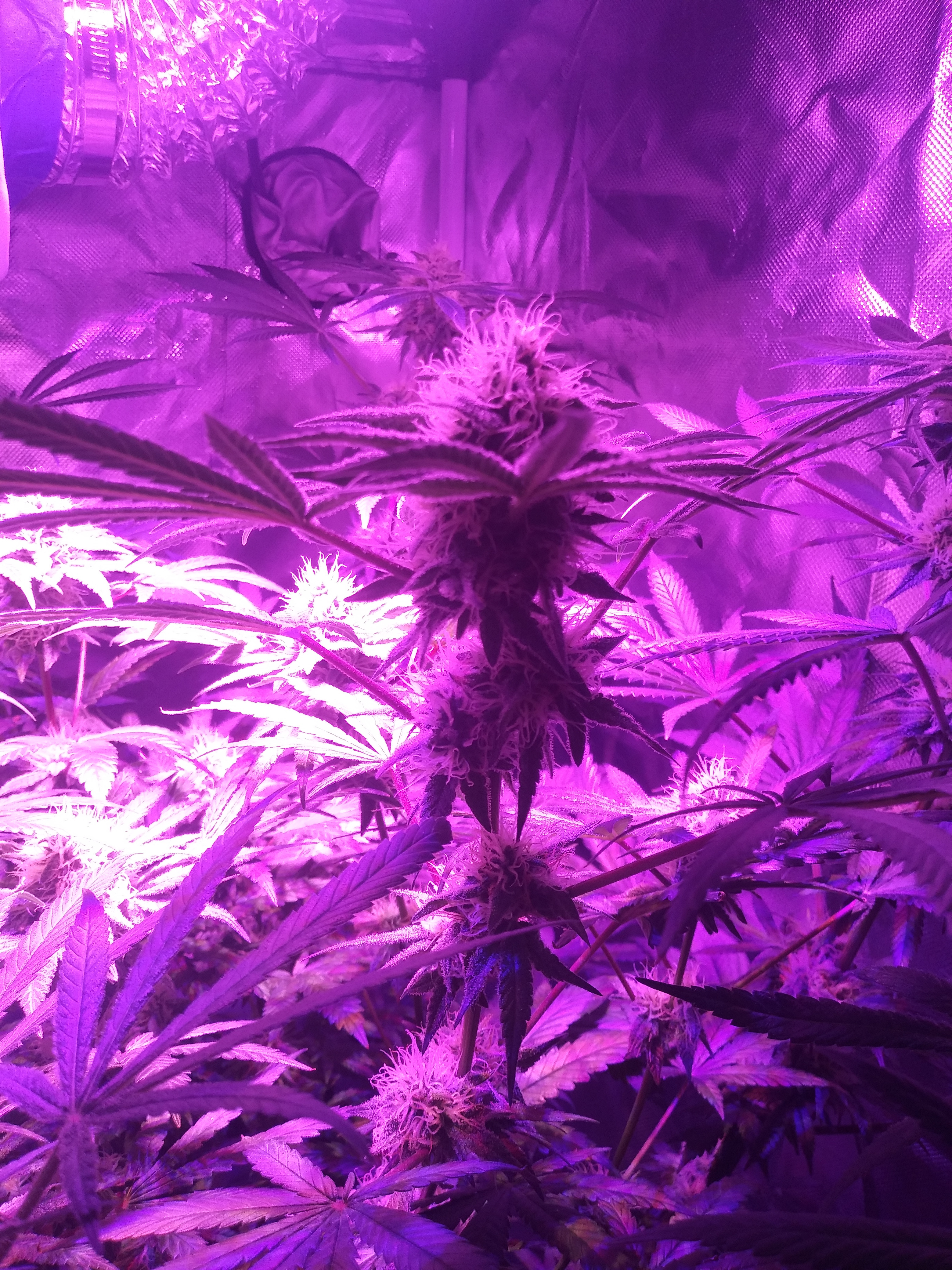 I peeked in the tent this morning and I was shocked to see their size. I measured their stem space between the buds and most of them actually grew up to a quarter inch. Carbon filter is kicking butt too!