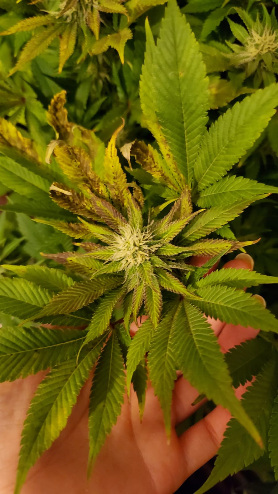 Sadly in the last week, the first real issues have started. Some of the leaves, mostly on one of the four plants, have started to seriously discolour. I can't tell if it's disease or nutrients, please take a look. I've decided to remove the worst of the leaves to prevent transmission in the case that they are infected.