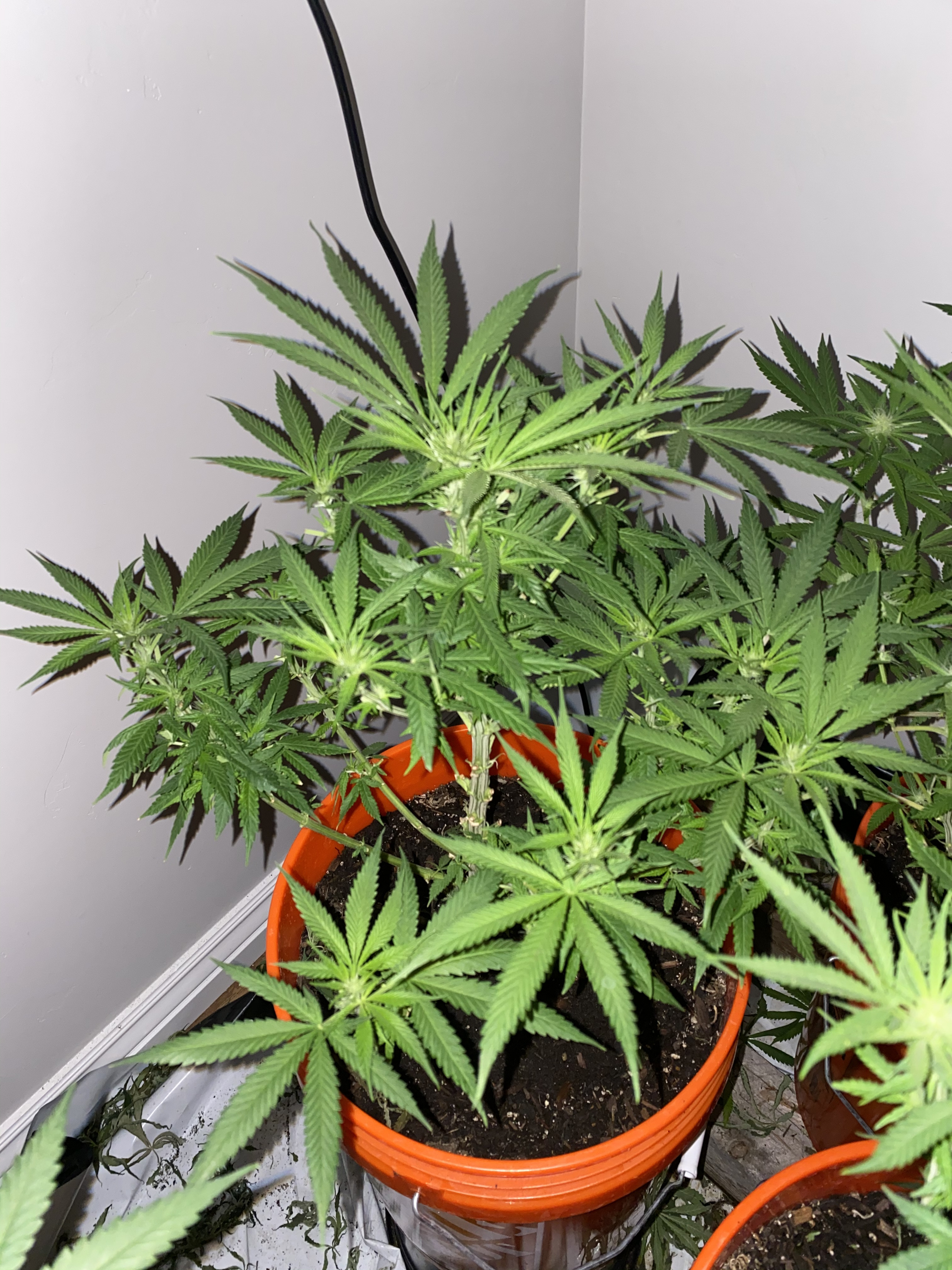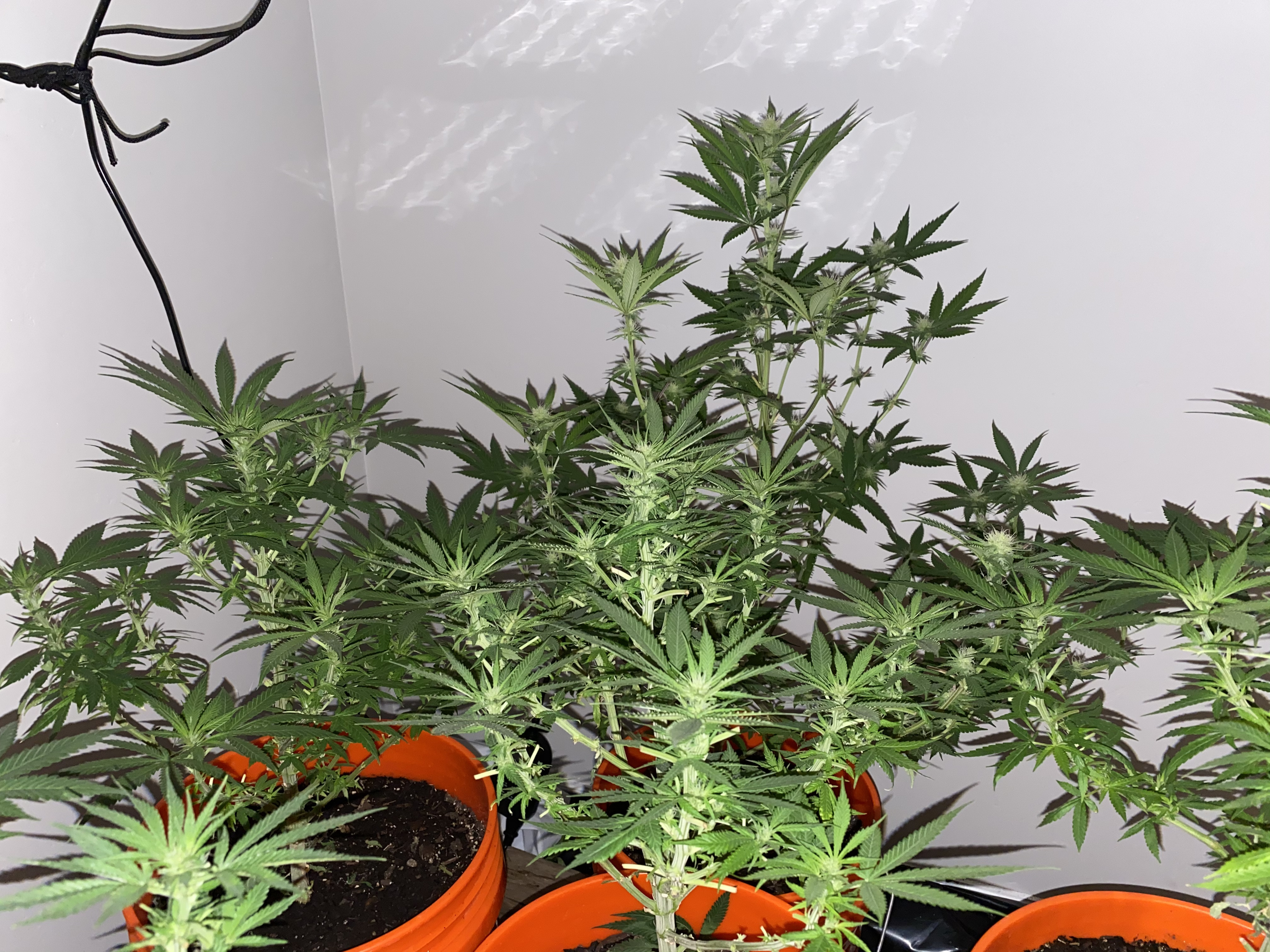 Yeah I trimmed before these pics, all the same seeds. My grow light fell on them when I incorrectly set it up at about 4-5 weeks into veg. That one didn’t get hit. The rest stayed squatty, and I’ve raised them up about as high as I can at this point. I can get those branches back up on the skinny one over night most likely. I actually took the taller ones and brought them down hoping the others would catch up and it’s not happening.... I’ll just let her go crazy.