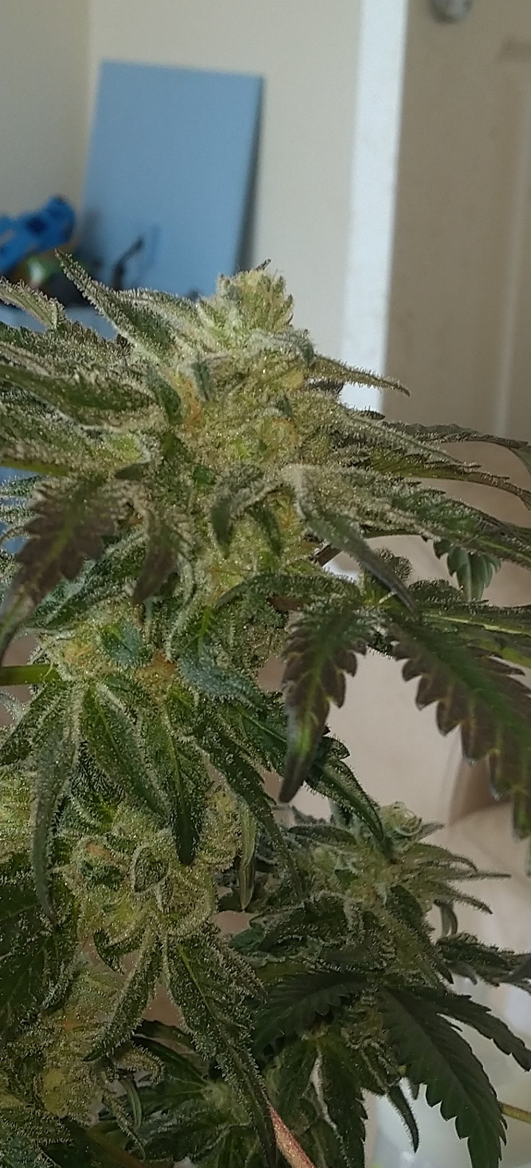 Hi Sticky...it's kinda hard to tell from the pics. Can you share a little but more about your grow set up? Medium, nutes, PH, RH, etc? Also, can you get a picture in natural light of the trichomes? Are the trichs clear, milky, or are you seeing some amber? If you haven't already go over to GWE and search when to harvest. Lots of good info there.Growing Autos and Photos, Gorilla Grow tents, AC Infinity fans, exhaust, filter, humidifier, and controller, HLG Lamps, 50/50 Coco/Perlite, Autopot system, BlueLab PH Controller, CX Horticulture nutrients