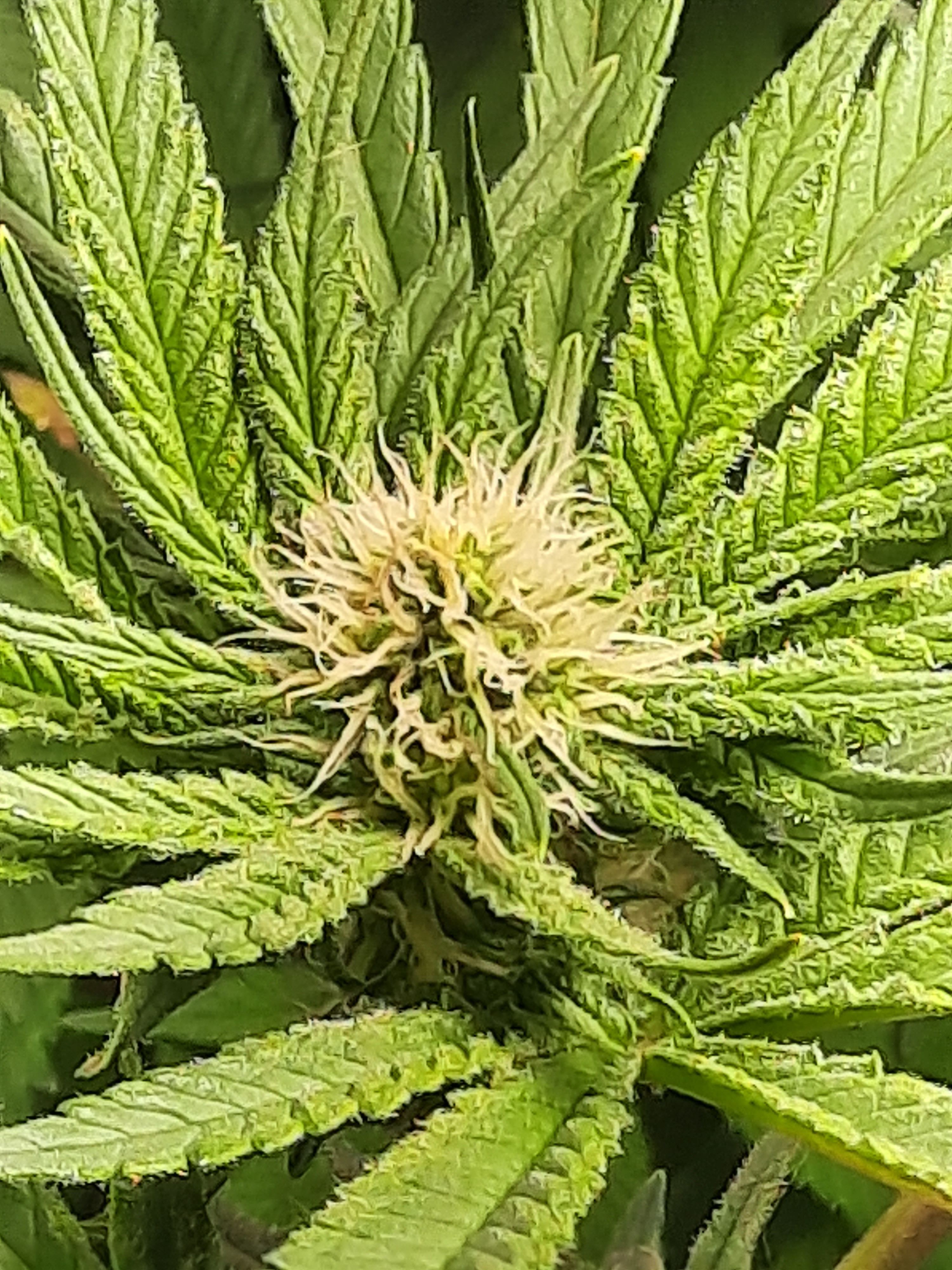 Looking rather " blinky bright " i like seeing long white hairs on my plant. Some strains are so much shorter i notice these things it's fun to see.
