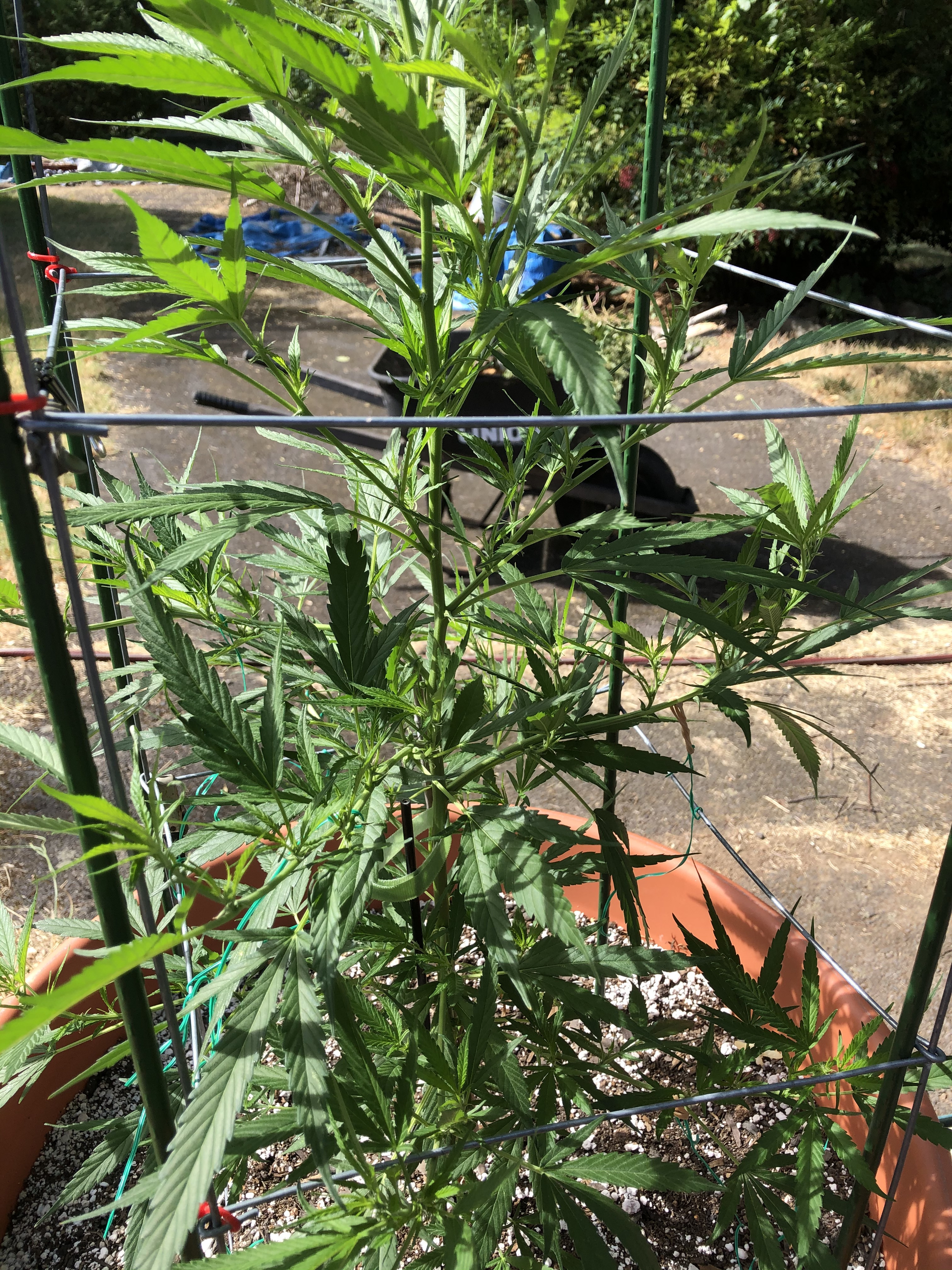 My Blue Dream is starting to grow pretty good now, at least I think so and I wonder if I am training and should I start some pruning on the lower & inside leaves? Here are a few pics of her at different angles. This is my first time growing one and wonder if I'm doing it right or at least close to it. Oh, I thought it would be a good idea to turn her every day a 1/4 turn so she gets sun all around, is that OK?
