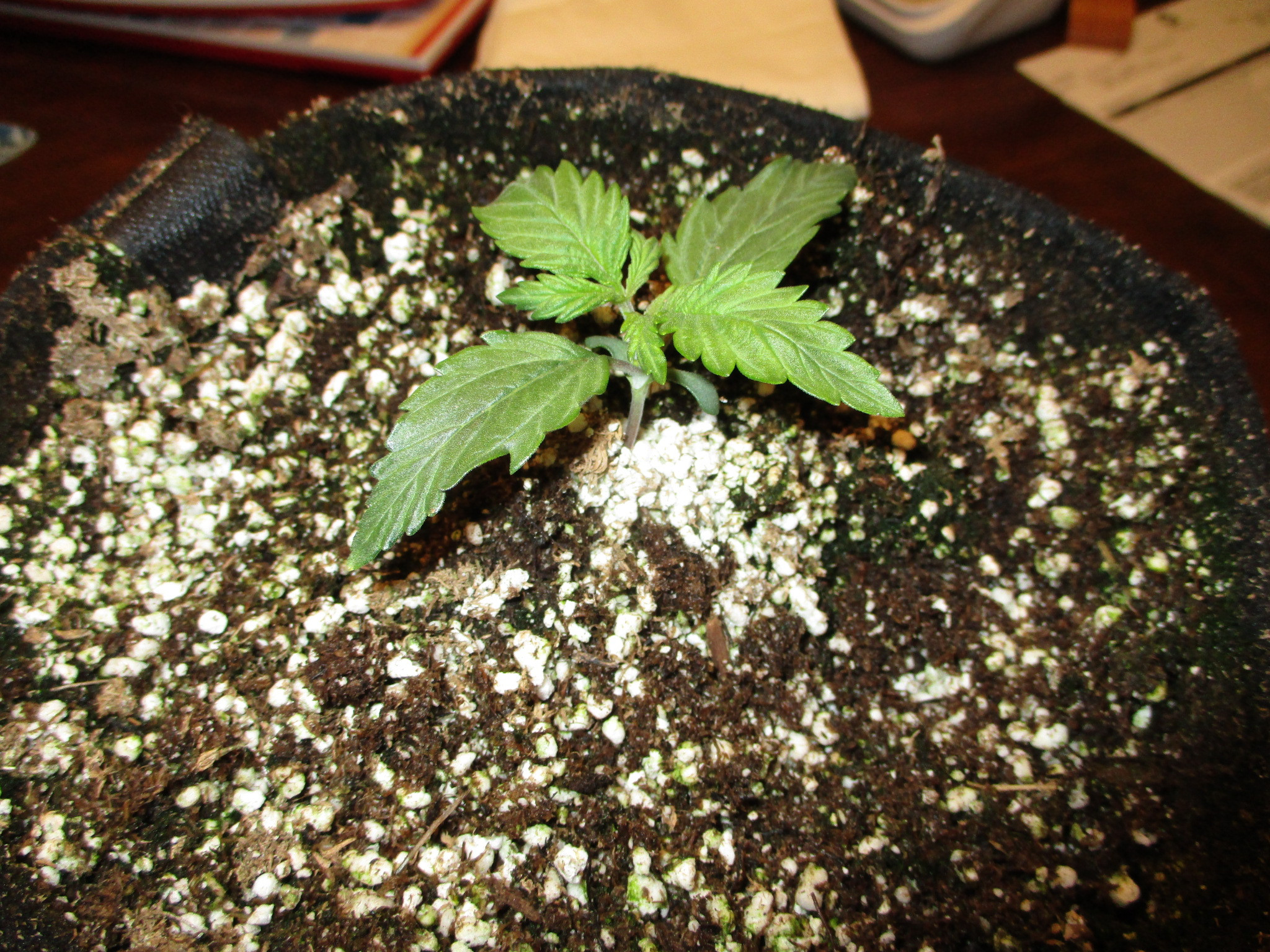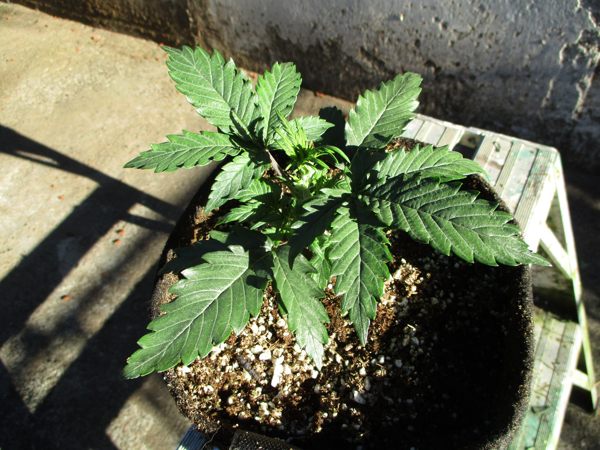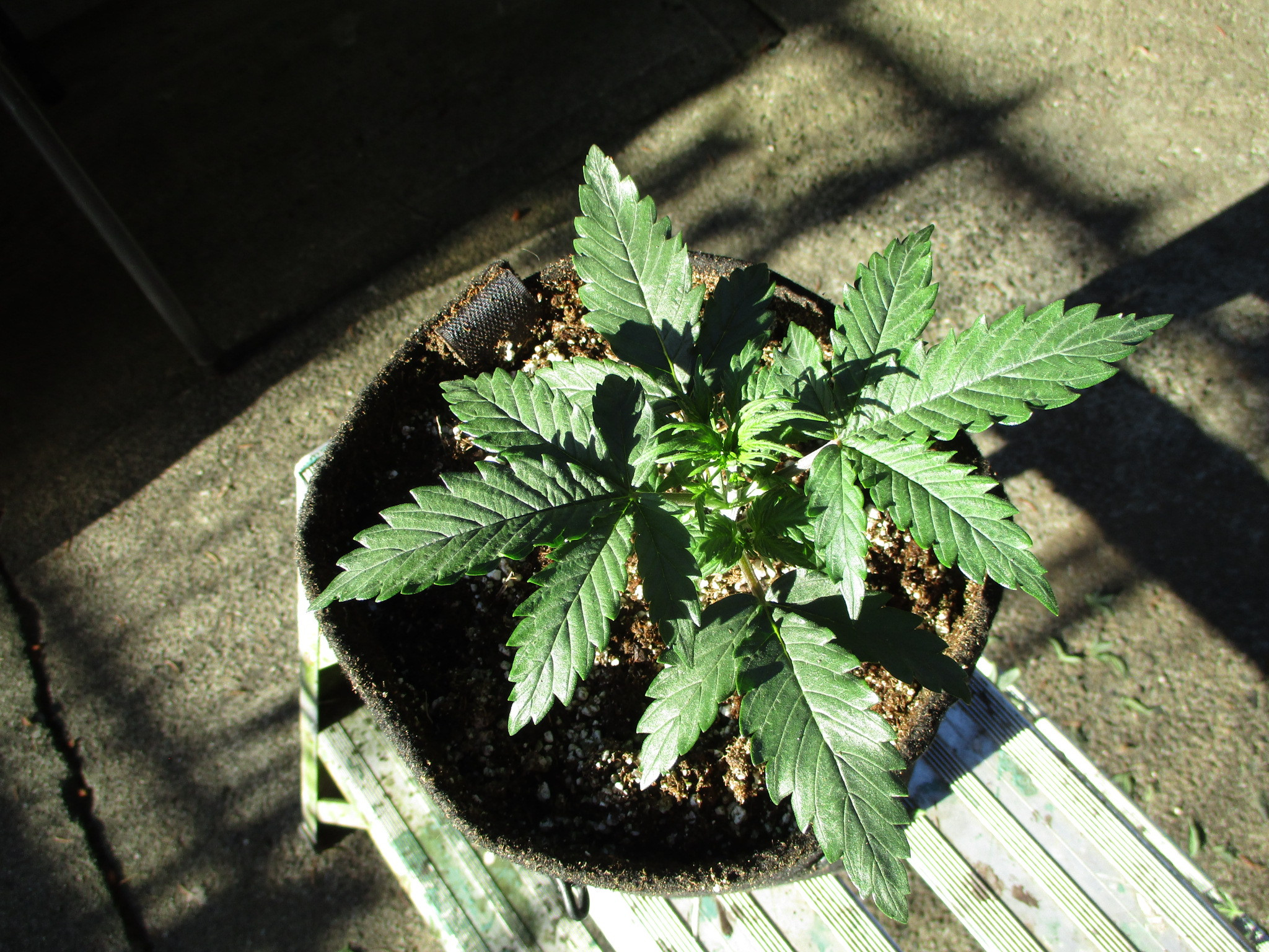 Here she is a week later - took off 2 seven fingers leaves on the top - she's just beginning to grow - should be about time for blastoff.