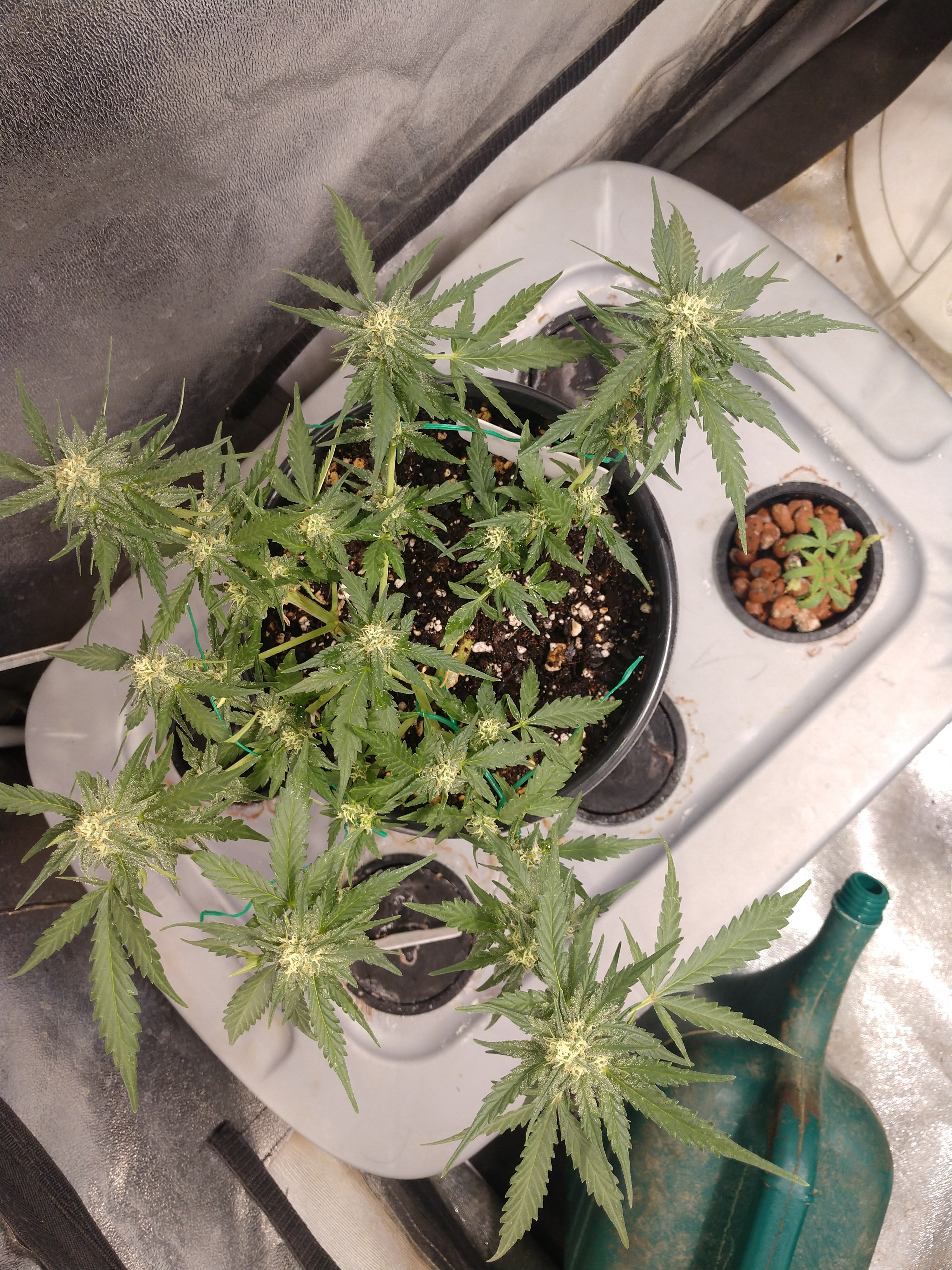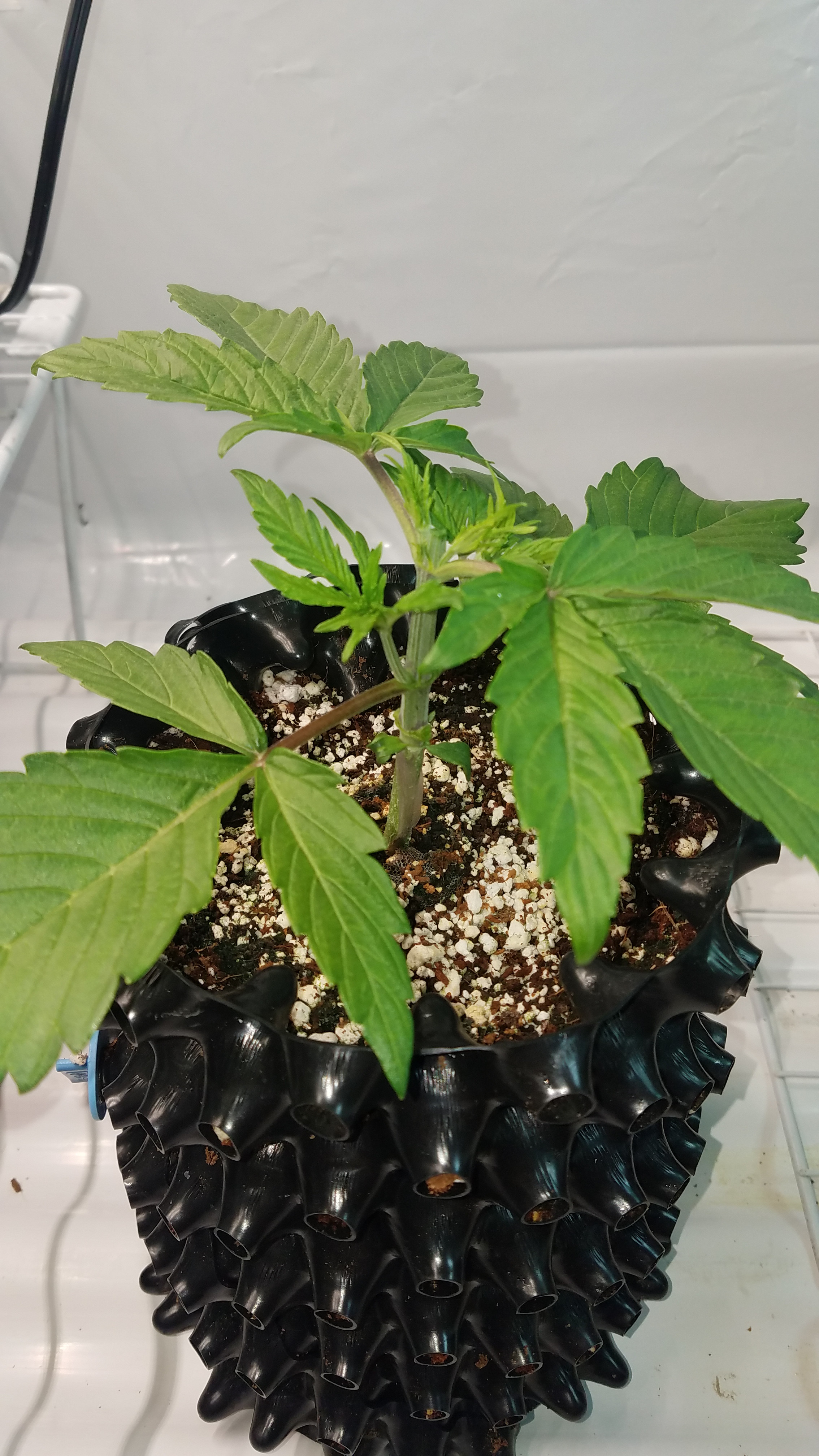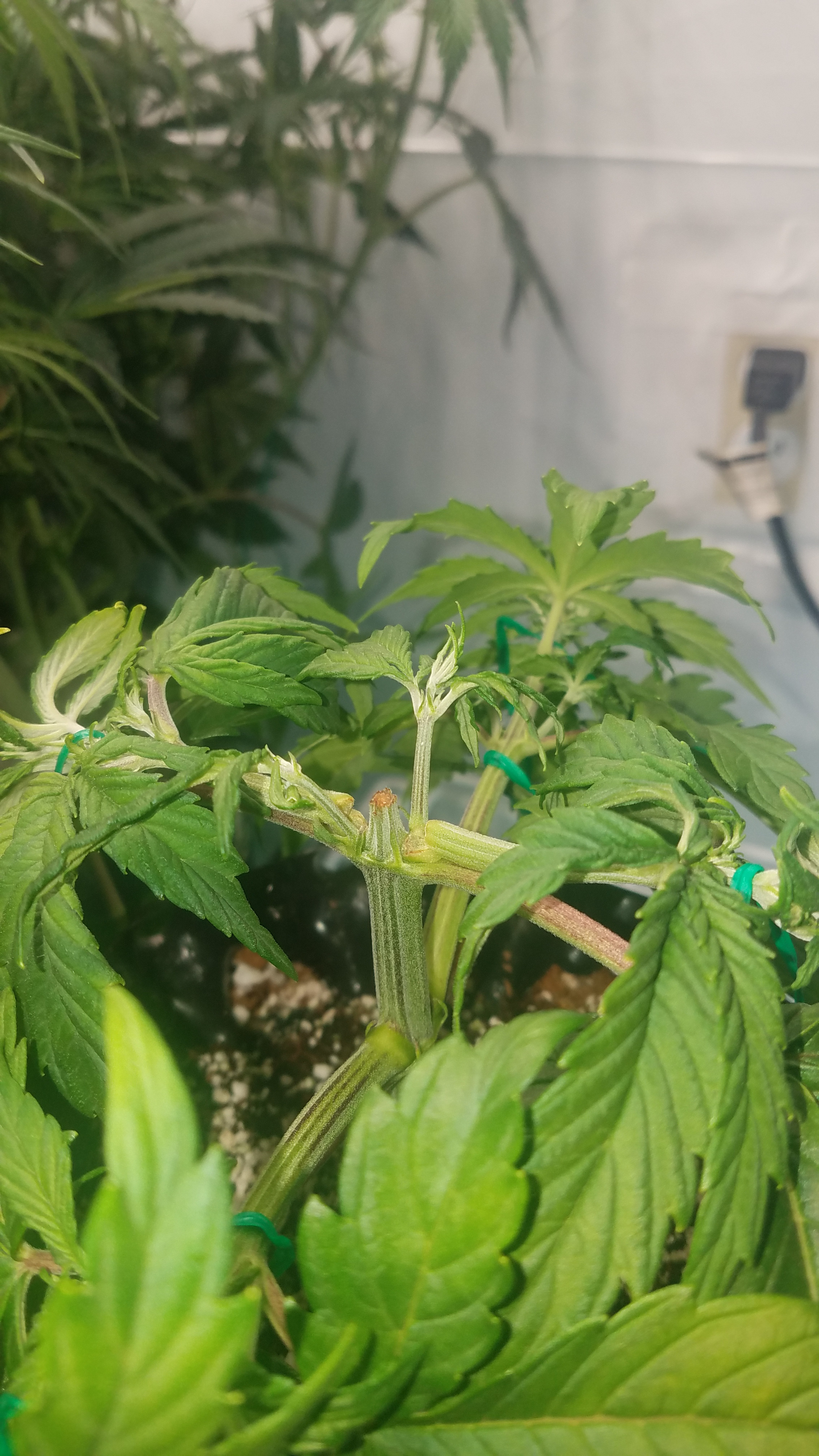 She sure has a strong main stalk Mr.furley looks really good. I'm looking at mine gonna post shortly when the clouds are open LOL my pics are not being received by the wifi real good in our area right now. We don't have the good service at our place. And i do think one of my la berry fruta kids is a boy. I still have it in the tent it's so damn tiny to see the " sacks " i gotta wait a few more days to be sure. But 2 out of 3 are known females. I will post later when they show up.