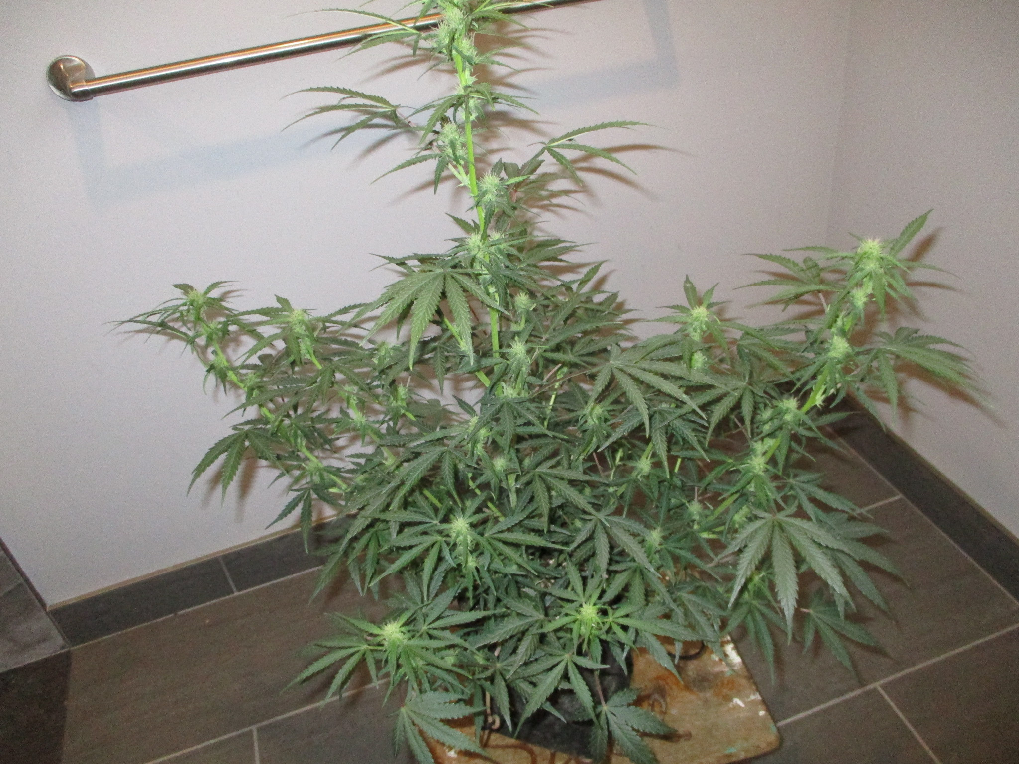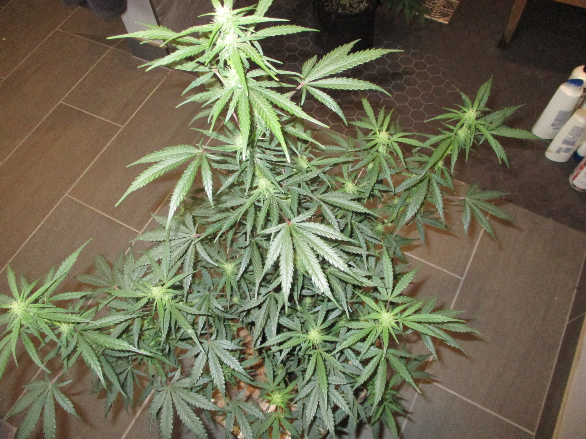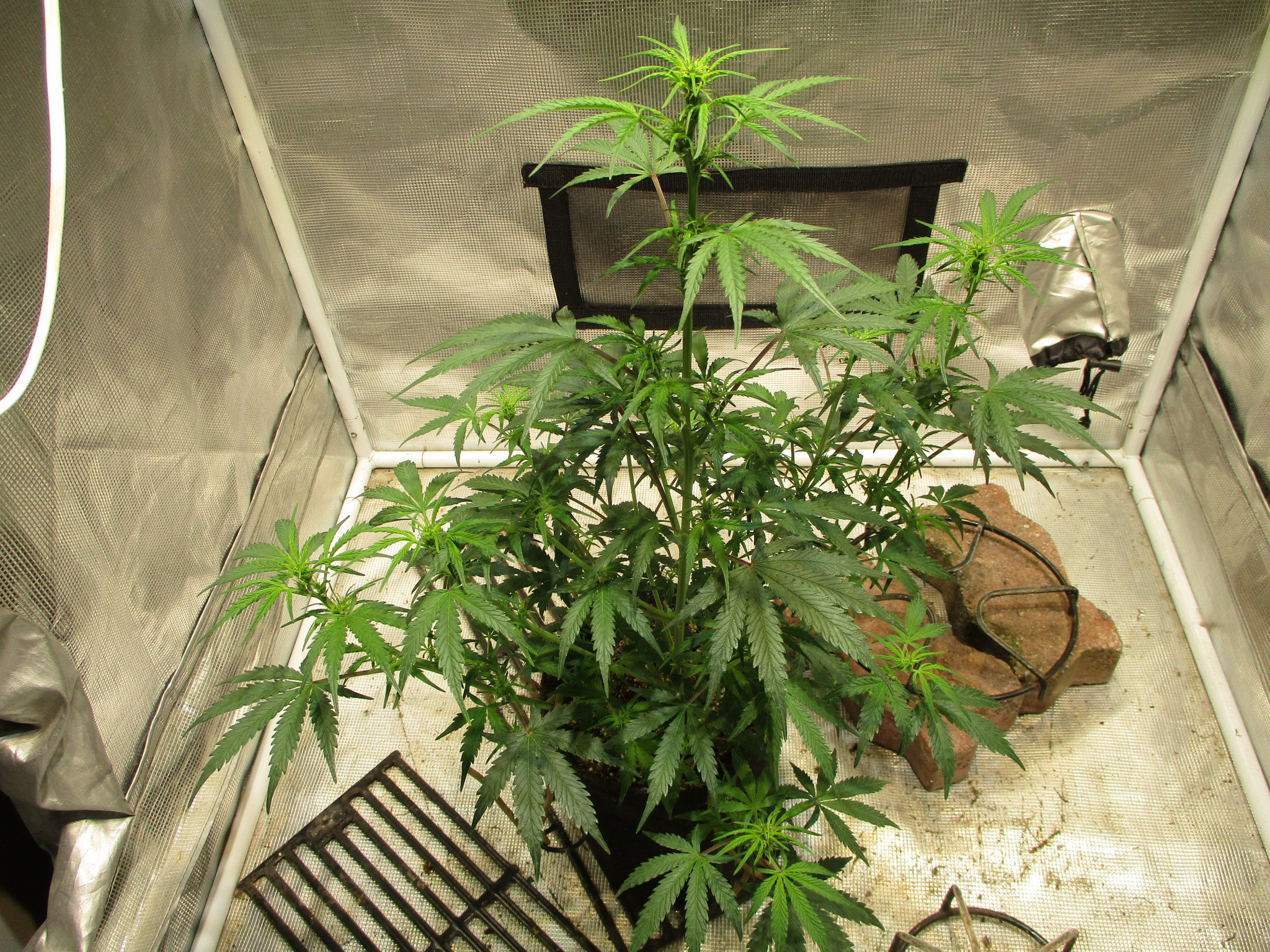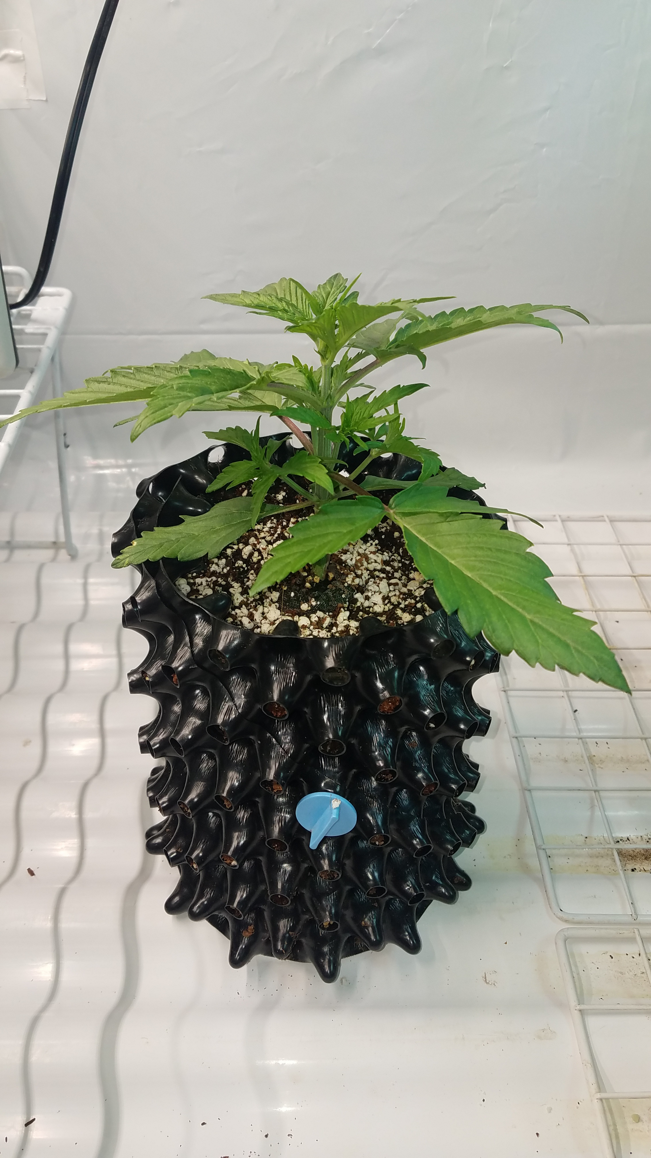 She sure has a strong main stalk Mr.furley looks really good. I'm looking at mine gonna post shortly when the clouds are open LOL my pics are not being received by the wifi real good in our area right now. We don't have the good service at our place. And i do think one of my la berry fruta kids is a boy. I still have it in the tent it's so damn tiny to see the " sacks " i gotta wait a few more days to be sure. But 2 out of 3 are known females. I will post later when they show up.