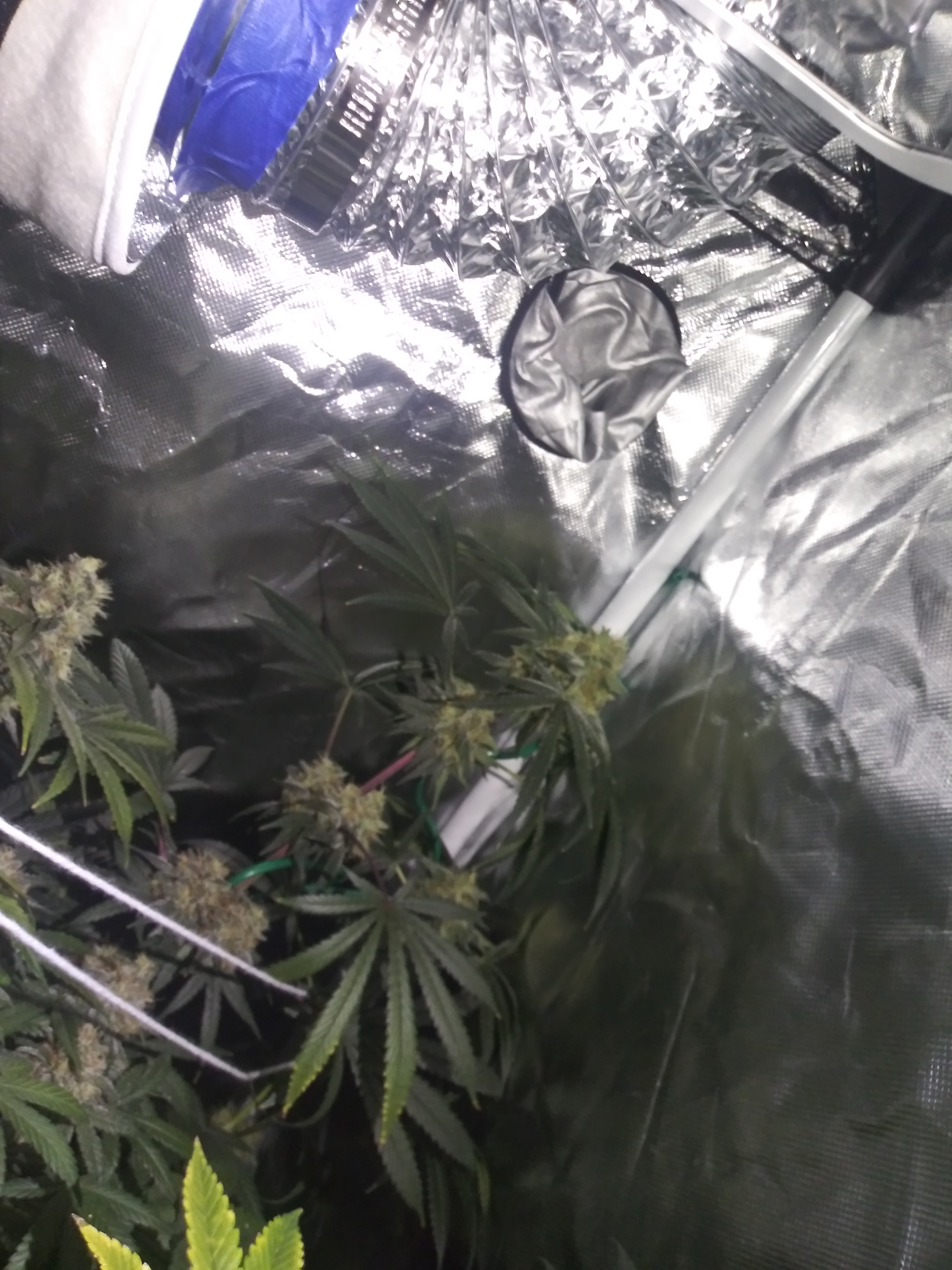 This should be a happy day, but I have a lot of problems arising too. Nutrient burn (I stopped using any feed 2 weeks ago and its still progressing - thanks MiracleGro!) I cant do anything abput the light I'm literally out of space and O tied everything up already and I believe yellowing leaves? All I know is that there are too many problems to be able to know what to do. Here are aome pics any thoughts would help. It's about 2 months into flower