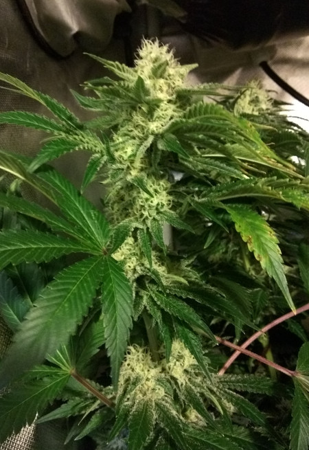 Starting to see the buds put on weight which is really nice! Also seeing the very first of the red pistils starting to happen. Not nearly mature yet, but there is four more weeks to go for that to happen in.