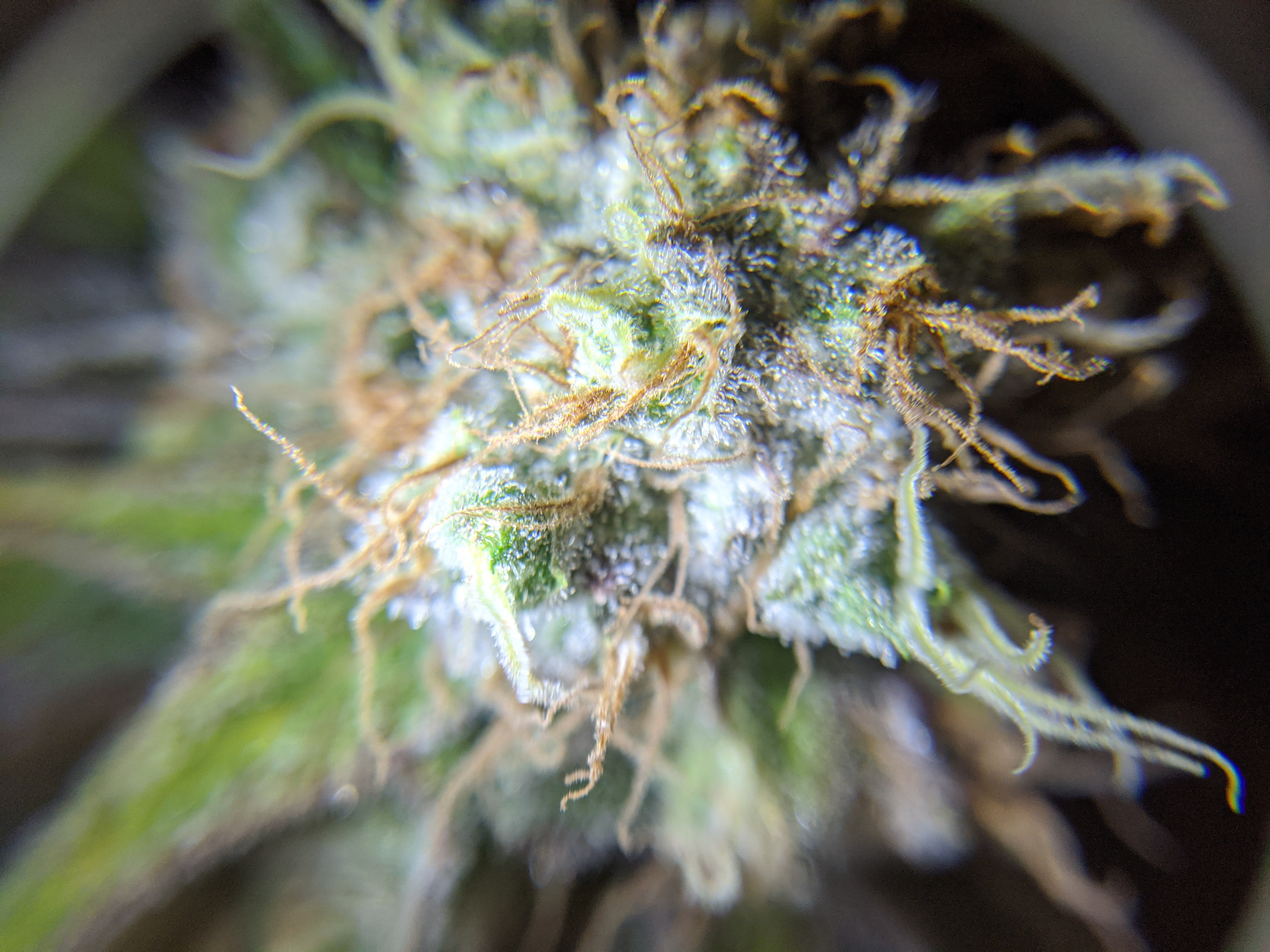 Day 60 of flower: Here are some new pics (3 days since the last photos). A lot more of the pistils have gone brown and curled in. The trichomes seem to still be glassy and no real amber ones yet. Still too early? Again, I'm looking for the energetic / euphoric end of the spectrum, not so much couch lock.