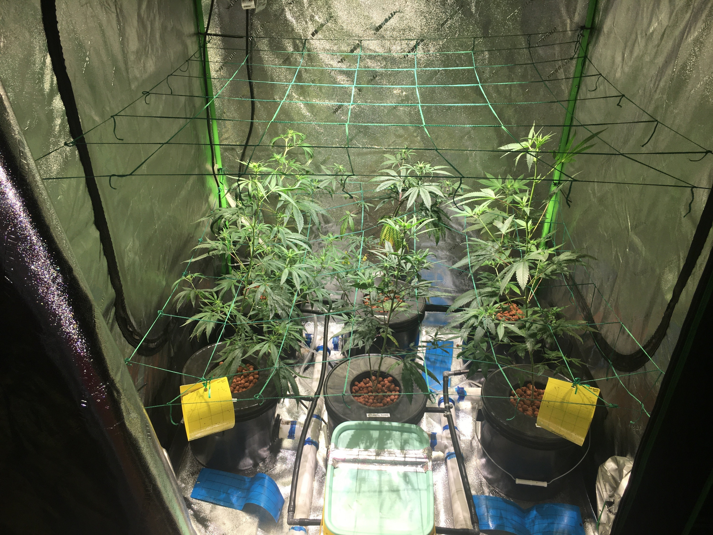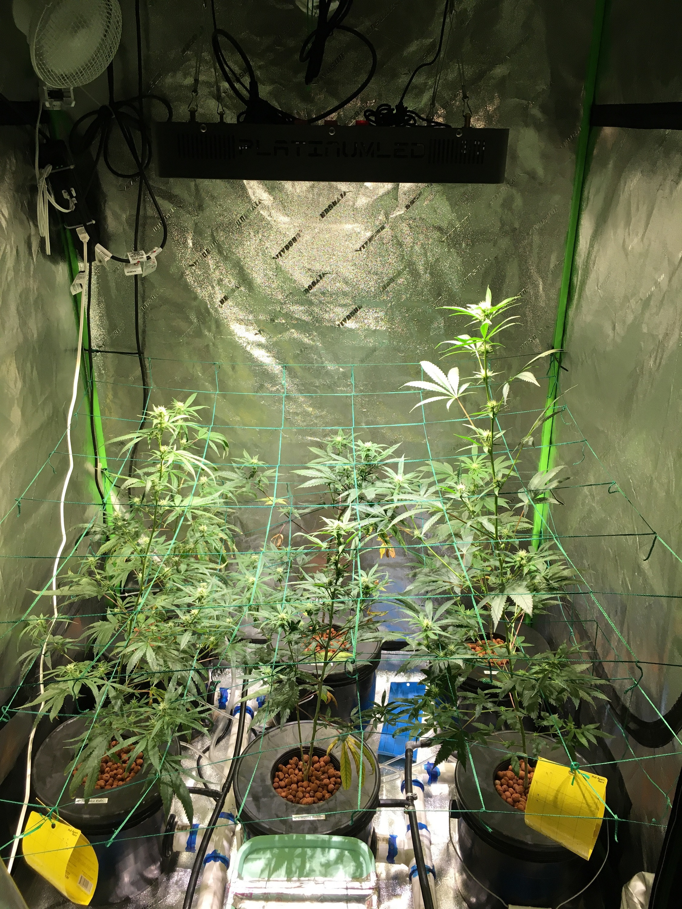 4x4 tent, Platinum LED P4-XML2, four Patio Pickers. Vegging Liberty Haze, Acapulco Gold, Lavender and Sweet Amnesia Haze.