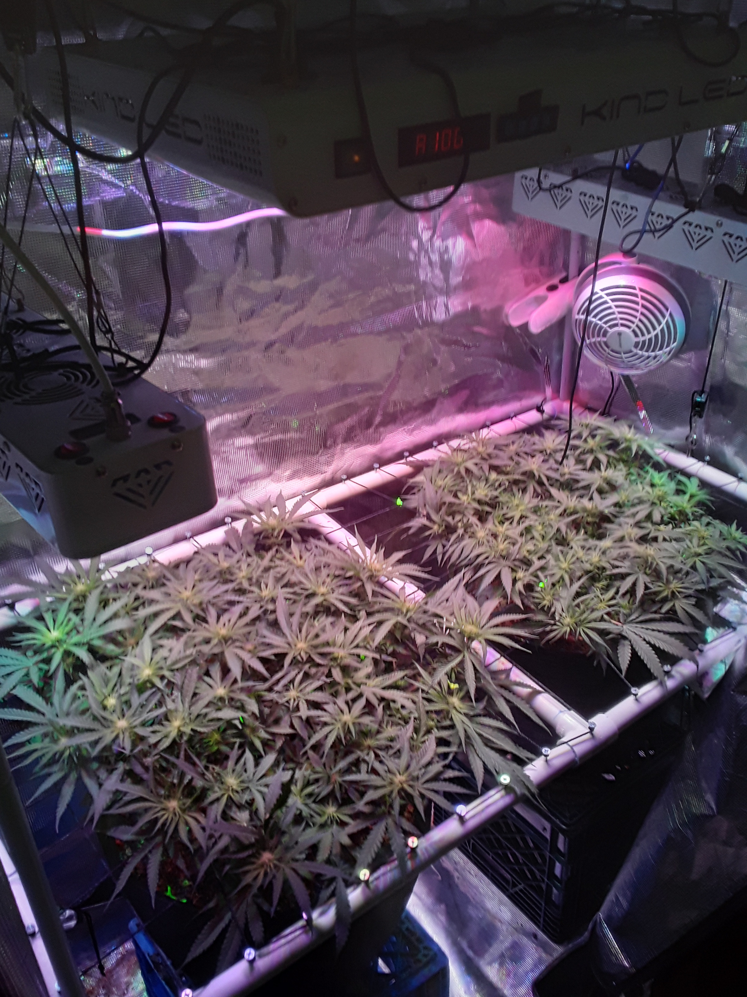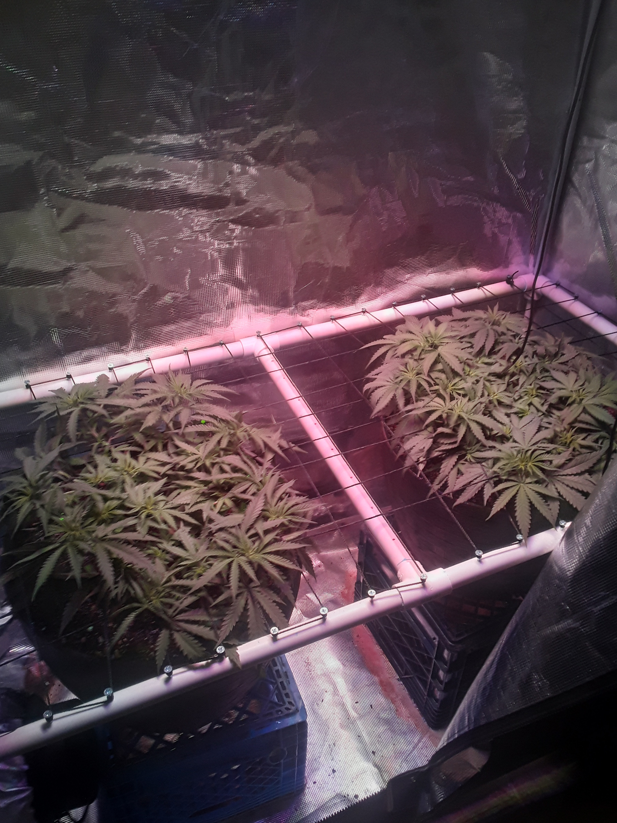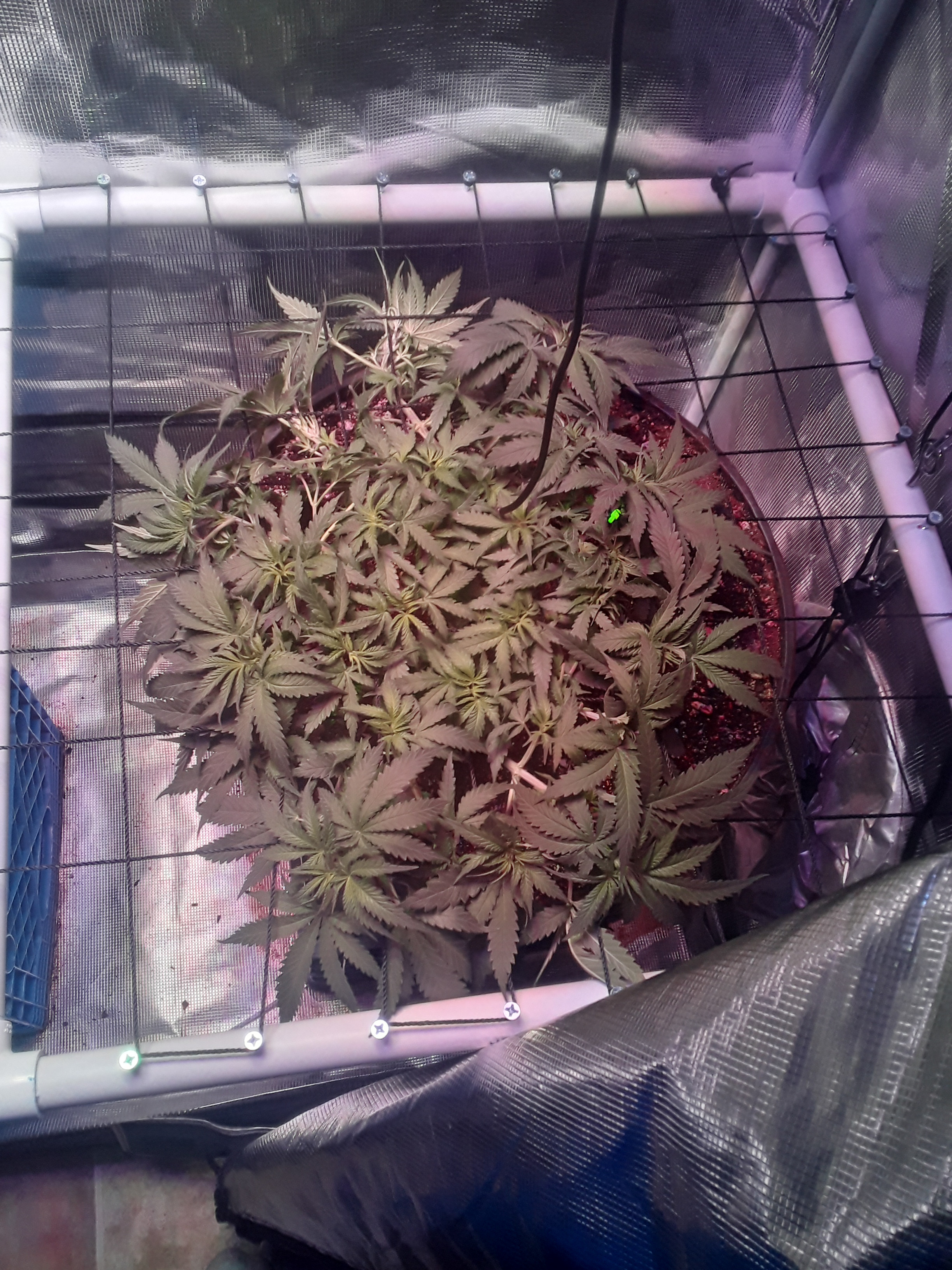And here's some picks of the girls still not adding nutes because of the additional 5 gallons added before the flip of FFoF and FFhF. Now if anyone with experience using this type of medium knows better please say something because if I should be adding liquid nutes I need to know. I'm use to using inert mediums.