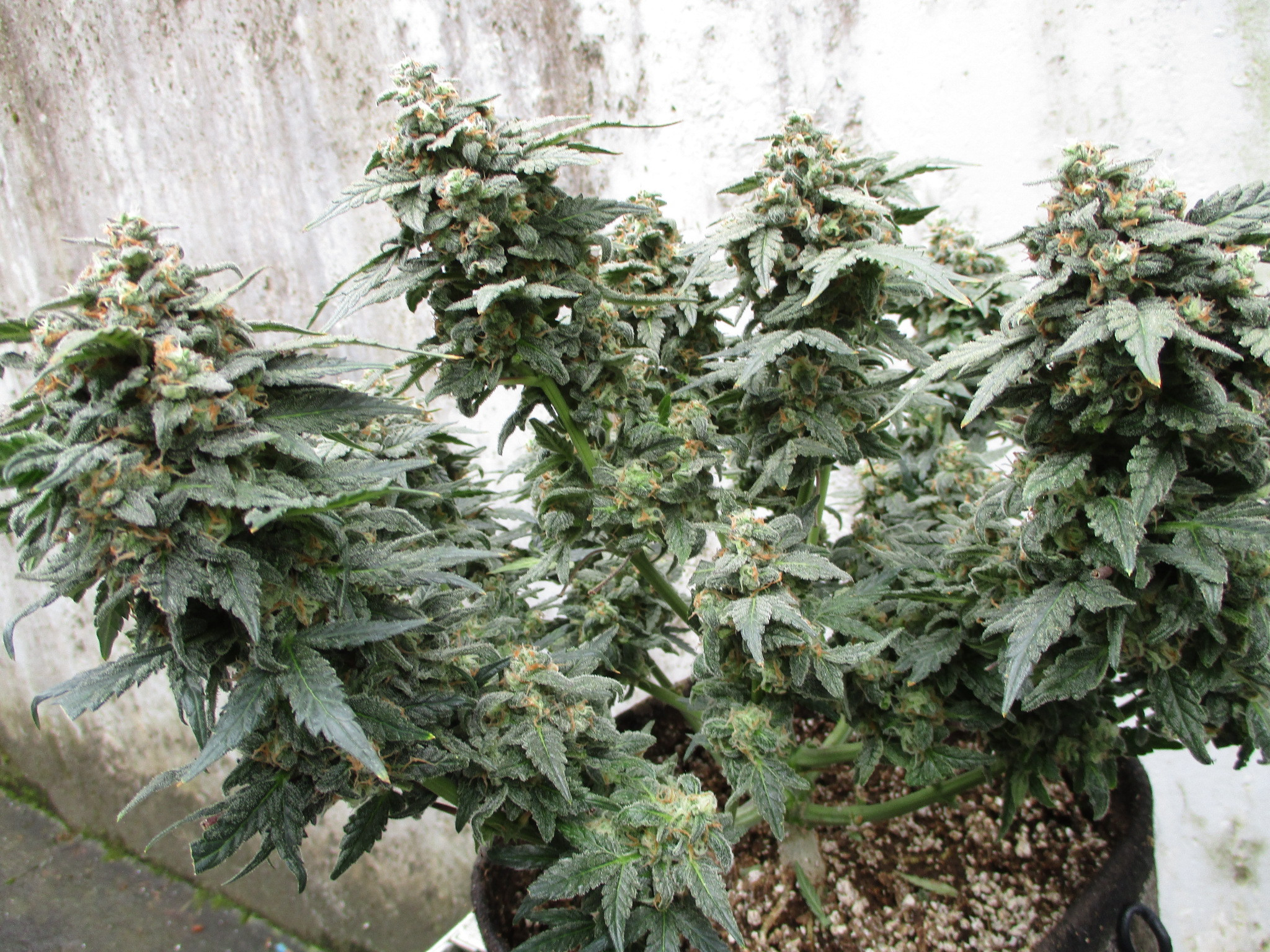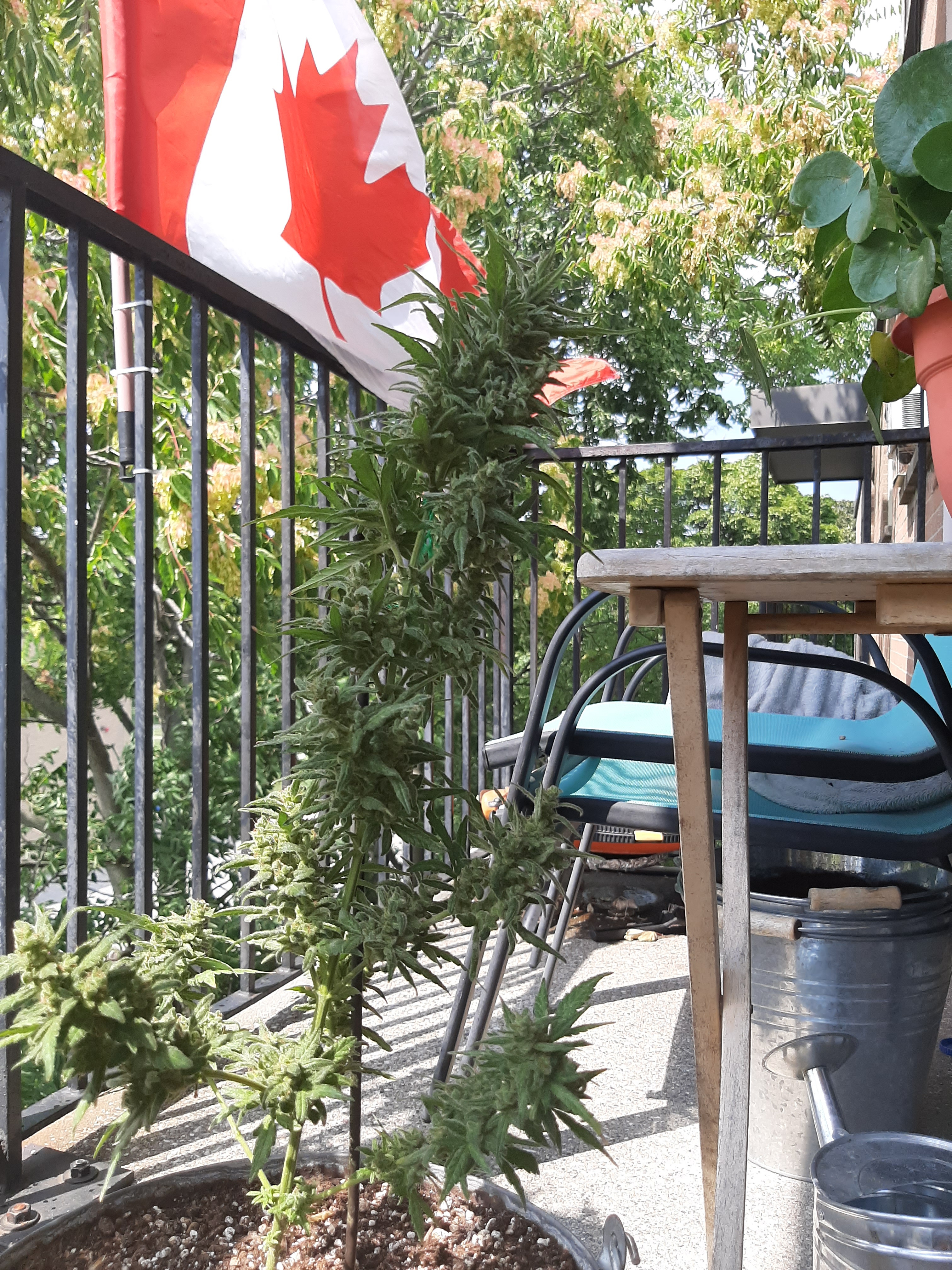 Purple Kush autoflower - topped her then trained her to grow away from the main stem. She must of thought I was holding her down - cuz her vertical growth was slow - then stopped at 11 inches tall.